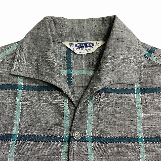 「グレー×グリーン、チェック柄、M」