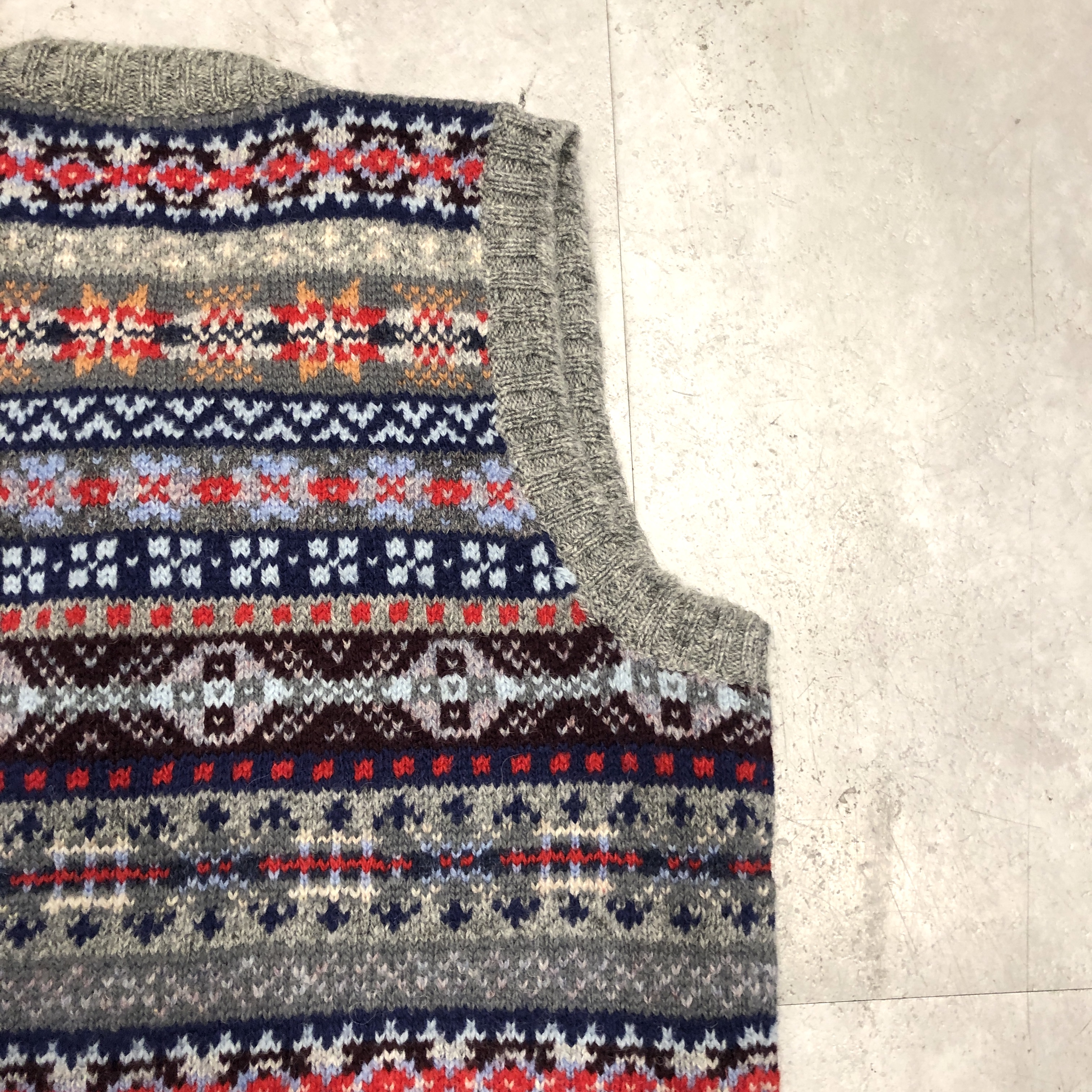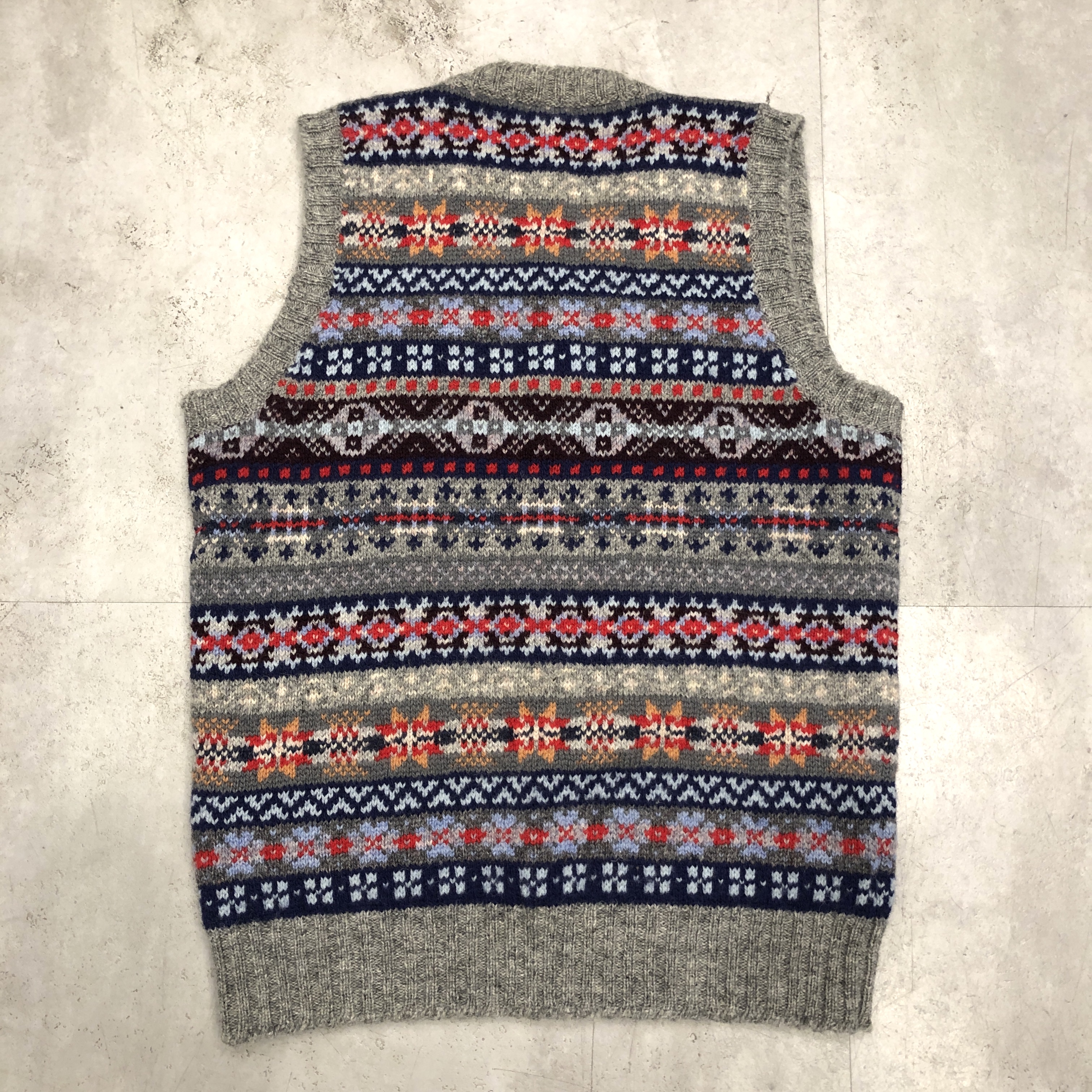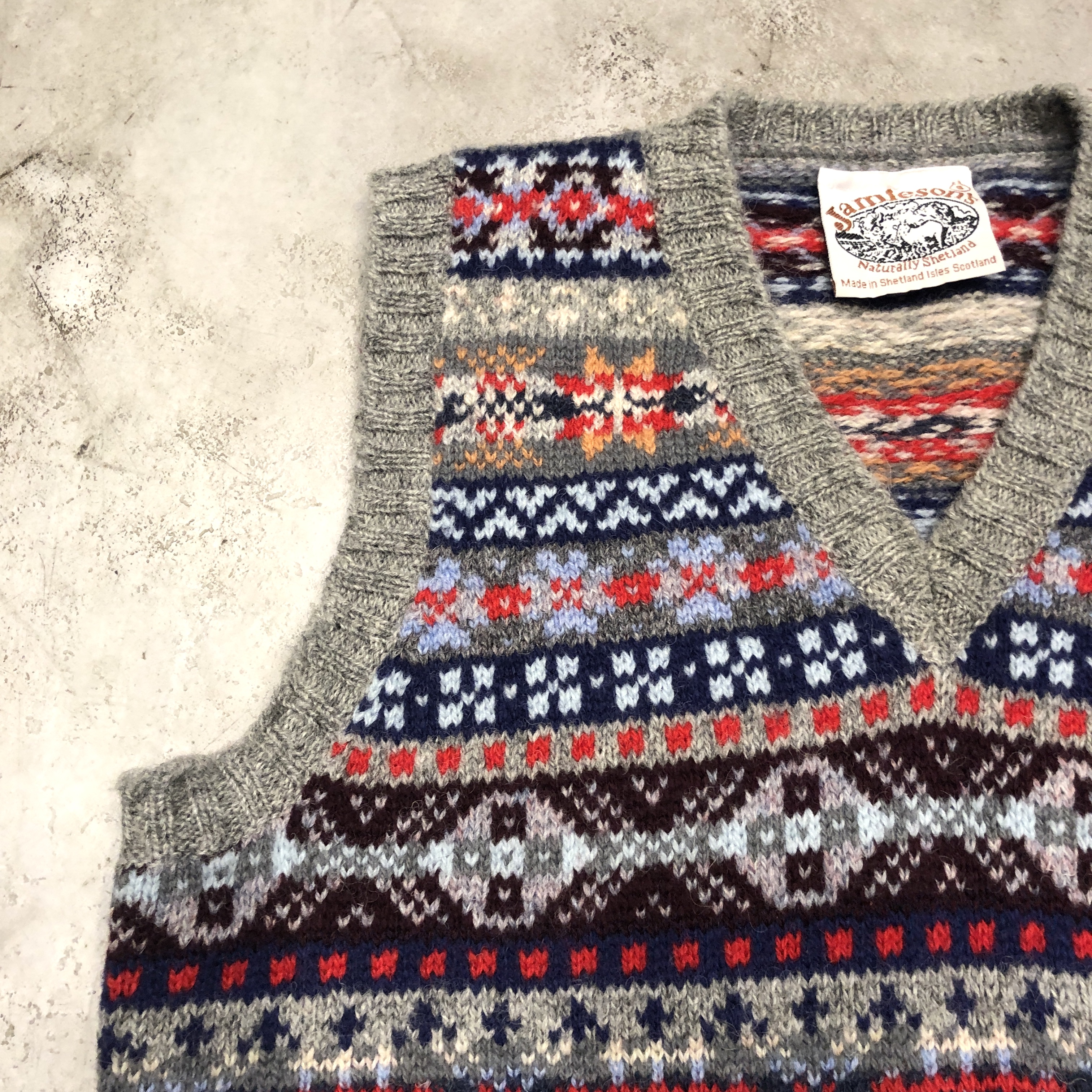 - シェットランドの伝統と美意識がぎゅっと詰まった、Jamieson’s(ジャミーソンズ)のフェアアイルベスト。古くはニット職人たちの手から手へ受け継がれてきたこの技法を、現代においても変わらぬ手仕事で継承し続けている数少ない存在です。