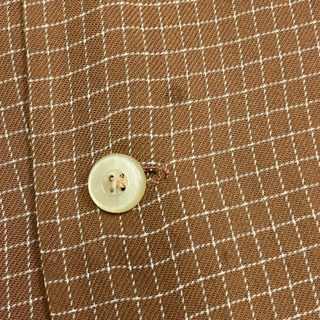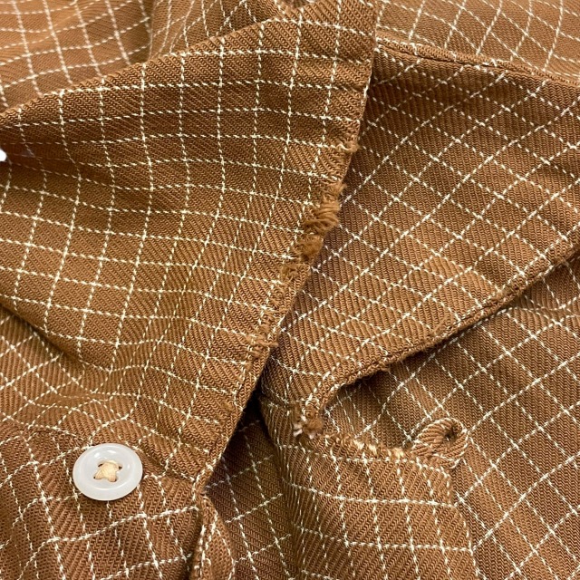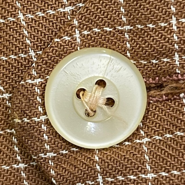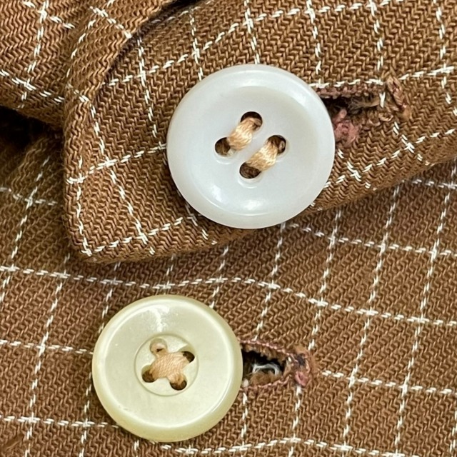 フロント下から4番目のボタンが交換されており、袖のボタンにひび割れがございます。