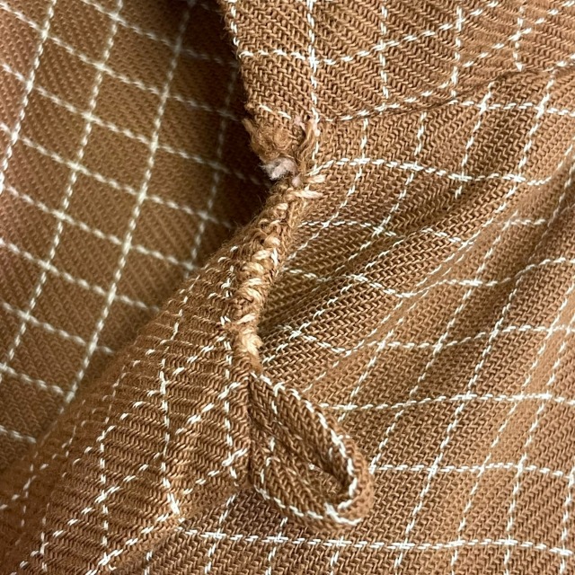 前立て上部や背中ヨーク縫製部分に手縫いで簡易的なお直しがございます。