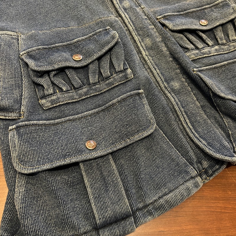 - 元々ユーズド加工が施されております。襟裏のボタンが欠損しております。その他着用感がございますが、目立つ汚れやダメージは無く、古着慣れされた方でしたら問題無く着用していただける状態です。