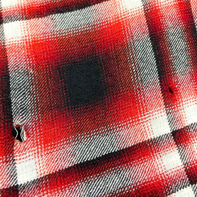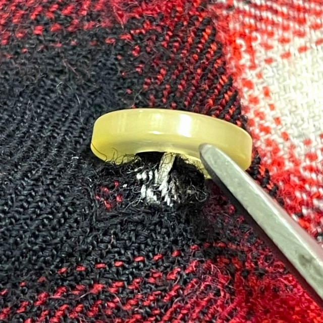 フロント最下部ボタン付け根の生地にダメージがございます。