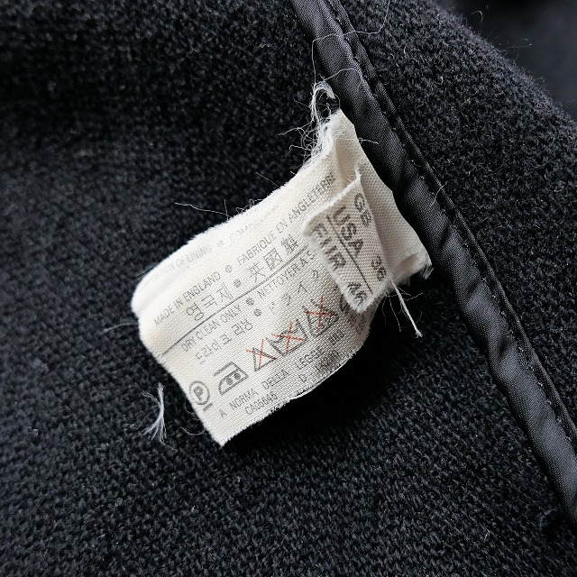 カラーは汎用性の高いチャコールグレーで、ボタンに筆記体でブランド名が印字された珍しい仕様の個体になります。
