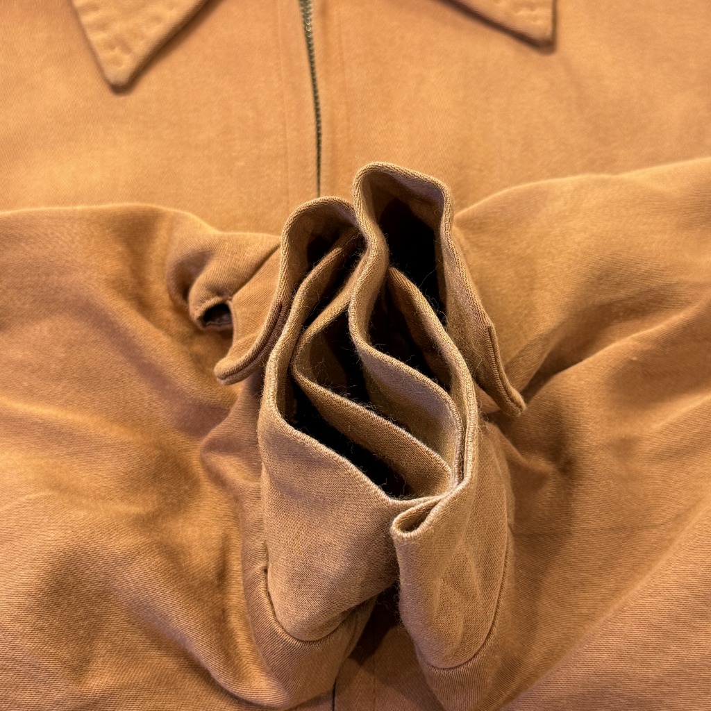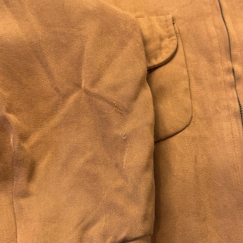- 全体的に着用感、画像の様に袖ボタンの破損、裾リブ、各所にダメージが見られます。