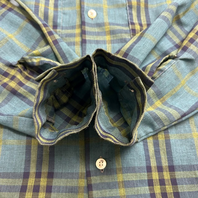 「グリーン系チェック、サイズM」