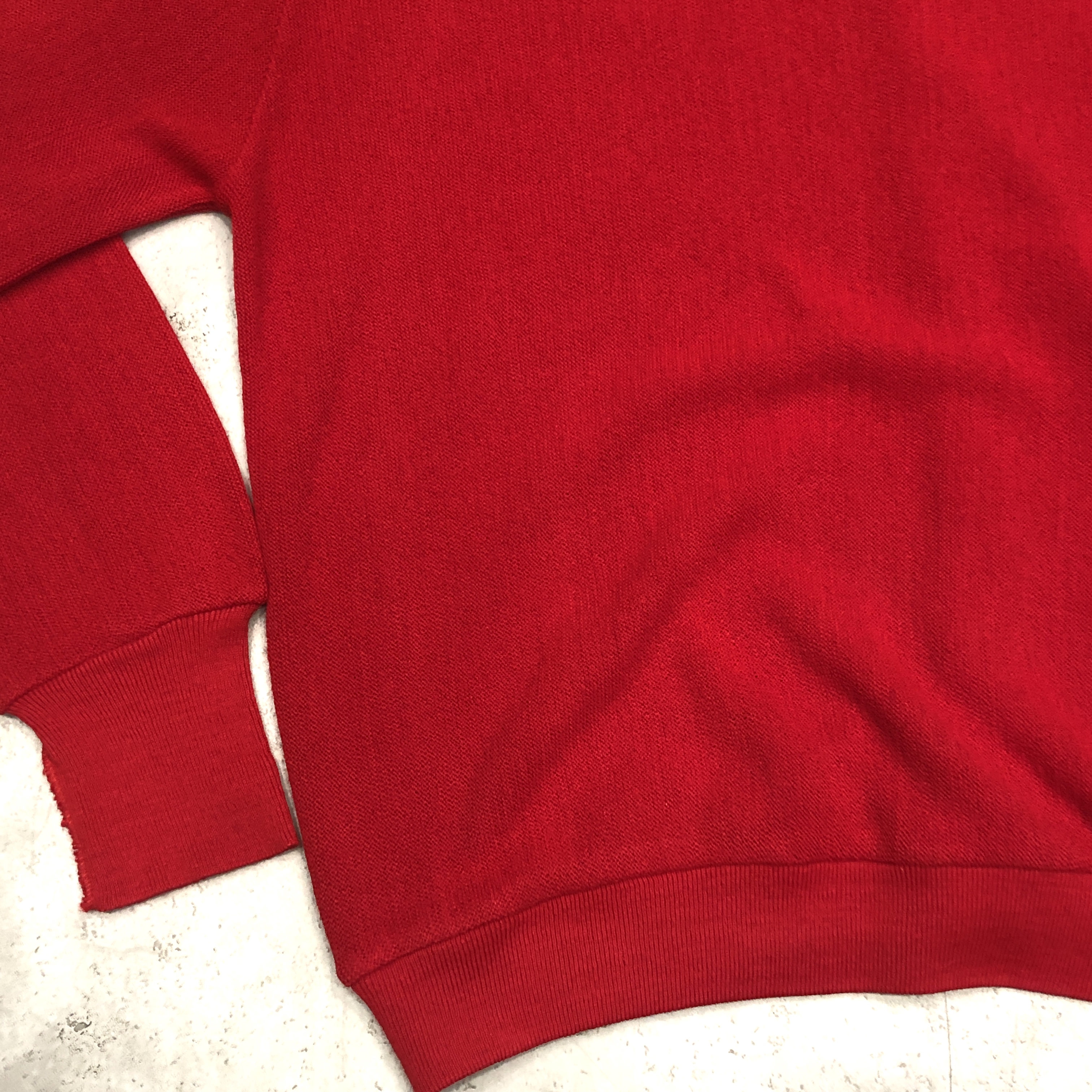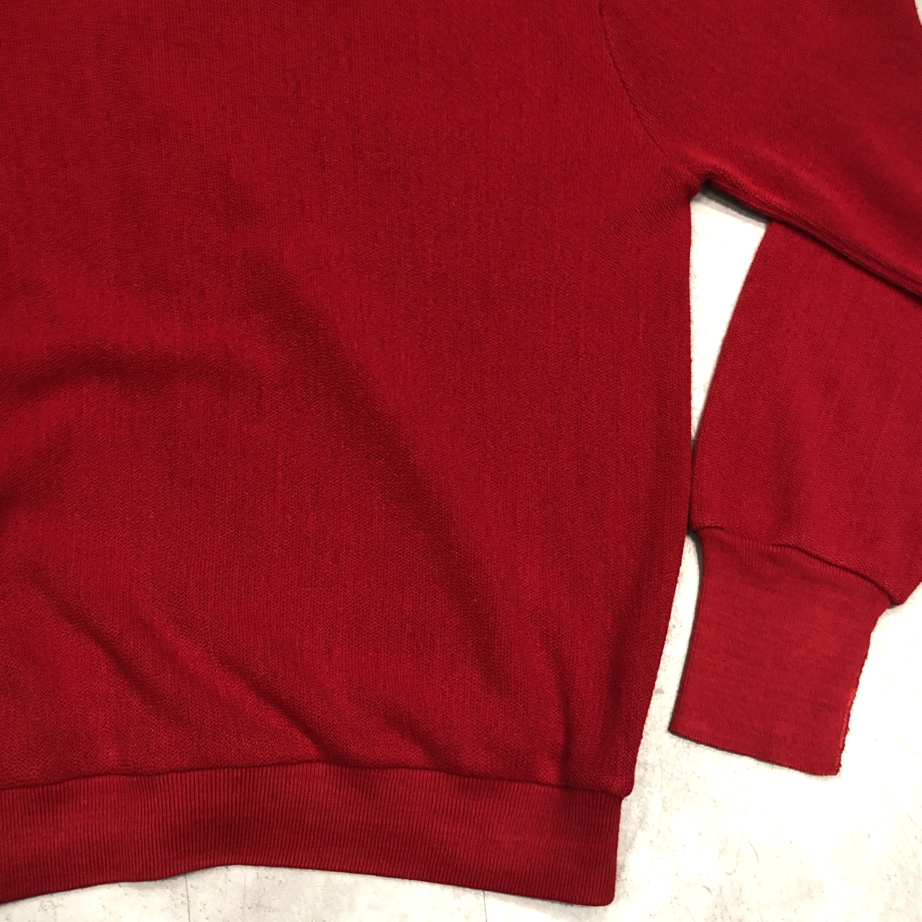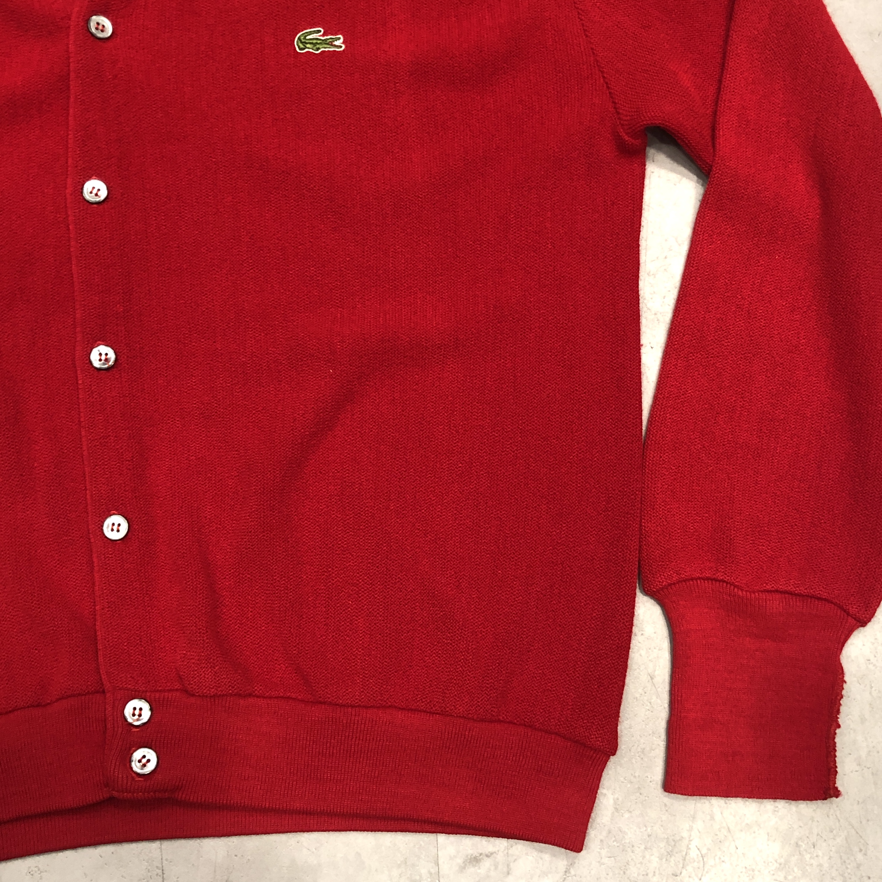 胸元に輝くワニのワンポイントと、潔いほど鮮烈なレッドのボディ。まさにアイビーリーガーの定番アイテムとして、50年代から80年代にかけて全米のキャンパスシーンを席巻した名作です。