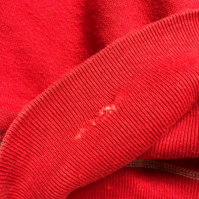 - 画像の様に、裾縫い合わせ部分にリステッチ、裾リブ内側にリペアがございます。