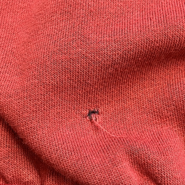 - フロント裾付近に小穴がみられます。また、右袖先に小さなダメージがみられます。その他、スレ、アタリ等の着用感はございますが、まだまだ問題なく着用していただけます。