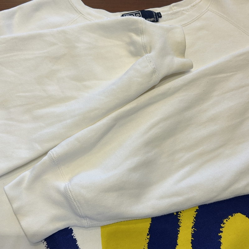 - 袖の黄ばみや細かな汚れが全体の複数箇所ございます。その他に目立つ汚れやダメージ等は無く、古着慣れされた方でしたら問題無く着用していただける状態です。