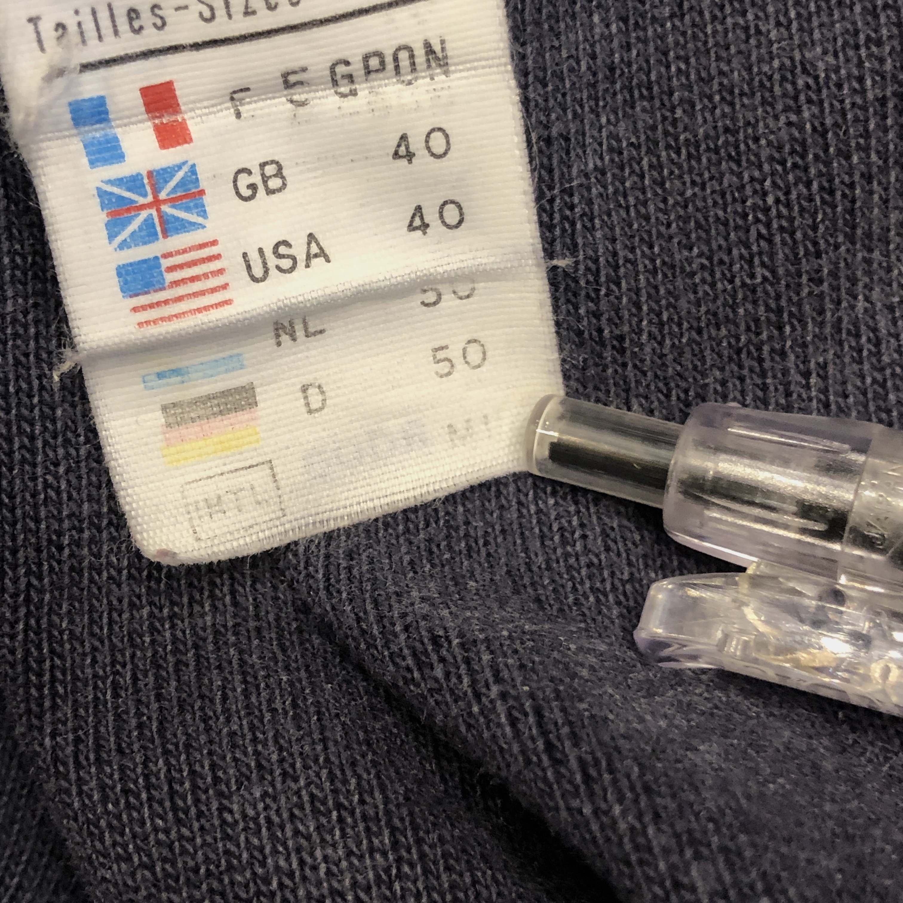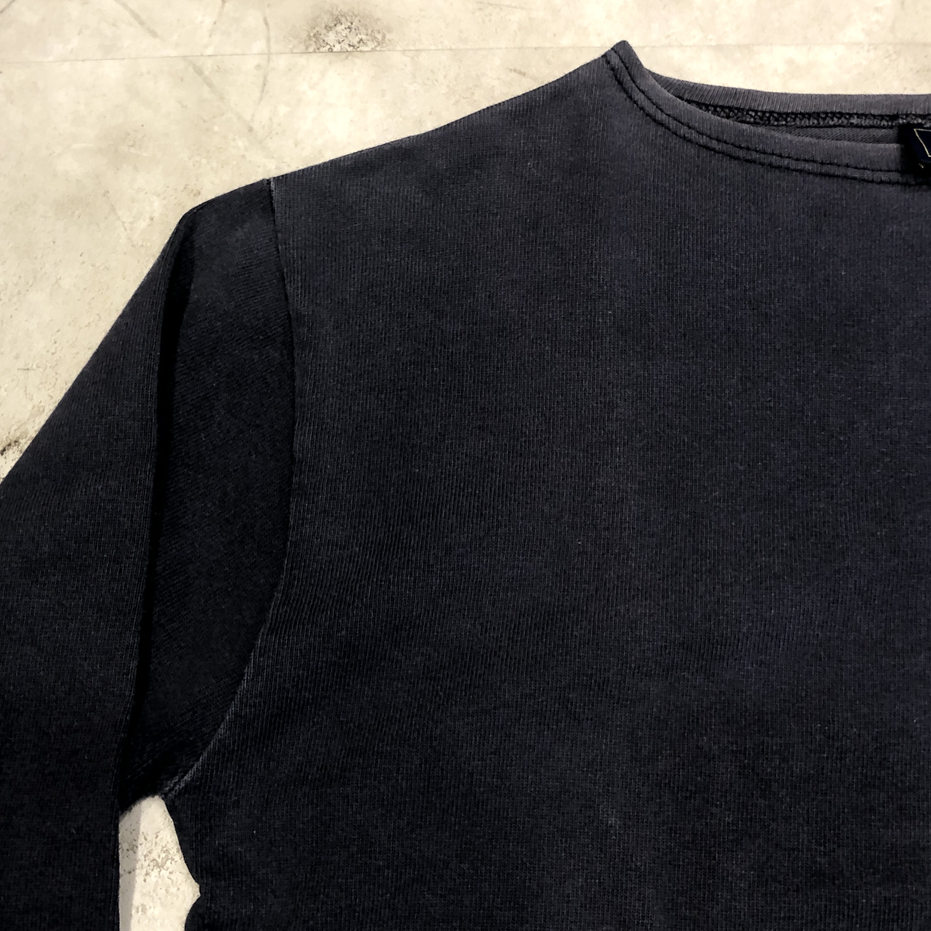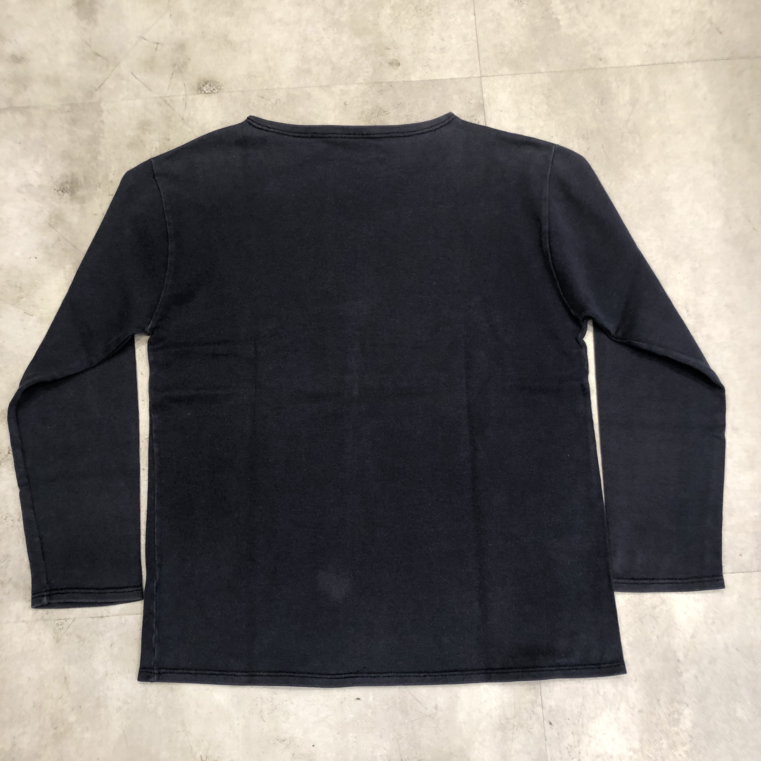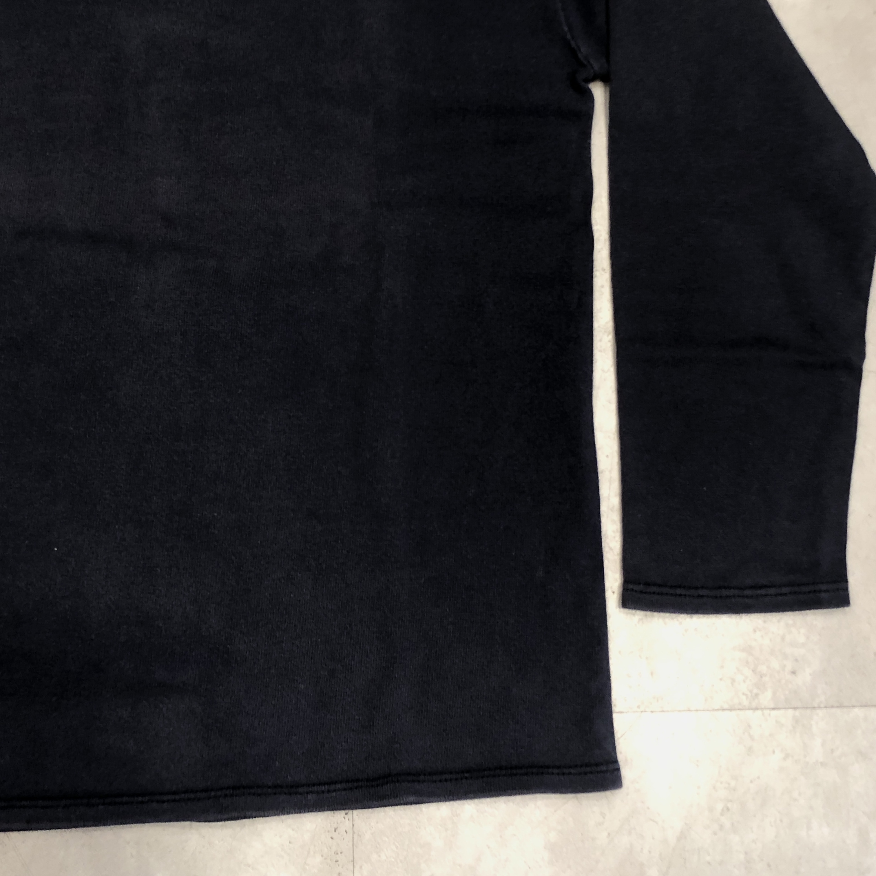 クラシックなボートネックと肩線の落ちたストレートなパターンは、重ね着にも最適。袖口にはブランドロゴのネームパッチを控えめに配置。製造はもちろんフランス自社工場で行われ、サイズはフランス表記5(国際サイズML)で、男女問わずゆとりあるシルエットを楽しめます。
