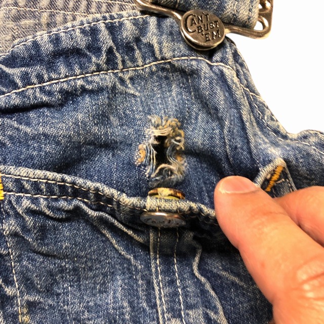 キャントバステムステム ゴールドレーベルのデニムオーバーオール。
