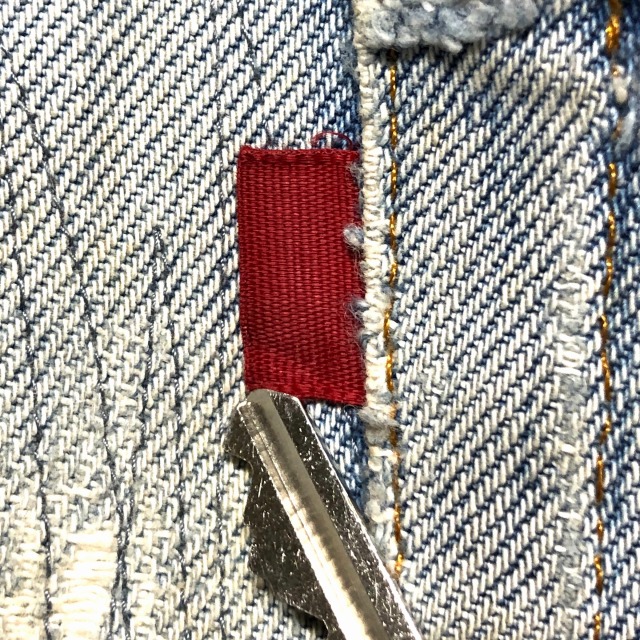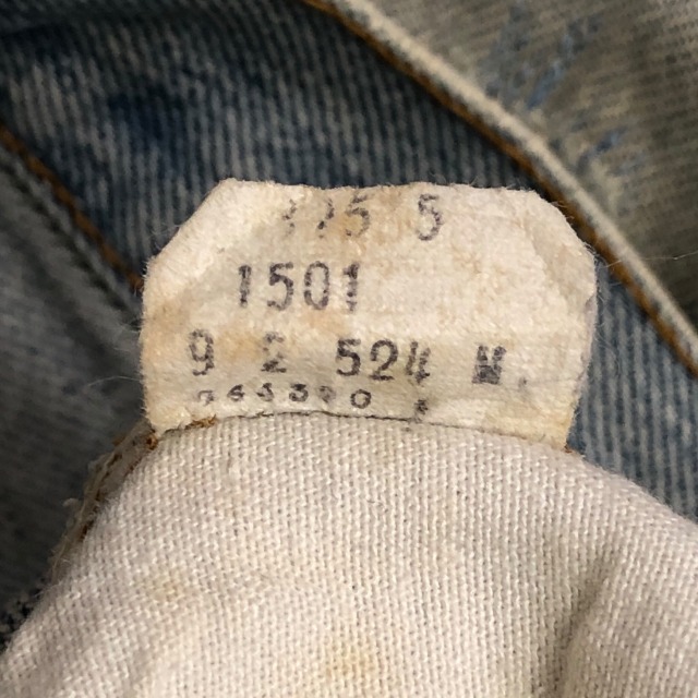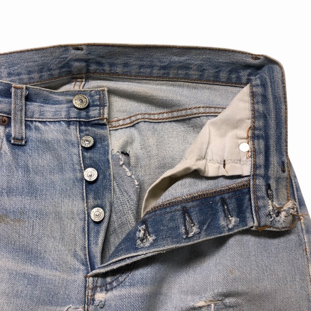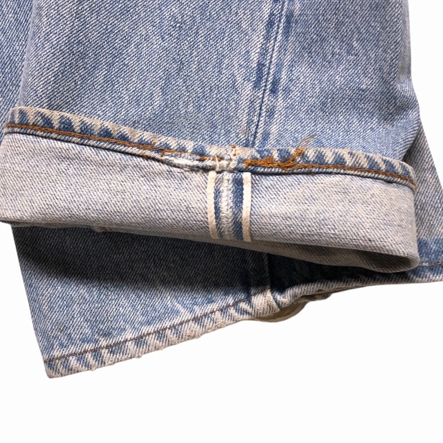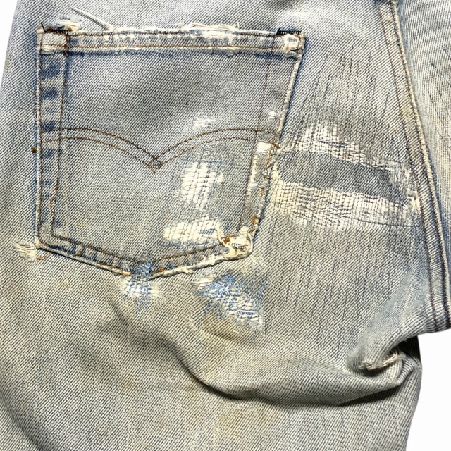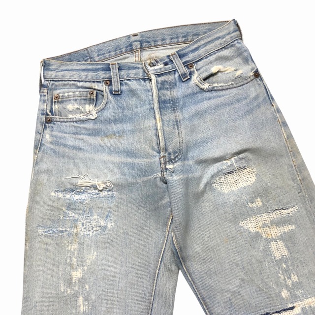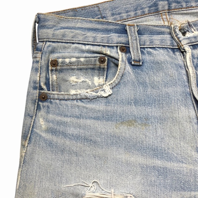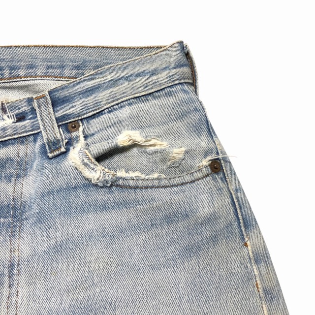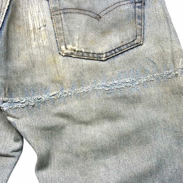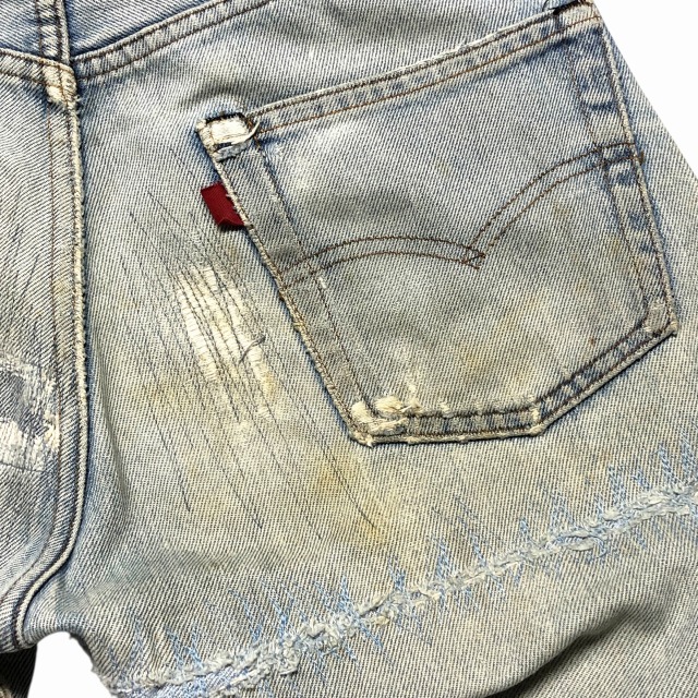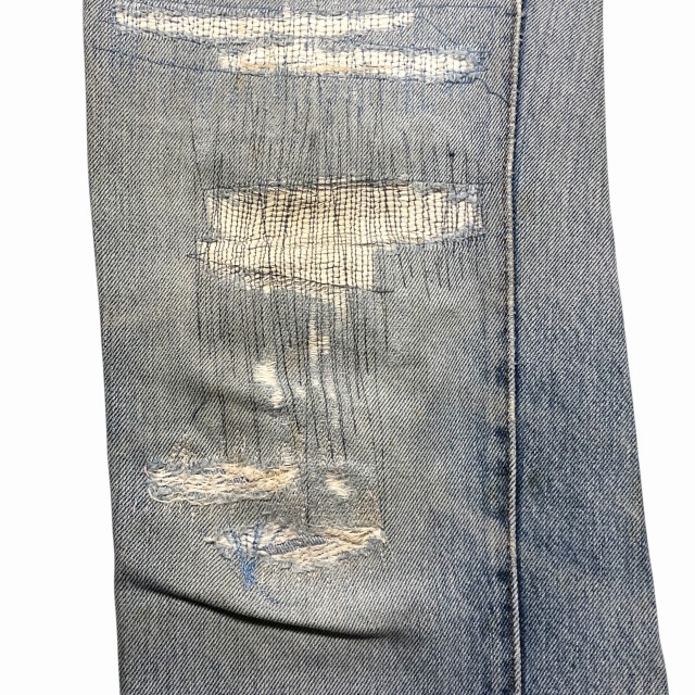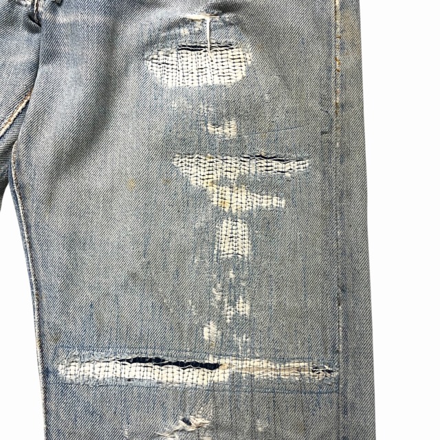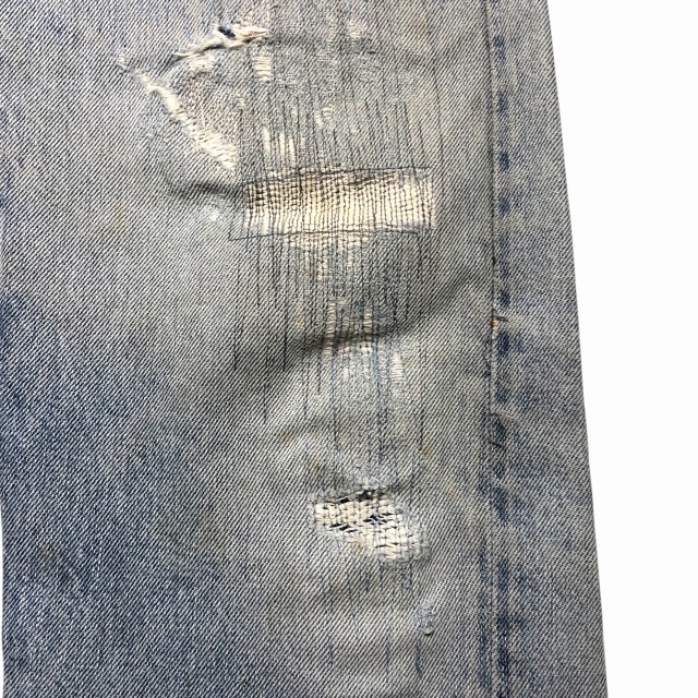 「ロングレングス、ダメージ&リペア、実寸W29 L34.5」