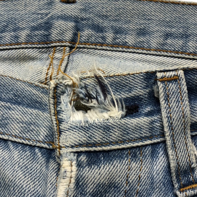 全体的に着用感はありますが、ダメージ物にご理解のある方でしたらまだまだ着用可能状態です。