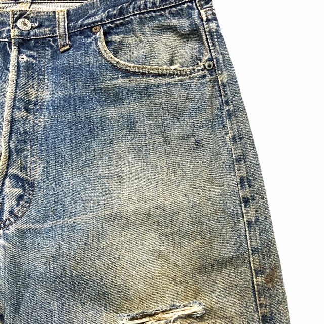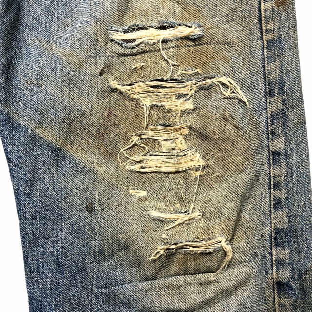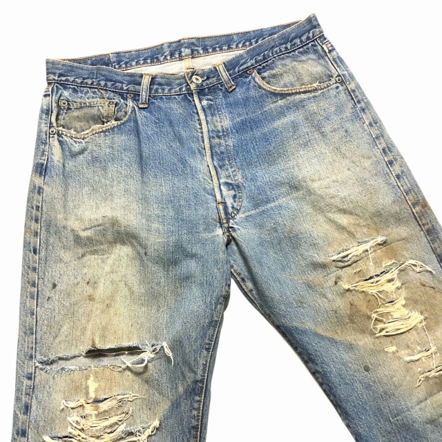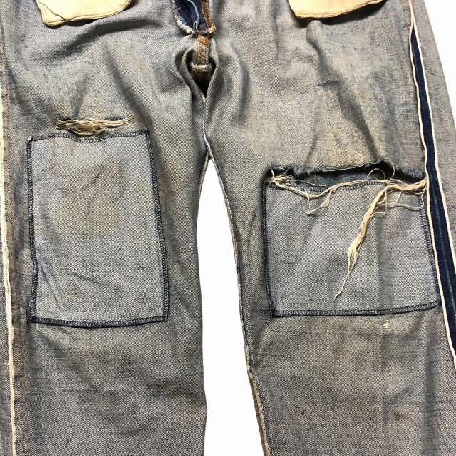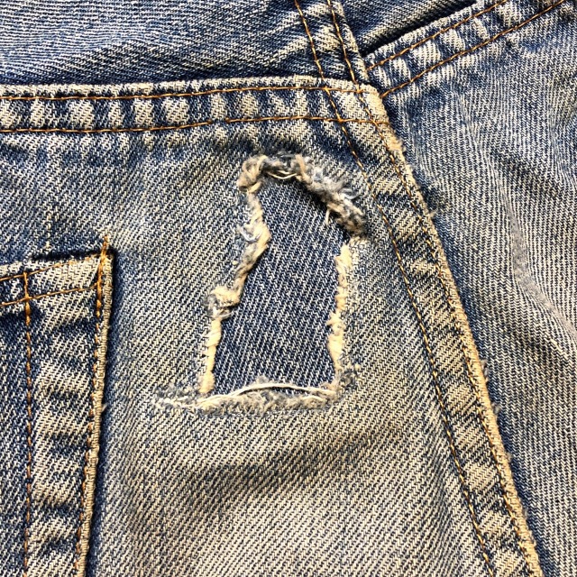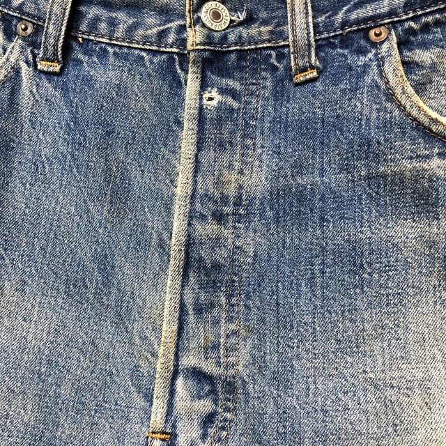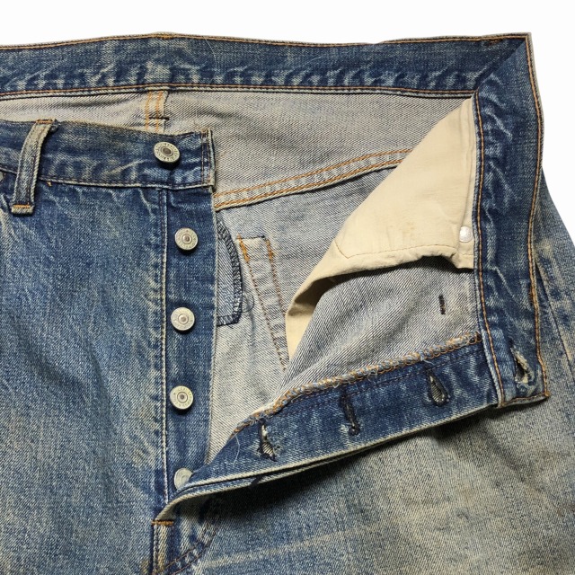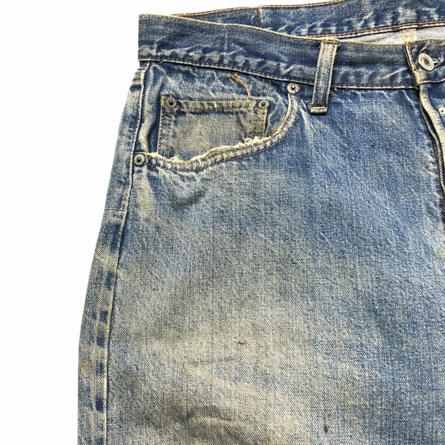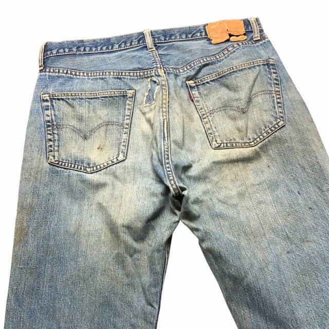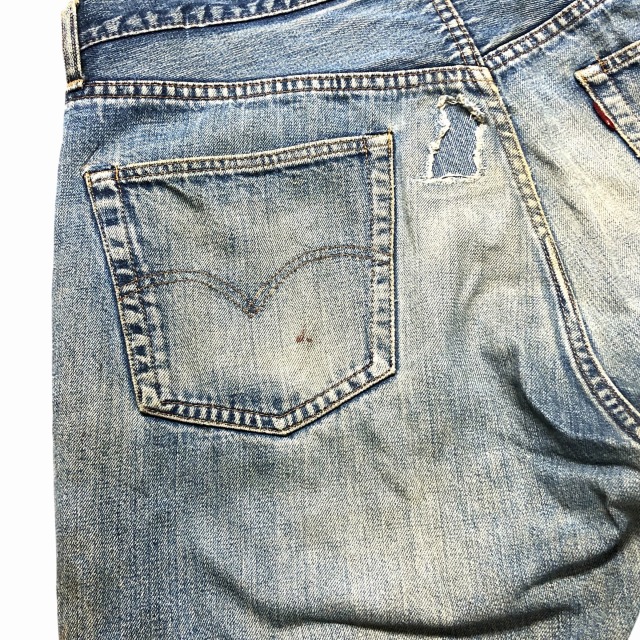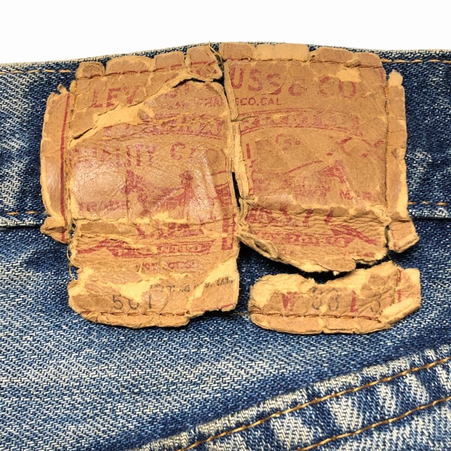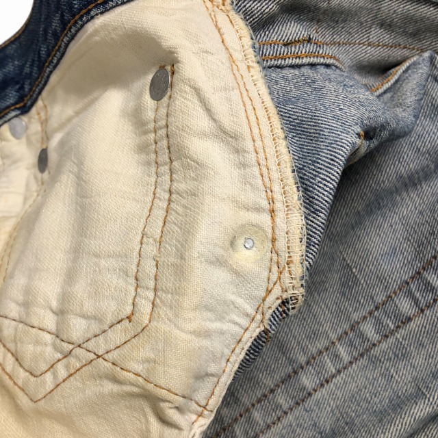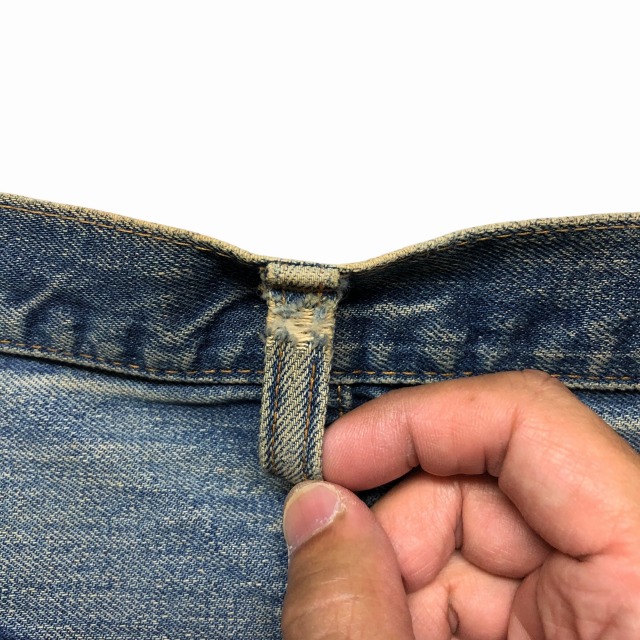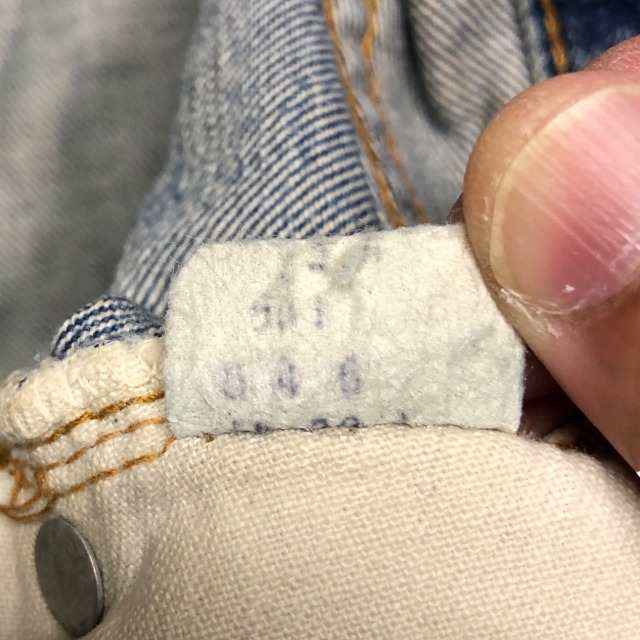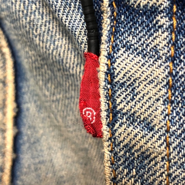 - トップボタン裏刻印『6』、Ⓡ赤タブ、バックポケット裏 シングルステッチ