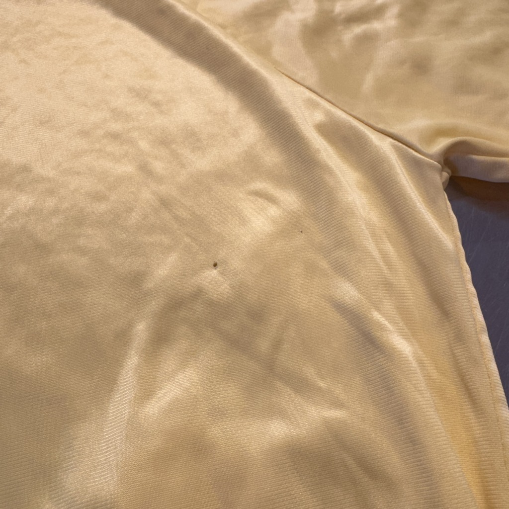 - 背面に小穴、裾リブに薄汚れ、全体的に着用感ございますが、まだまだ問題なく着用していただける状態になります。