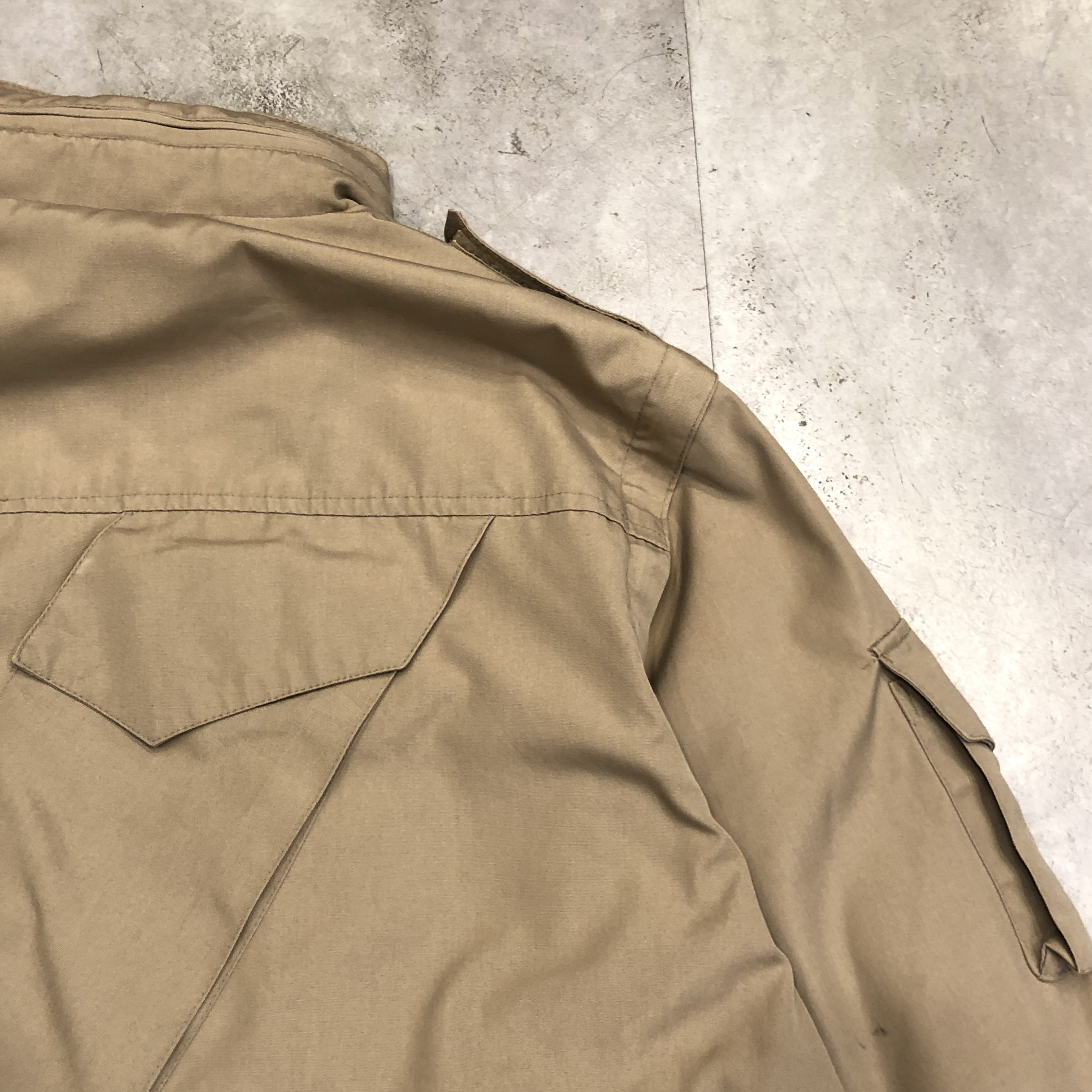 ポリコットンの軽快な生地感に、程よい武骨さと都市生活にも映えるモダンなサンドベージュカラー。スタイリングはM65的にも、スモック的にも、どちらにも落とし込めます。