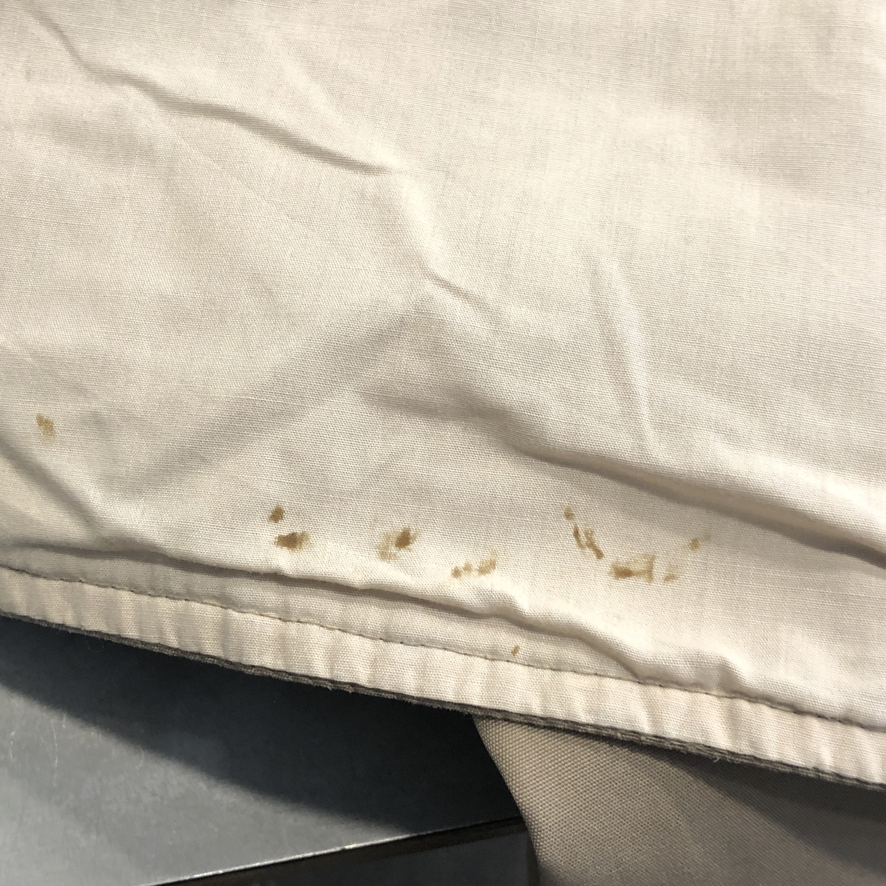 - 年代相応の着用感、右ポケット、左胸ポケット、右袖後、内側等にそれぞれ画像の様な汚れがございますが、古着慣れされている方でしたら問題なくお使いいただけます。