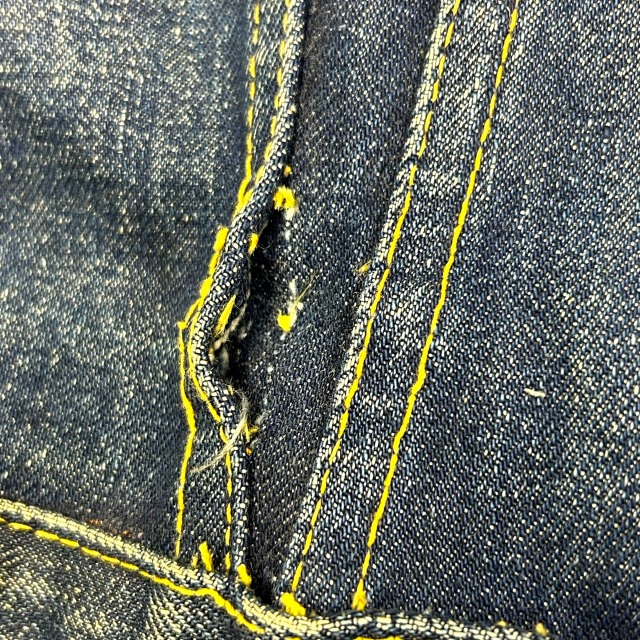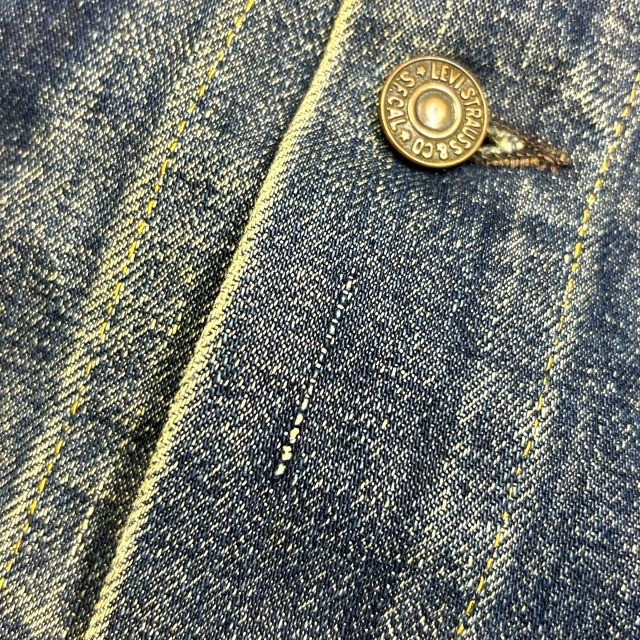 ボタン裏刻印『D』、胸ポケットフラップ裏 ライトオンスデニム