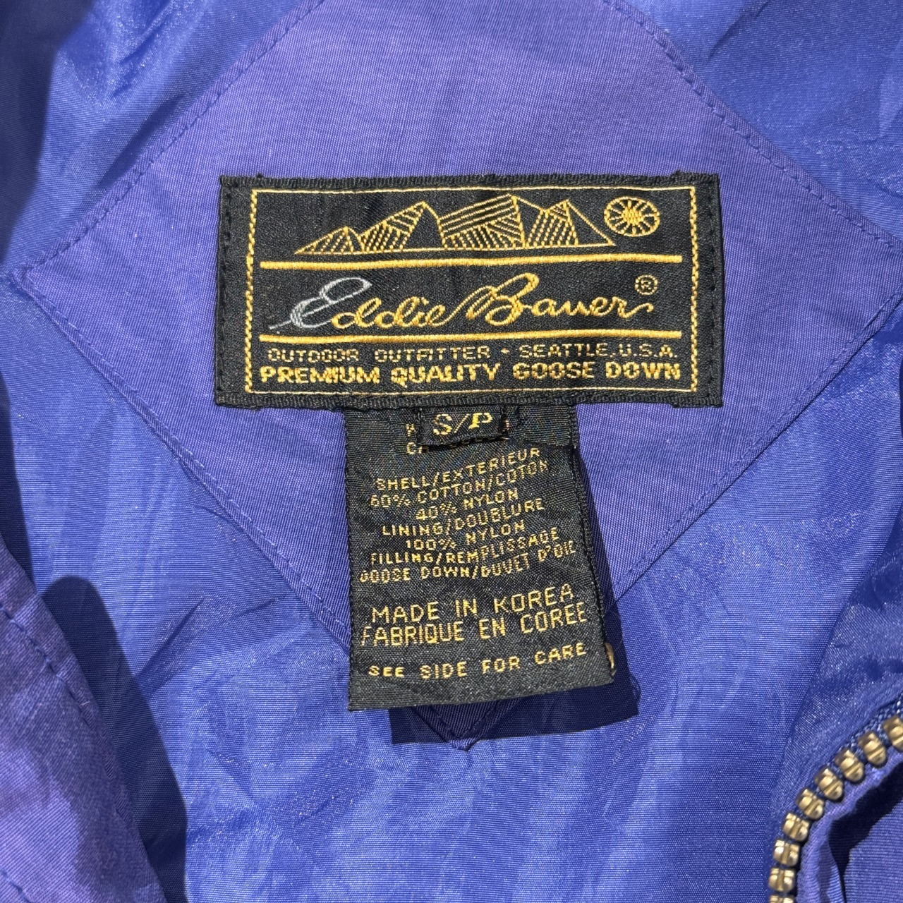「パープル、グースダウン、サイズS」