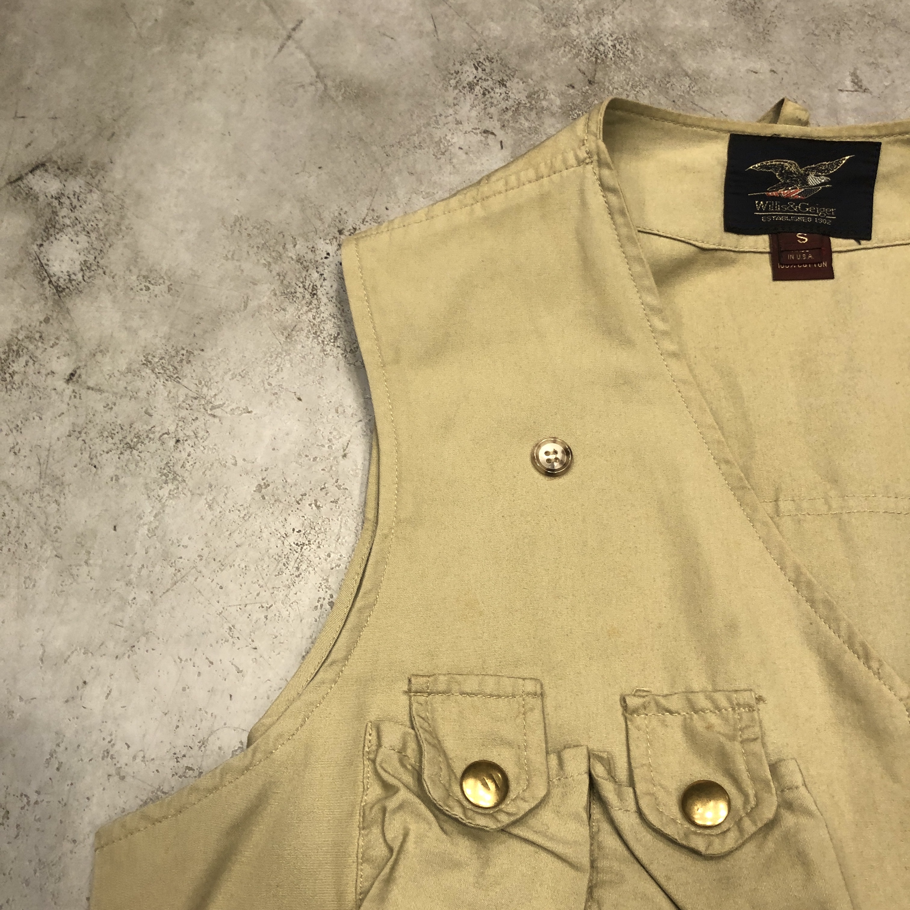 - アウトドアブランドの名門 WILLIS&GEIGERによる1990年代オリジナルのフィッシングベスト。クラシックなディテールが詰まった一着です。アウトドアやフィッシングはもちろん、ミリタリーやアメカジスタイルにも相性抜群です。お探しの方はぜひ!