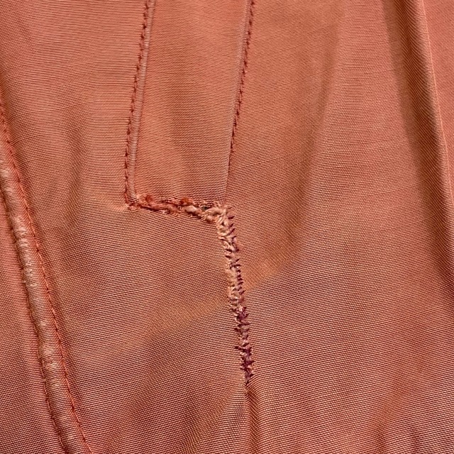 前右ポケット下部や後裾ゴムにリペアやリステッチがございます。