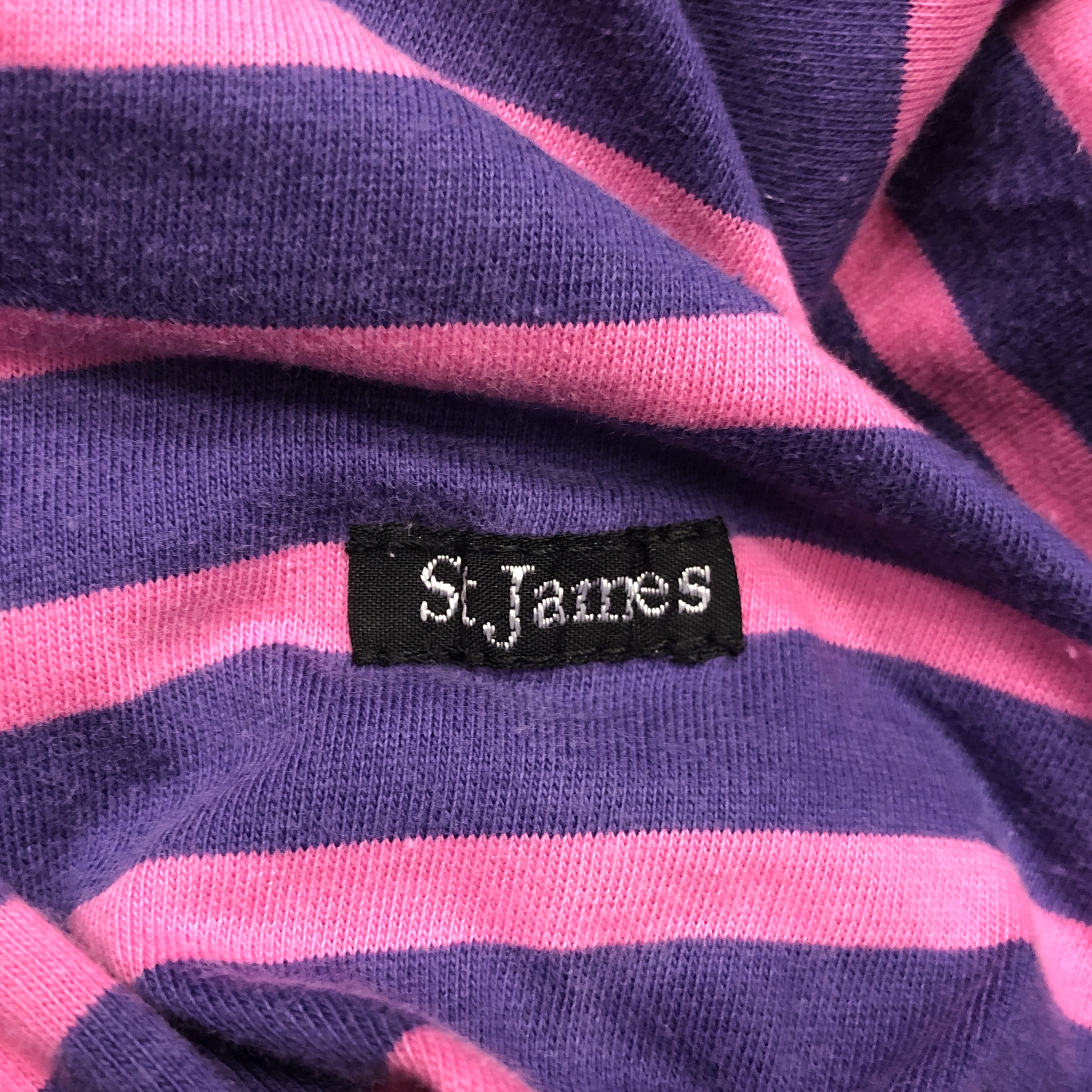 注目すべきは、旧ロゴタグ。現行モデルとは異なる、1980年代特有のグラフィックで、セントジェームス黎明期を象徴するディテール。