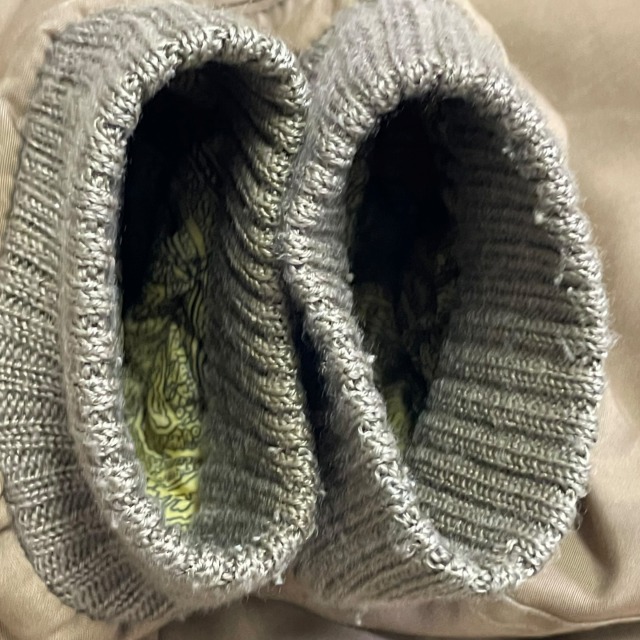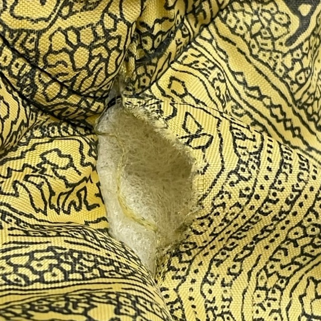 裏地に生地の裂けがあり、中綿が見えている箇所がございます。