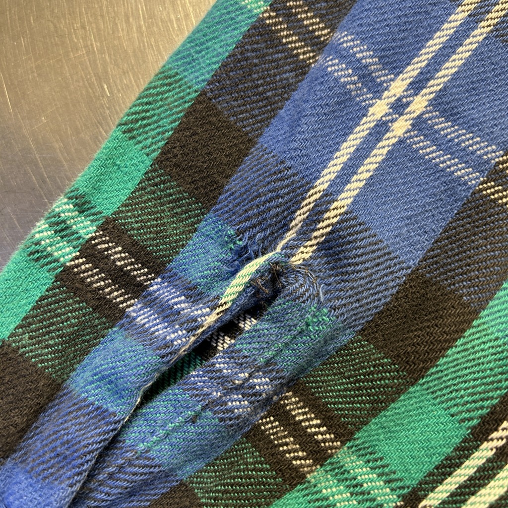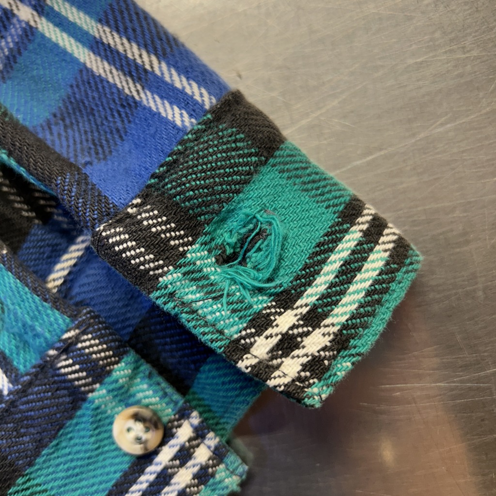 - 画像の様に袖に小穴、袖口ボタンホールにほつれ、使用感がございますが、古着慣れされている方でしたら、着用可能な状態です。