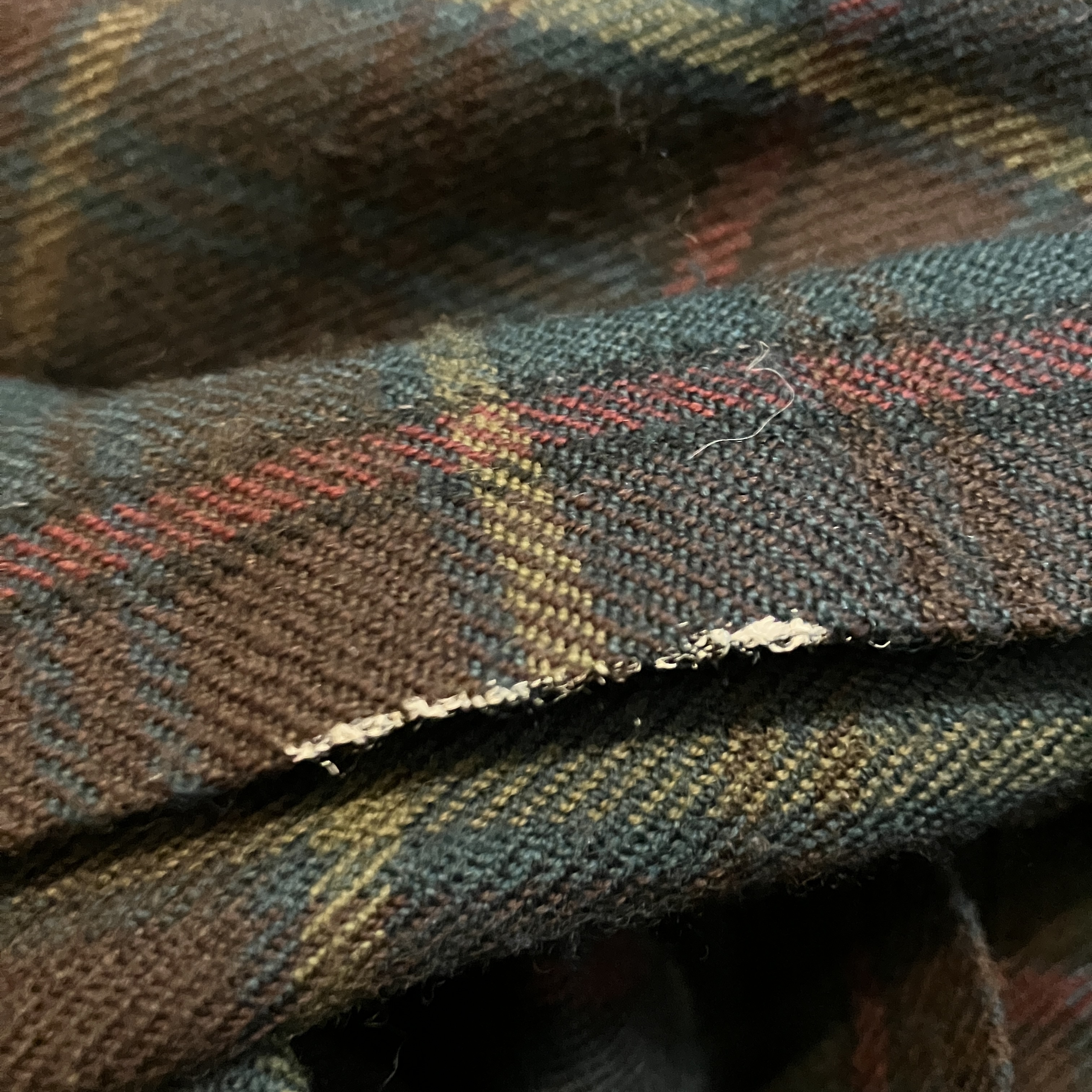 - 多少の擦れや毛羽立ち、裾に一部画像の様な白い汚れがございます。