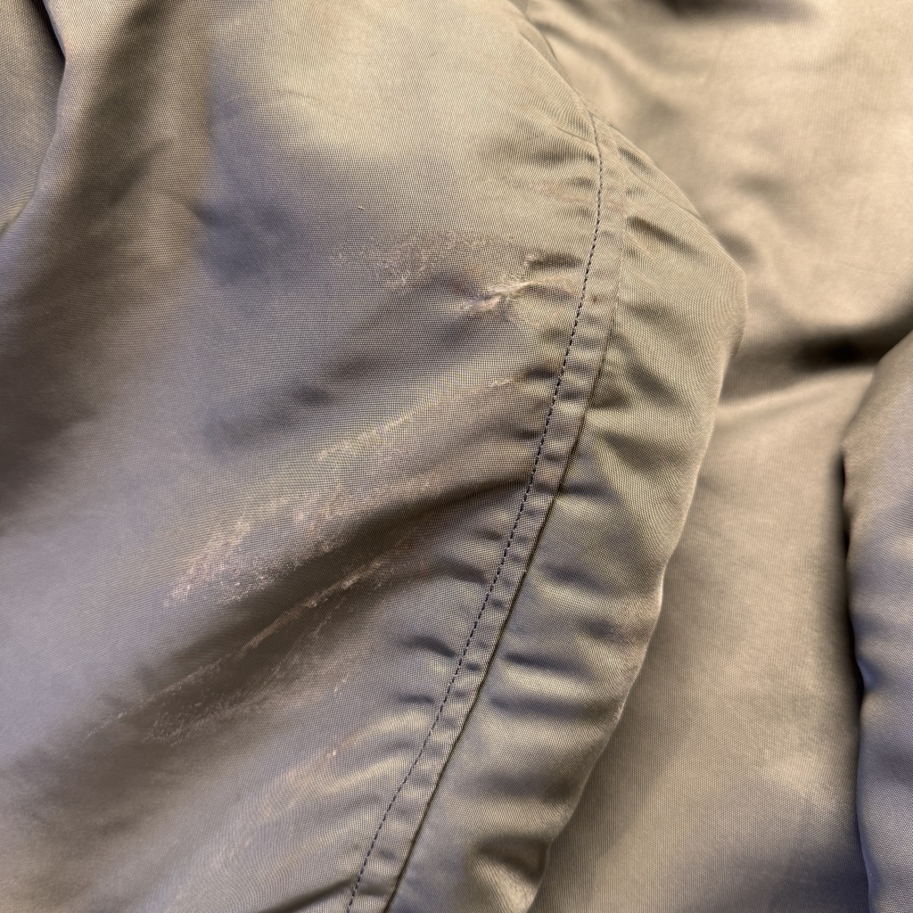 袖にスレによる生地痩せがみられます。