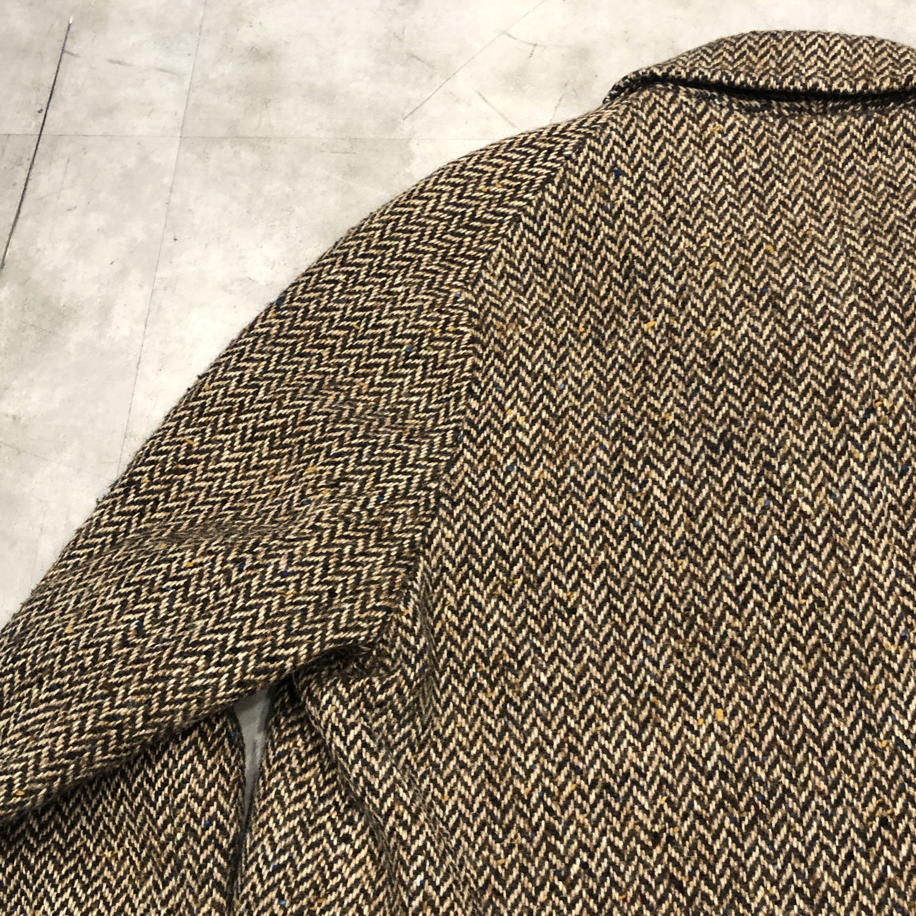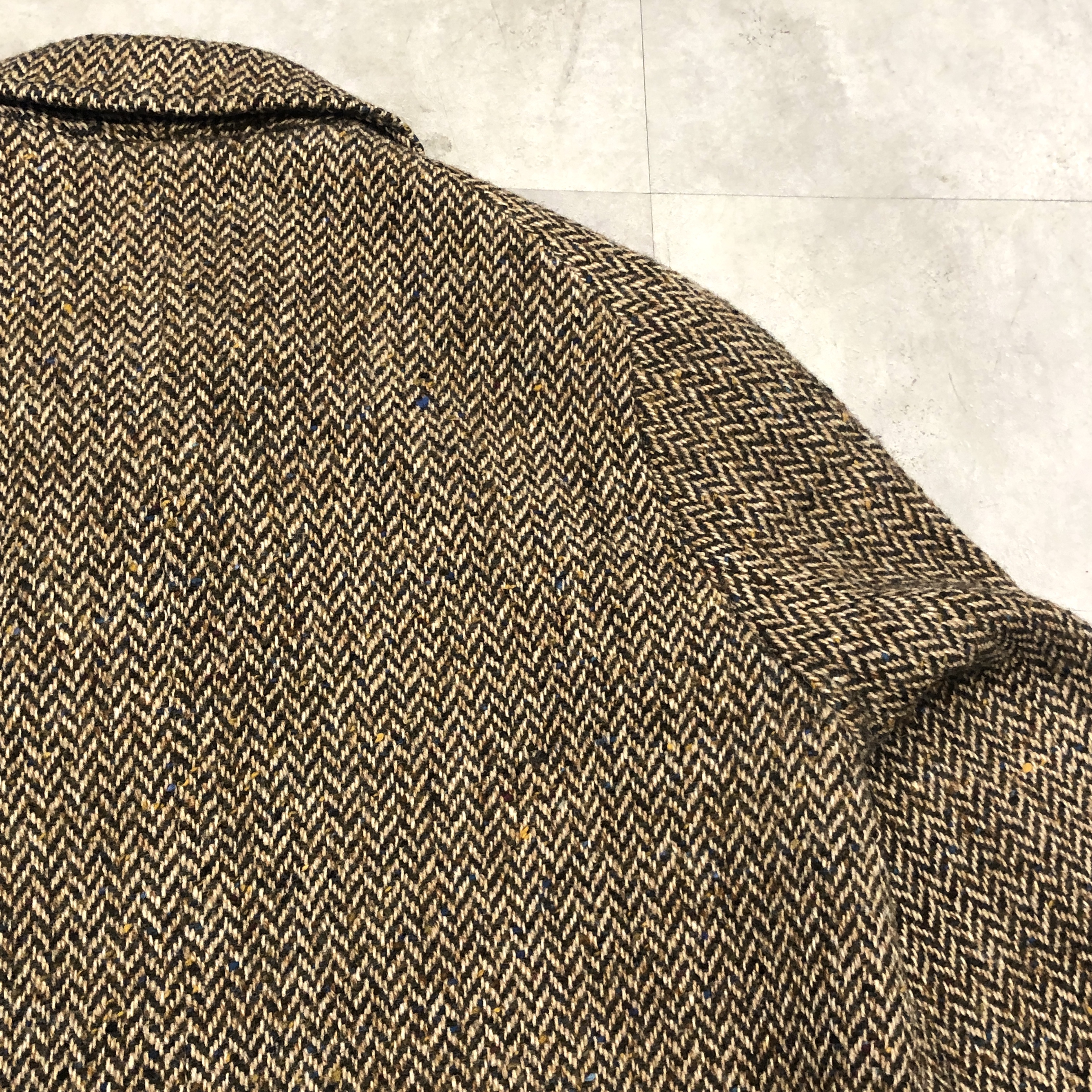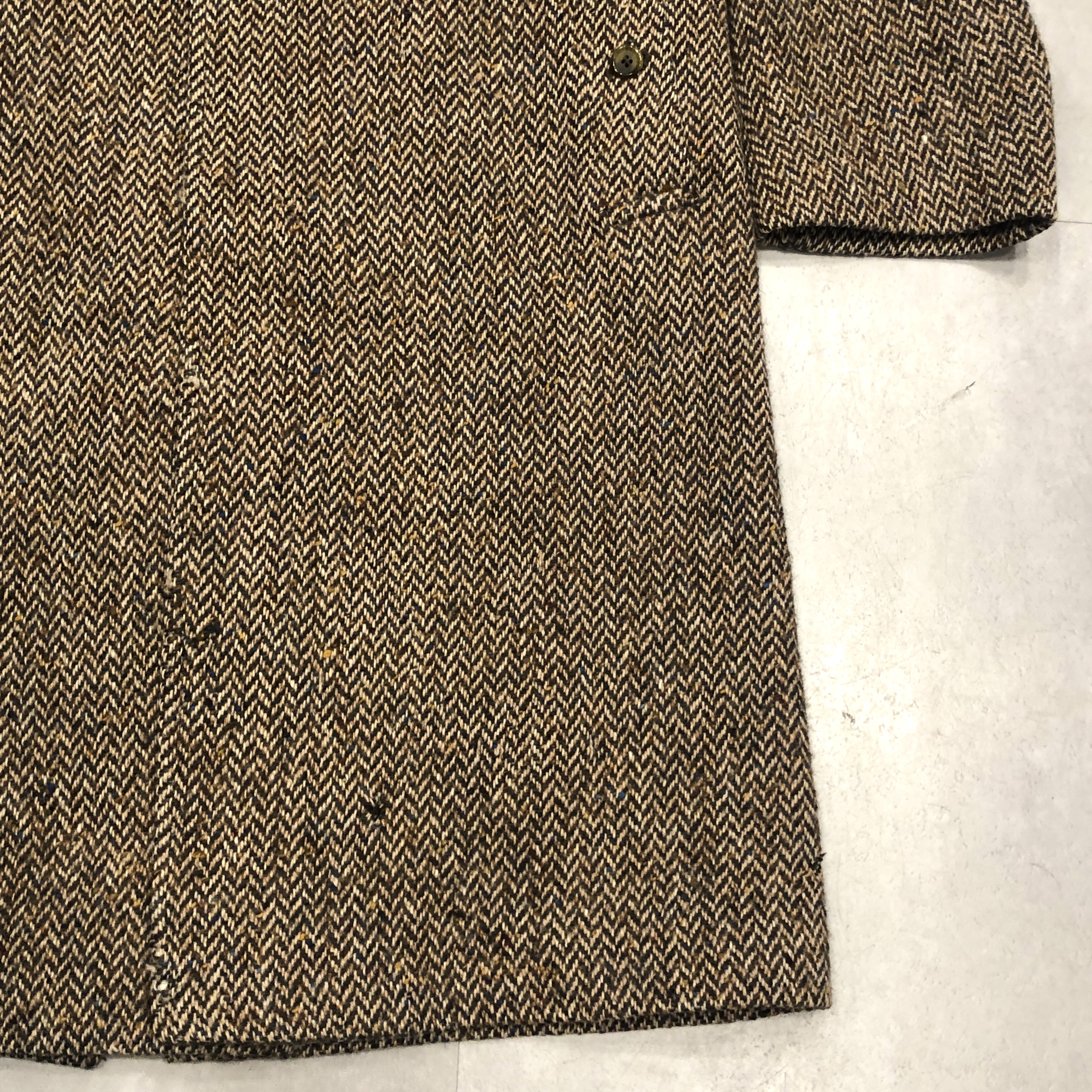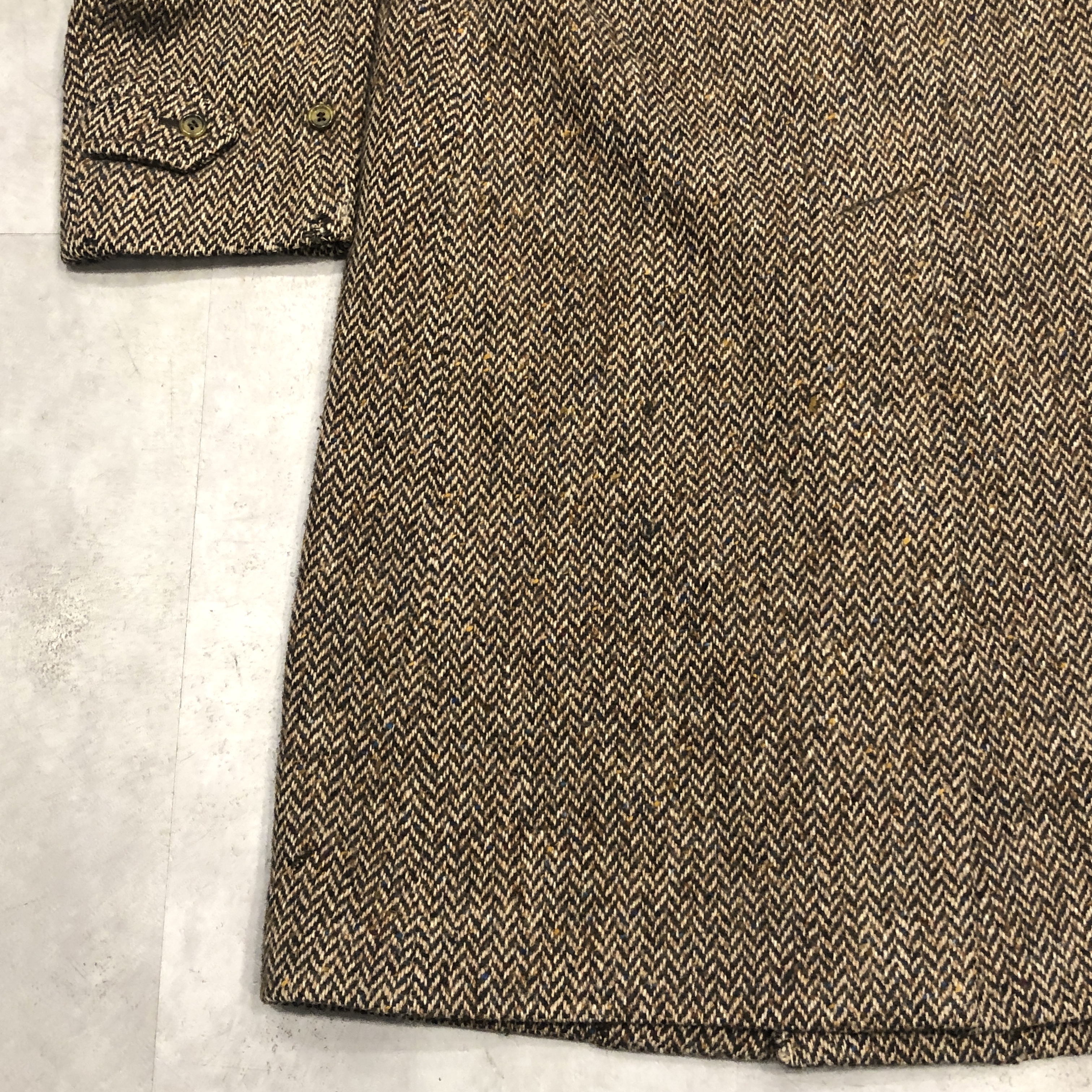 - 老舗バーバリーが誇るアイリッシュツイードを贅沢に使った一枚。80年代頃の「Burberrys’」タグを備えた伝統と風格を纏う英国製コートです。肩から袖にかけての美しい曲線を描くスプリットラグランスリーブが、どの角度から見てもエレガントな立ち姿を演出。