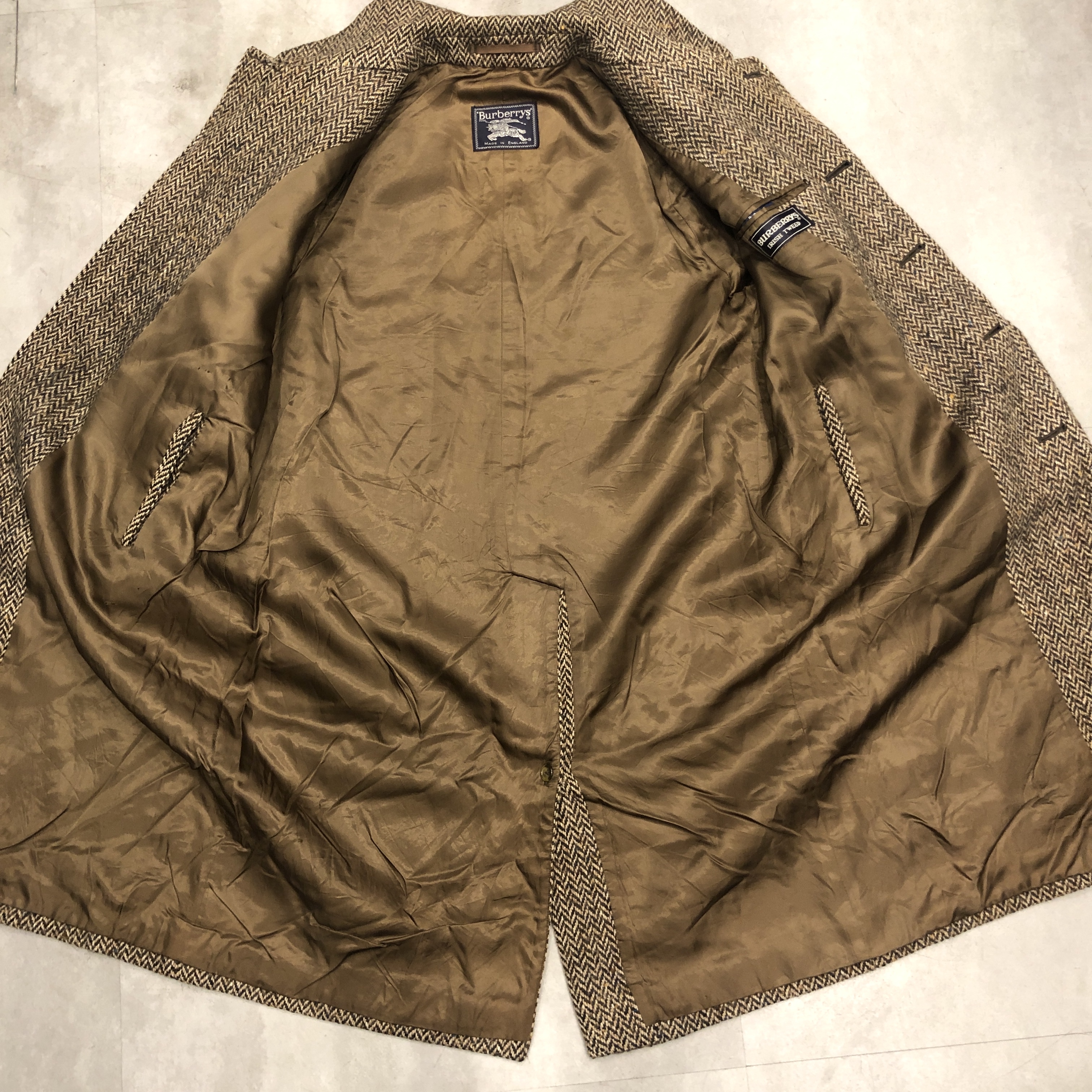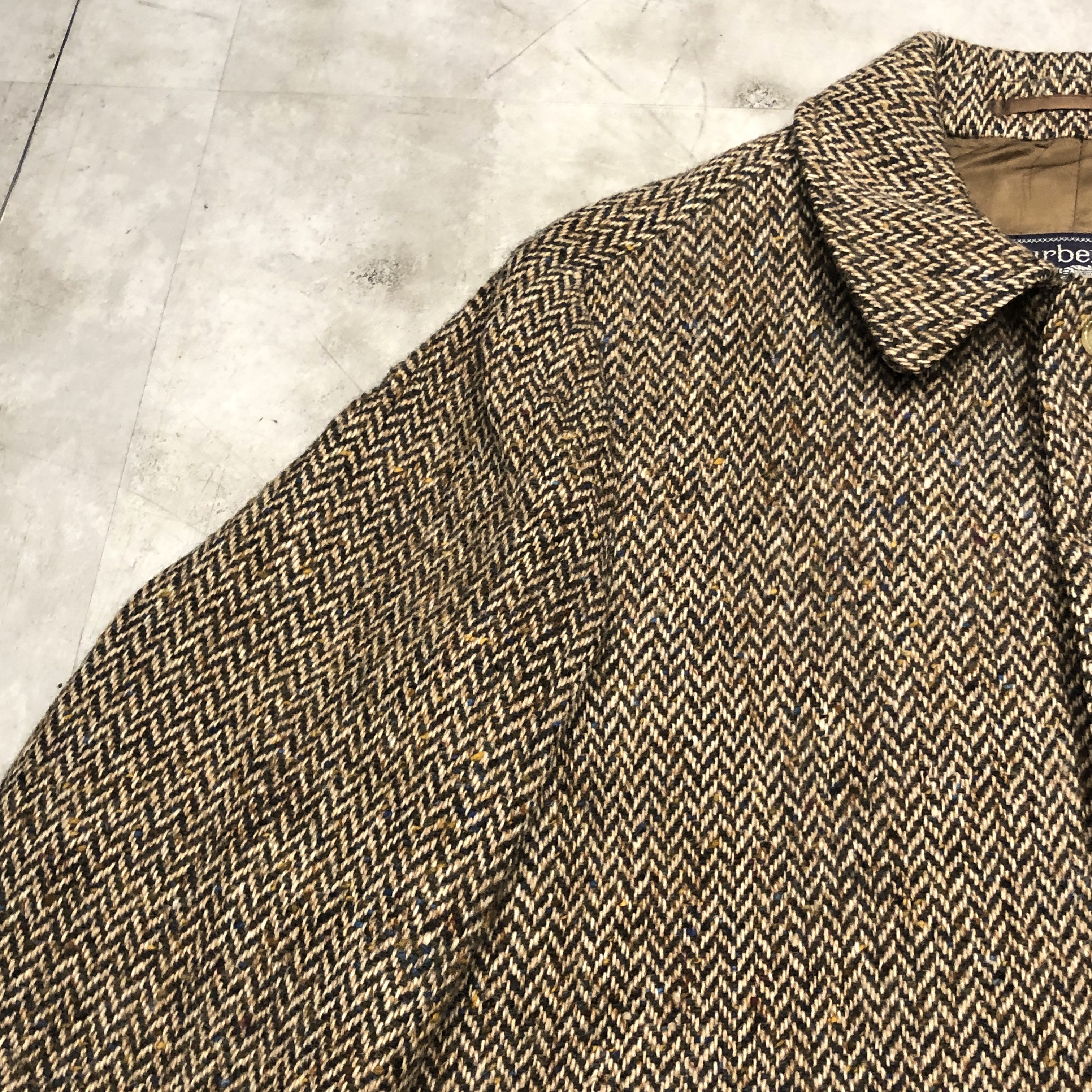 ラグジュアリーの名のもとに、今ではなかなかお目にかかれないアイリッシュツイードの質感。現代のバーバリーにはない、クラフトマンシップと気品を纏った珠玉の一着です。
