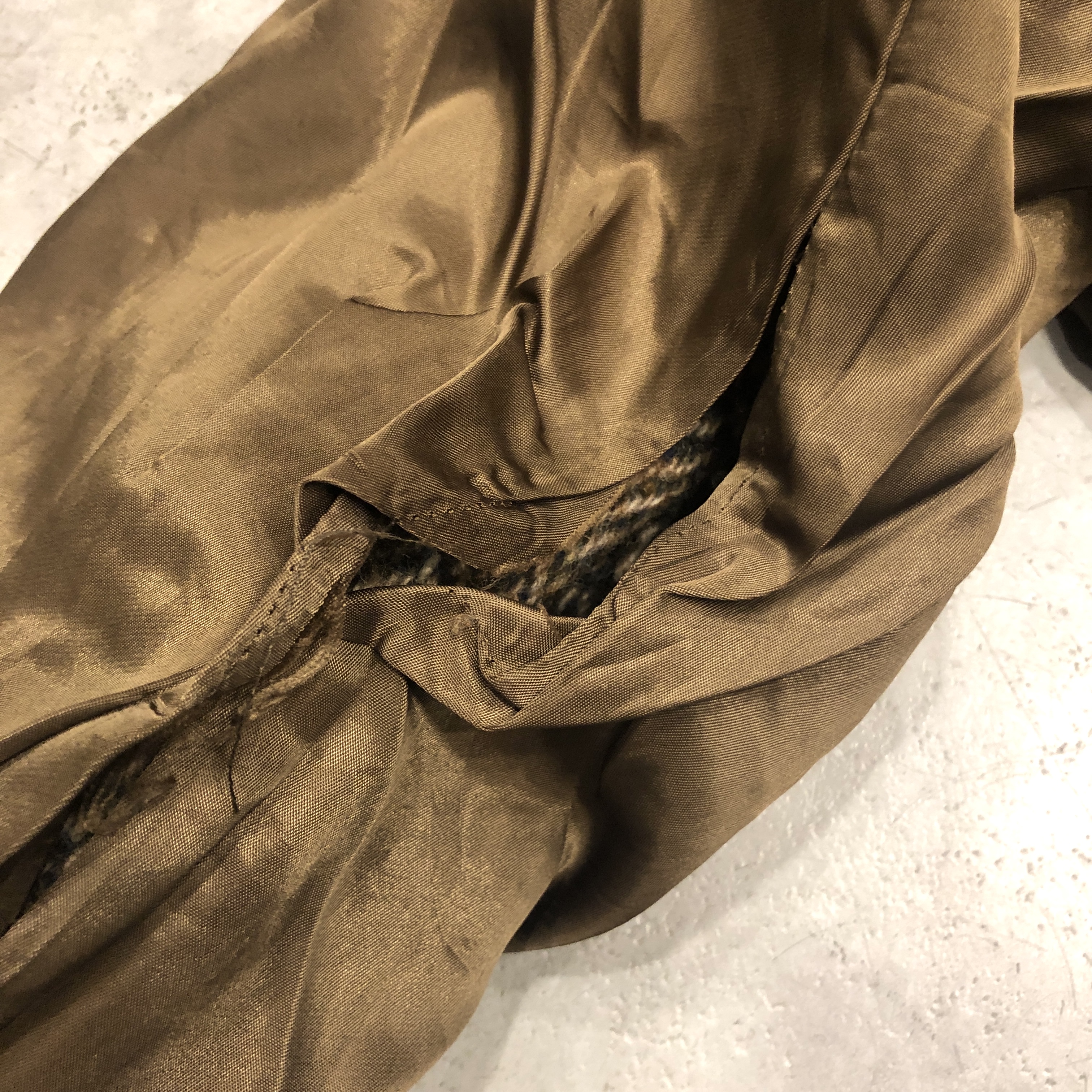 - 年代相応の着用感、袖口と右肩後と右脇下、内側のダメージ、袖内側の大幅なホツレ等がそれぞれ画像の様にございますが、ヴィンテージ慣れされた方でしたら問題なく着用していただける範囲です。