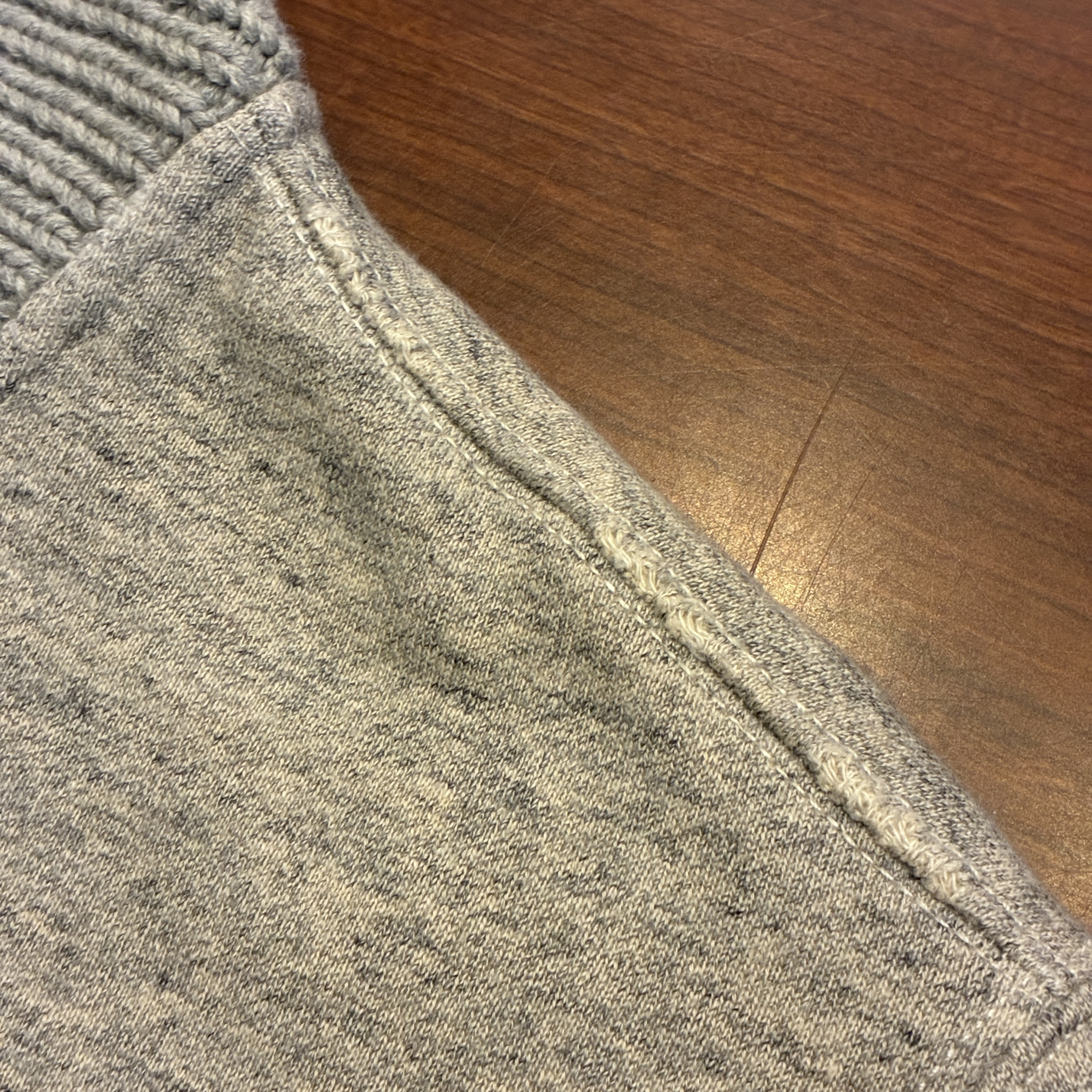 脇部分に毛羽立ち等の着用感がございますが、目立つ汚れやダメージは無くまだまだ問題無く着用していただける状態です。
