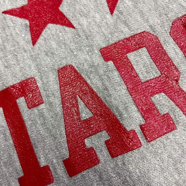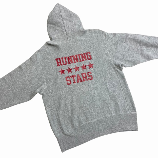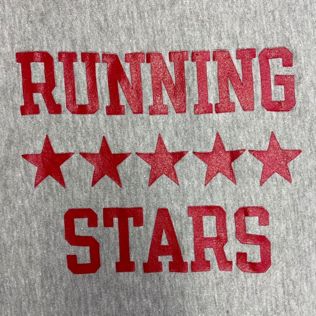 「単色タグ、背面プリント、RUNNING STARS、グレー×レッド」