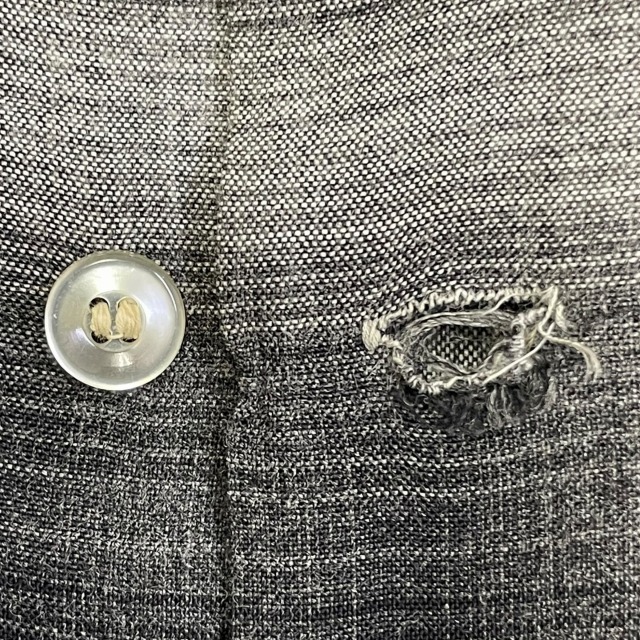 左胸ポケット上付近にリペアがあり、後裾にステッチ抜けがございます。