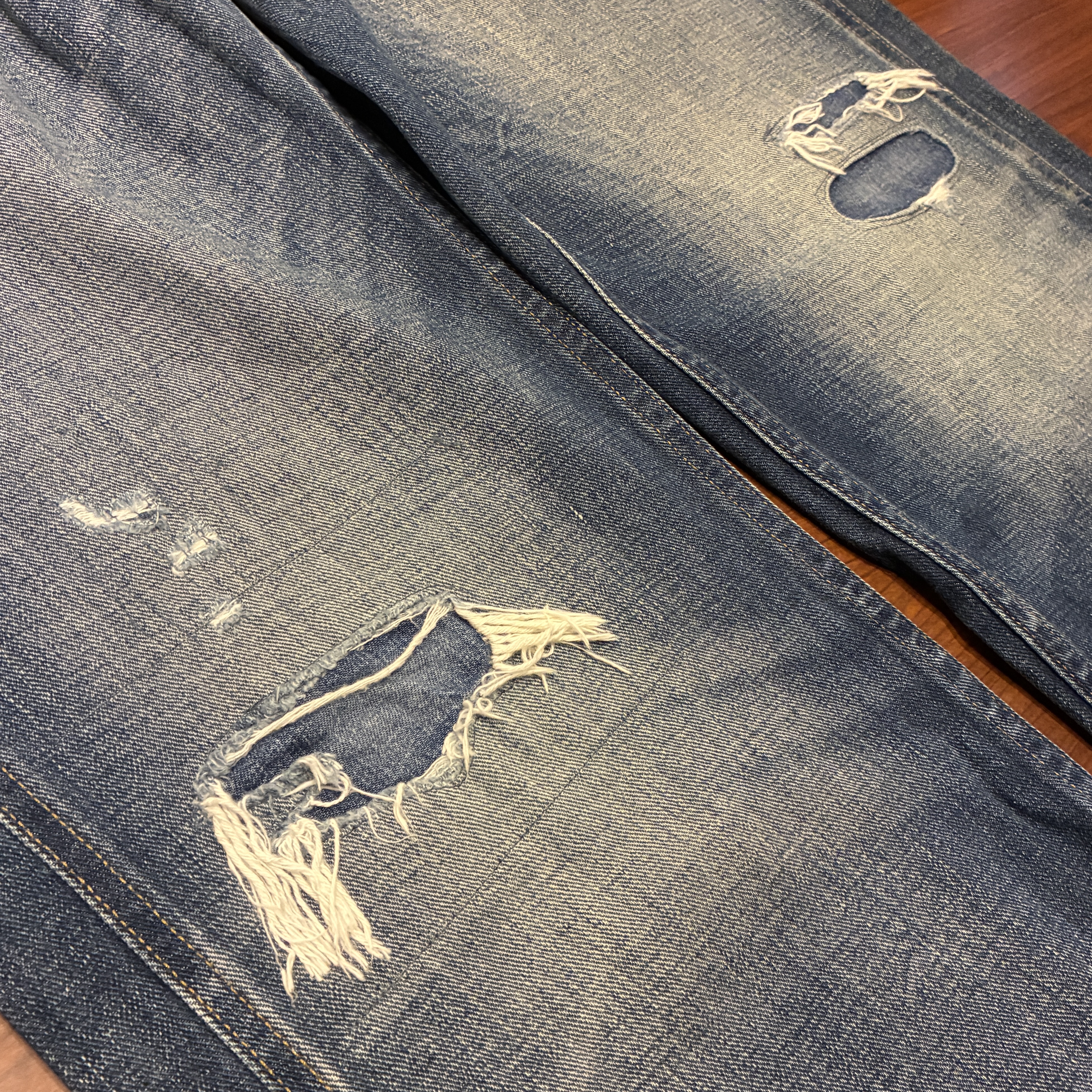 多少の着用感がございますが加工箇所以外に目立つ汚れやダメージは無く、問題無く着用していただける状態です。