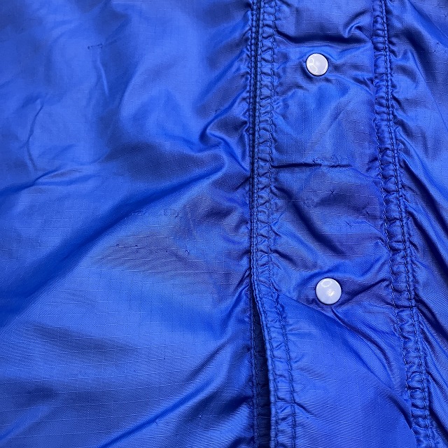 - ドローコードのゴムの伸びや、穴の若干の広がりがみられます。また、ナイロン面、所々に薄汚れや、小さな傷がみられます。その他、襟先の小さなダメージ、袖先の毛玉等の年代相応の着用感がみられ、ユーズド慣れされた方におすすめの商品です。
