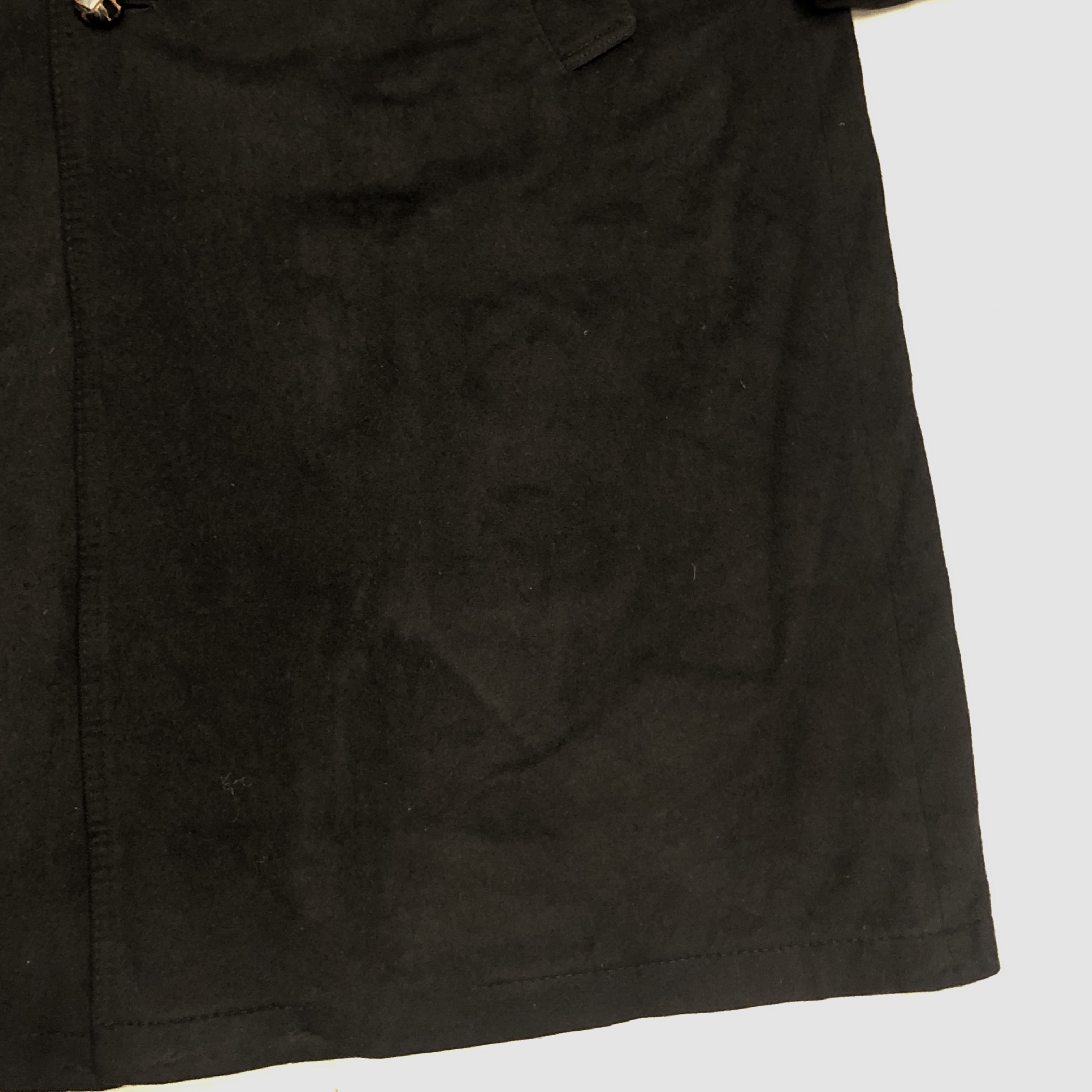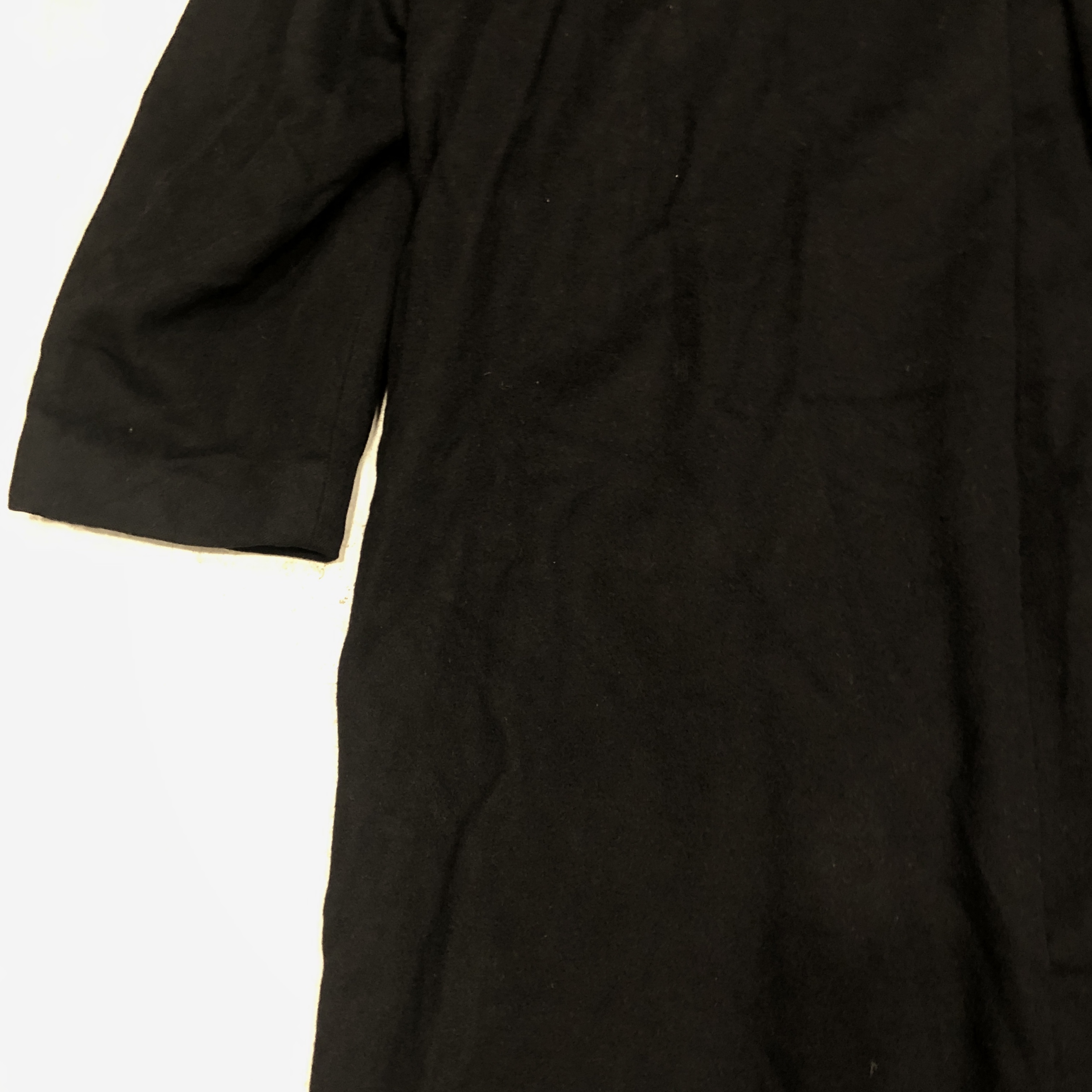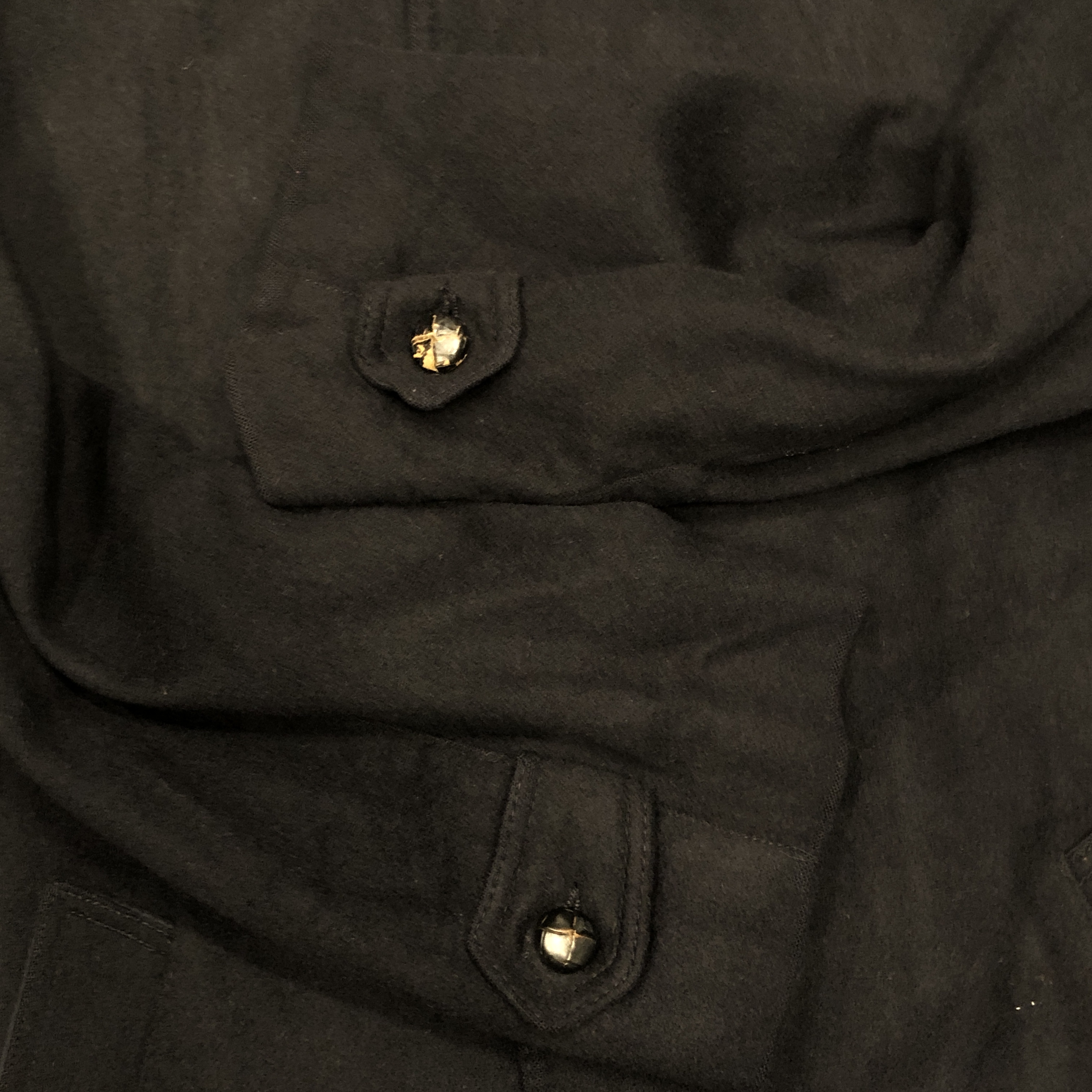 - オーストリア製のローデンクロスを贅沢に用いた、Burberrysによるオリジナル・ローデンコート。ローデンとは、オーストリア〜南ドイツの山岳地帯で狩猟や乗馬用に愛用されてきた伝統的なウール地で、雨雪を弾きながらも内部の湿気は逃がすという、ゴアテックスも顔負けの天然機能素材。本来グリーン系が主流ですが、こちらは漆黒に近いダークネイビーというのがまた洒落ています。背中には深いインバーテッドプリーツ、総裏にはブラックウォッチ系チェックのライニング、80%ヴァージンウール+20%アルパカ混。着るだけでウィーンの街角に立っているような気分にさせてくれる、風格と詩情を併せ持った一着です。バーバリーのトレンチとはまた別軸の、ヨーロッパ上流階級の休日服——その余裕を、現代の装いに取り入れてみませんか。