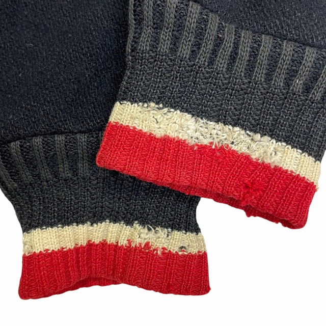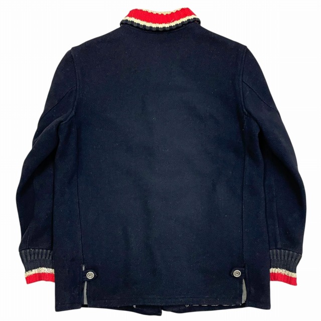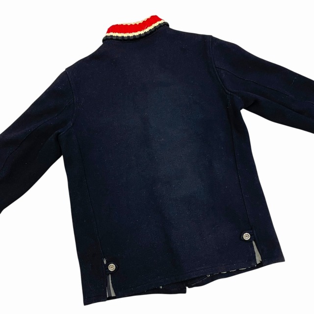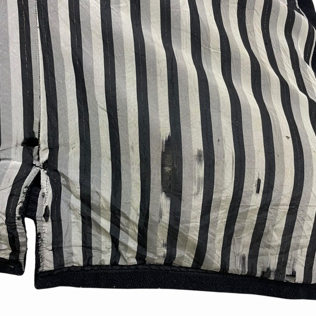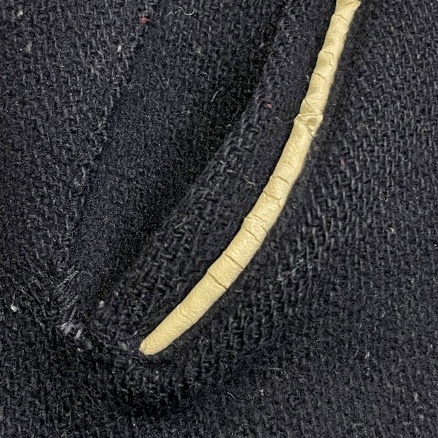 リブ部分、ポケット、後左裾、右肘付近、裏地等に手縫いで簡易的なお直しがございます。