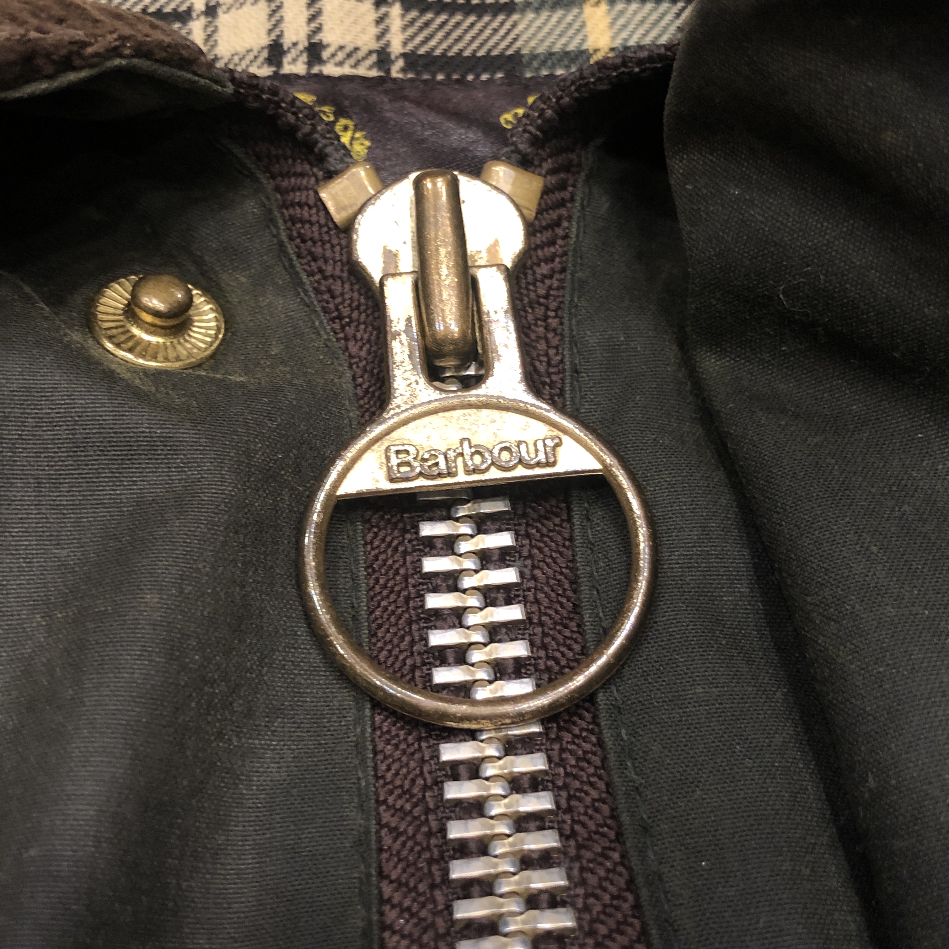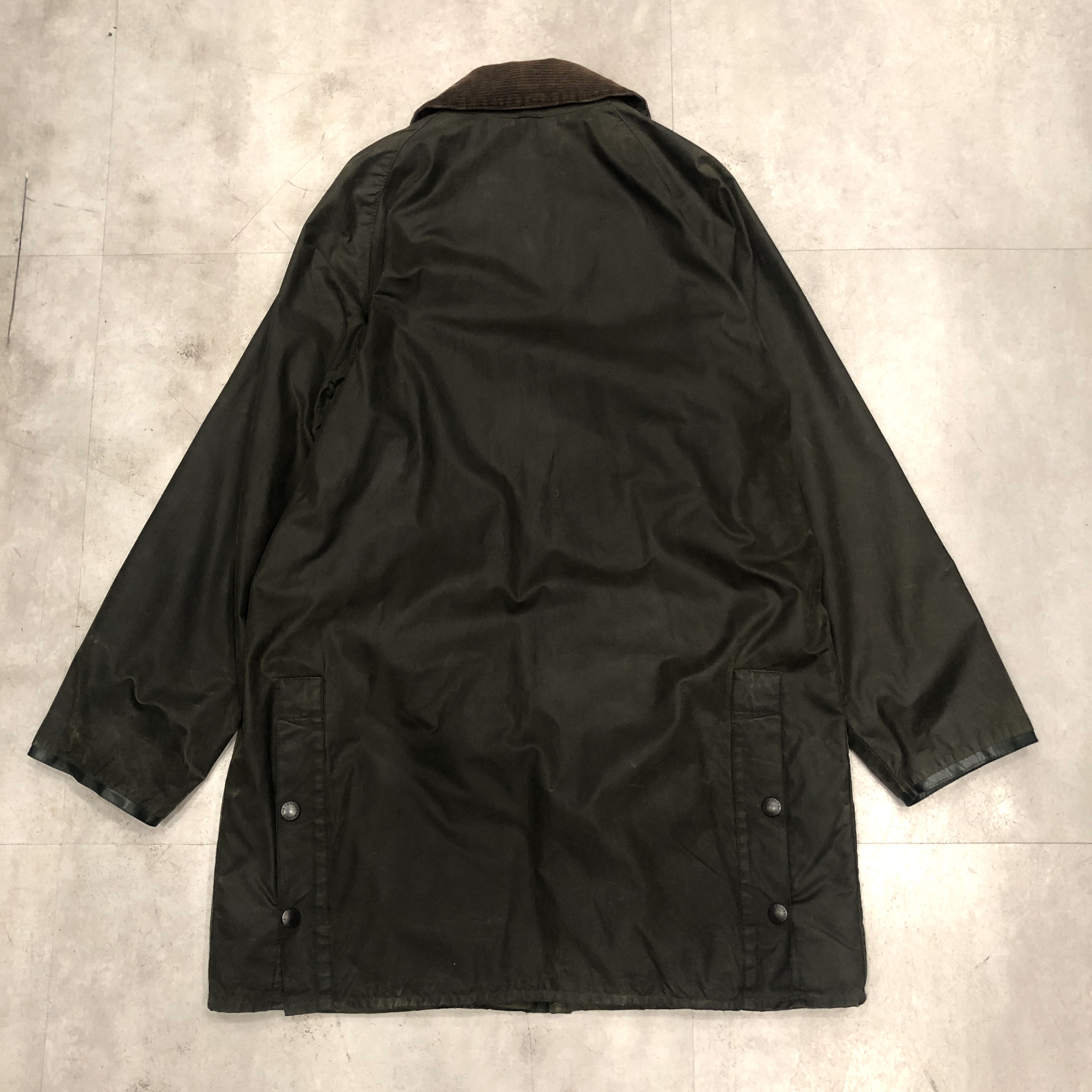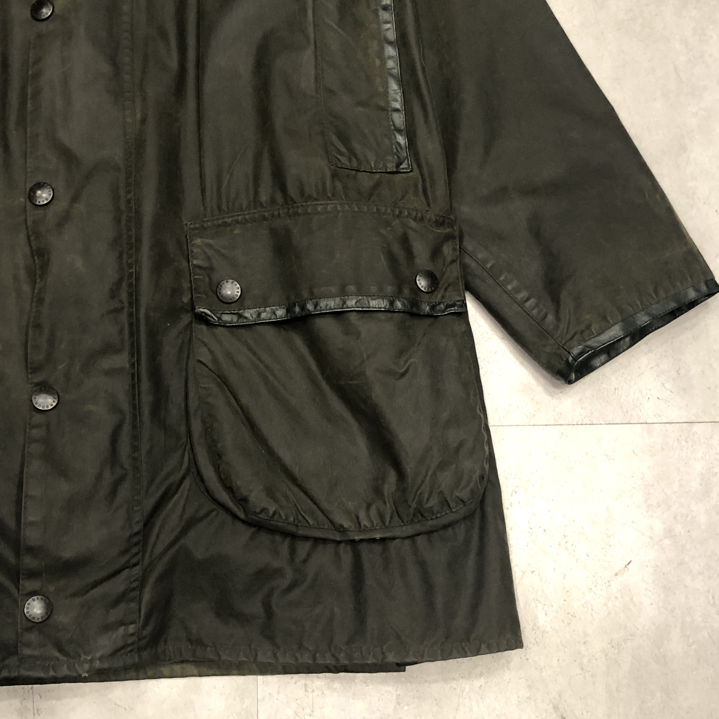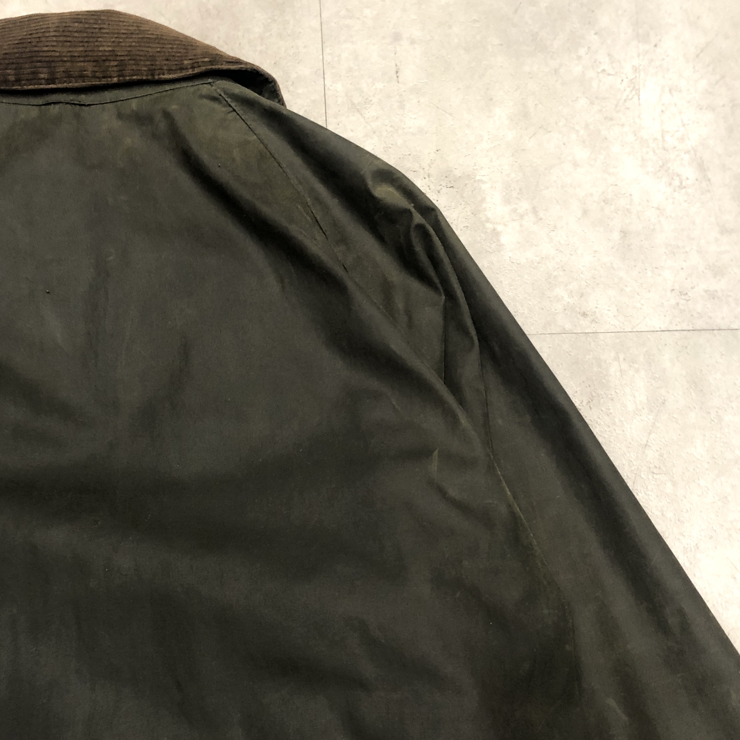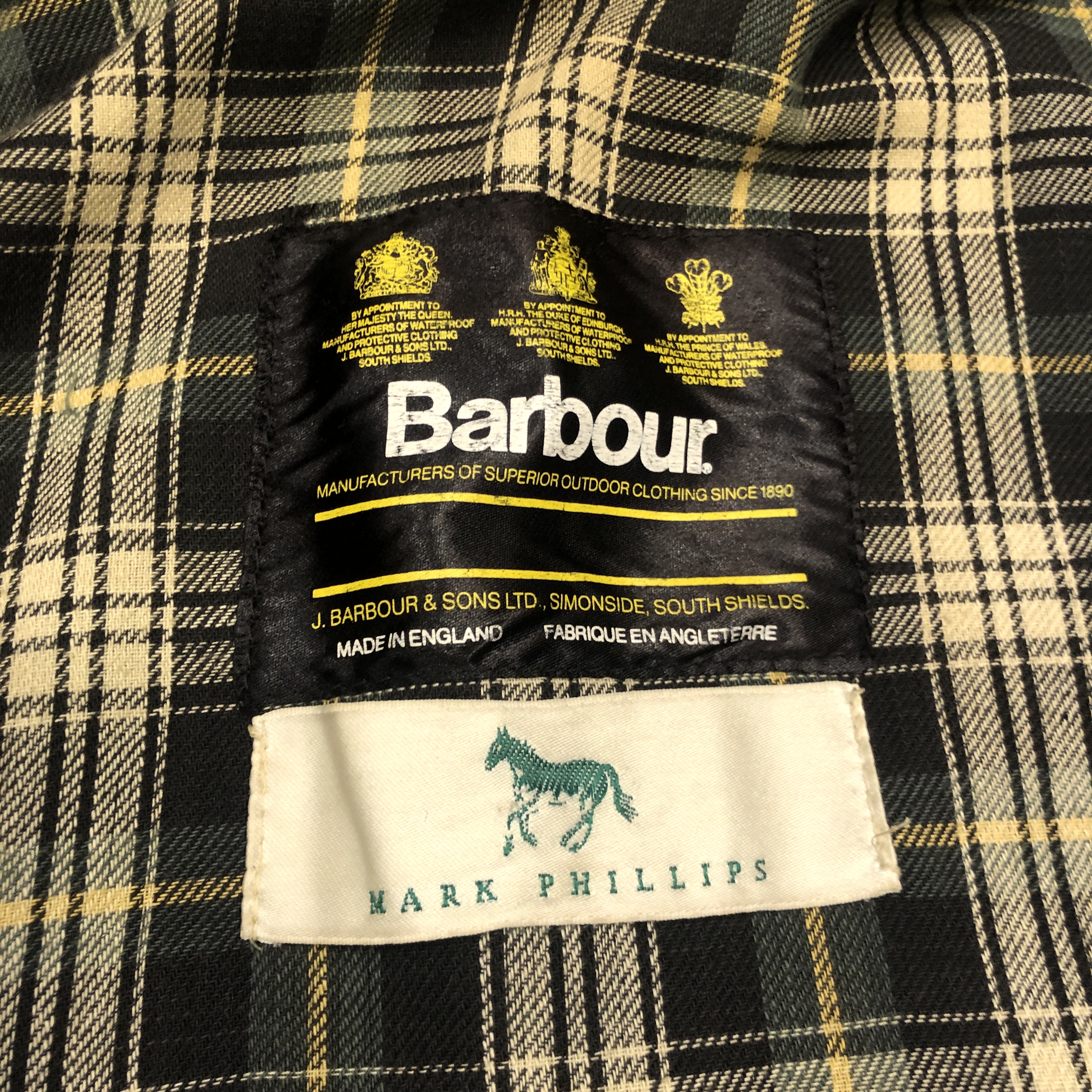 - バブアー好きなら誰もが通る王道ビデイルやボーダー。そのさらに奥にある“通好みの一枚”がこのMARK PHILLIPS(マーク・フィリップス)モデル。英国王室アン王女の元夫にしてオリンピック金メダリストの名を冠するだけあり、ただのフィッシング・ハンティング用ではなく馬術視点で設計された特別仕様。深く取られた後ろのベンチレーション、鞍に跨る前提のゆったりとしたアームと裾周り、そして胸元に光る馬のタグ。3ワラントの荘厳なパッチと並んで付くこのタグを見ただけでテンションが上がる人は、きっとかなりの“沼”の住人でしょう。色味は使い込むほどに鈍く艶を増すオリーブ。コーデュロイの襟もいい感じに焼けてきており、これからさらに仕上がる余地を残した熟成途中の一本です。定番を2周くらいした玄人の方、ぜひ次はここで遊んでみませんか?