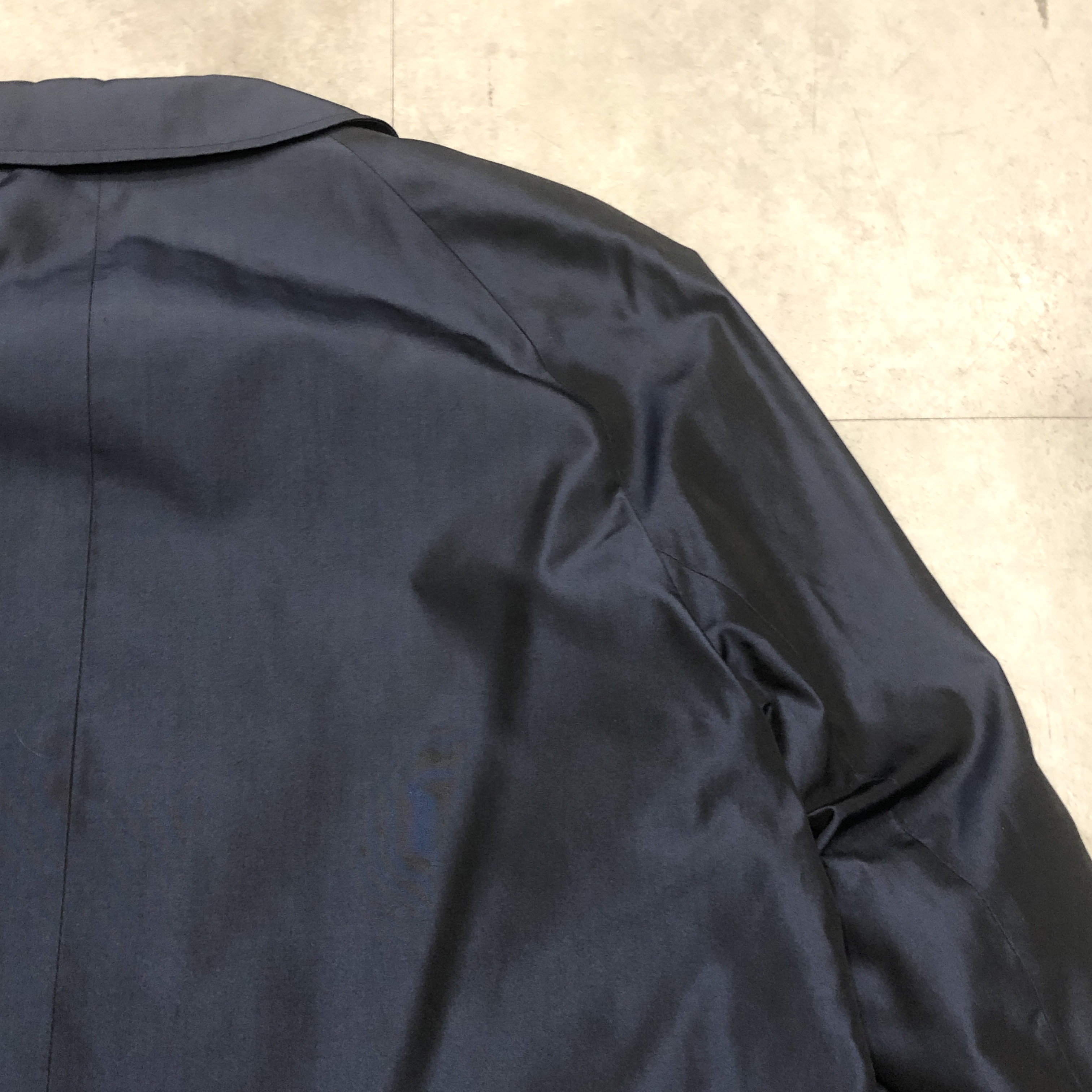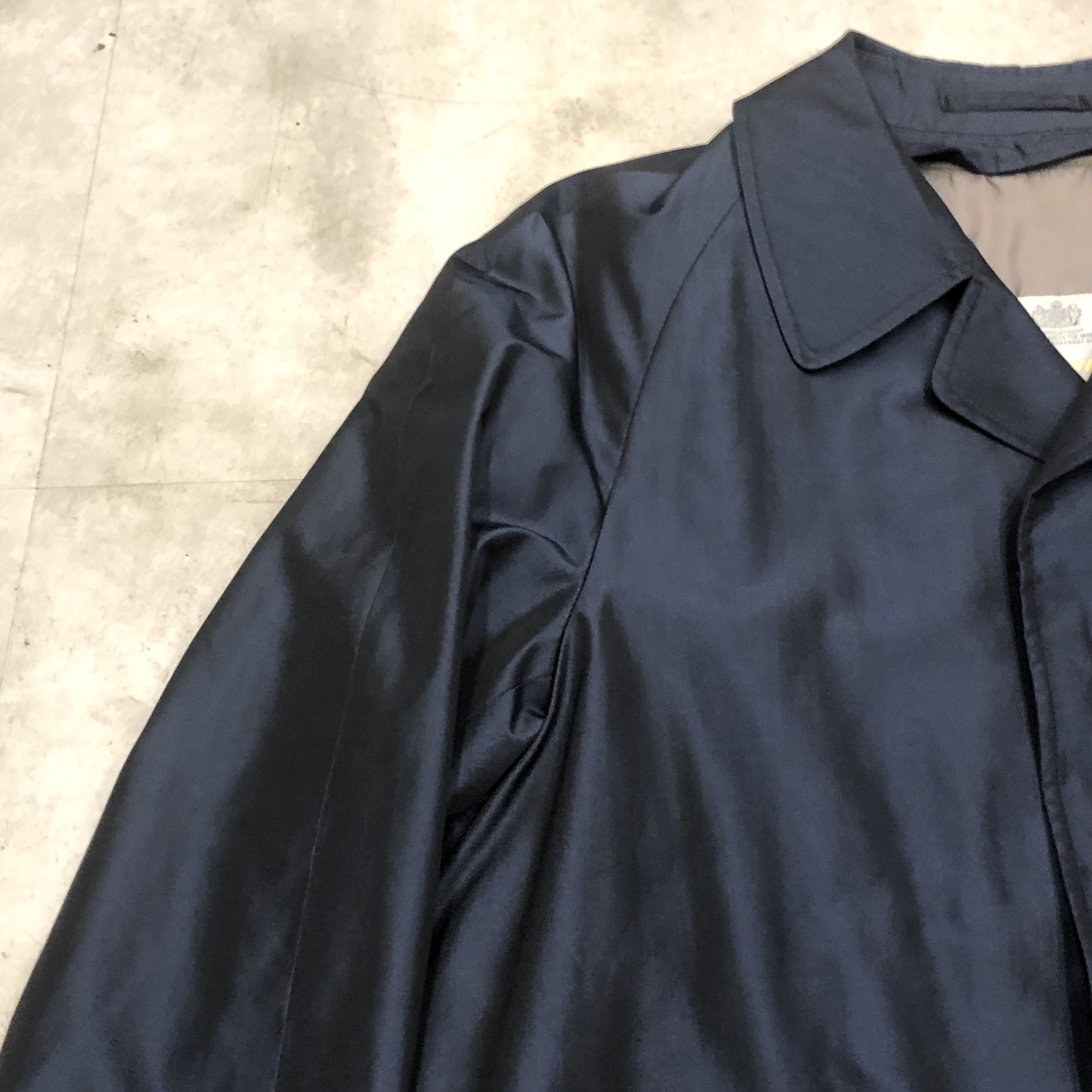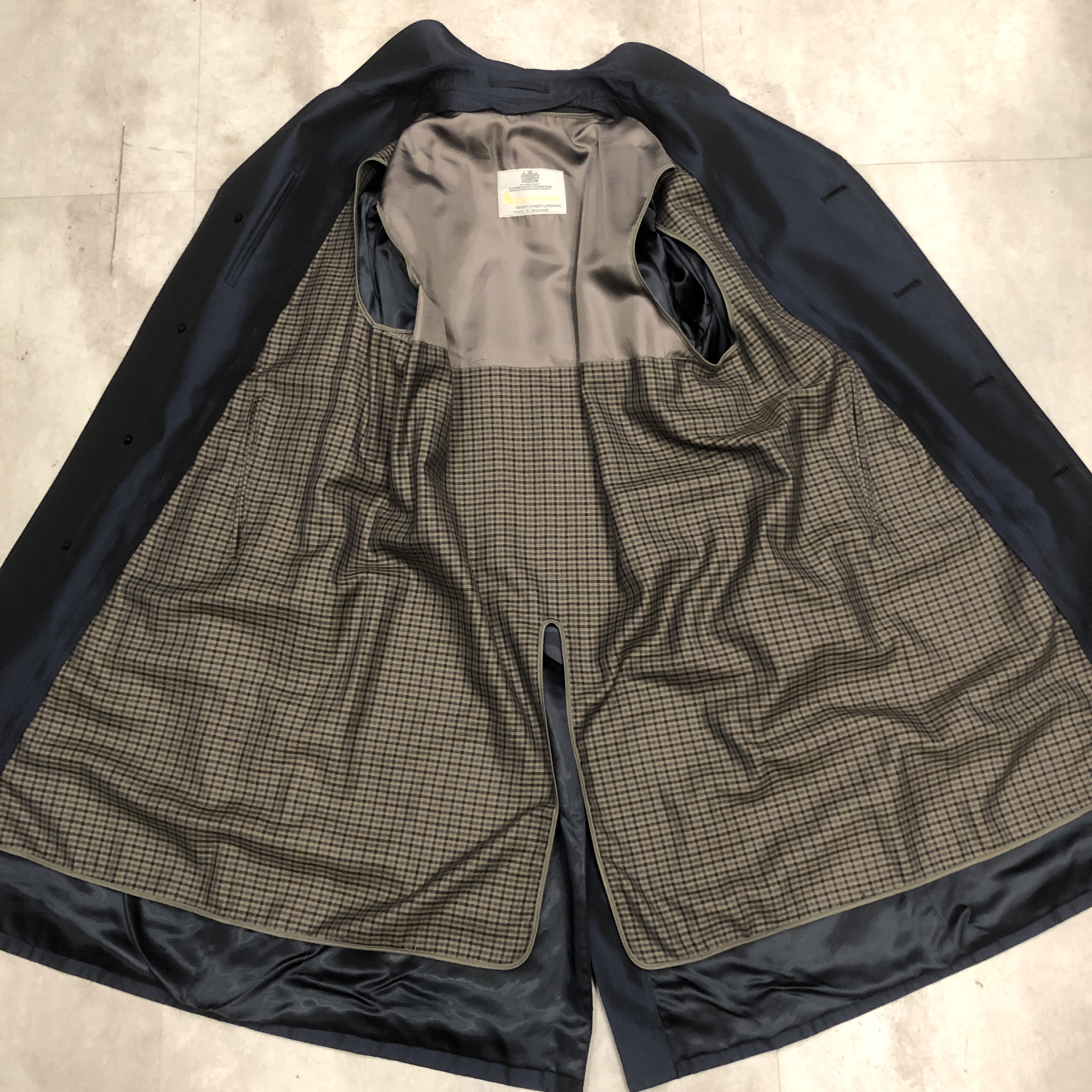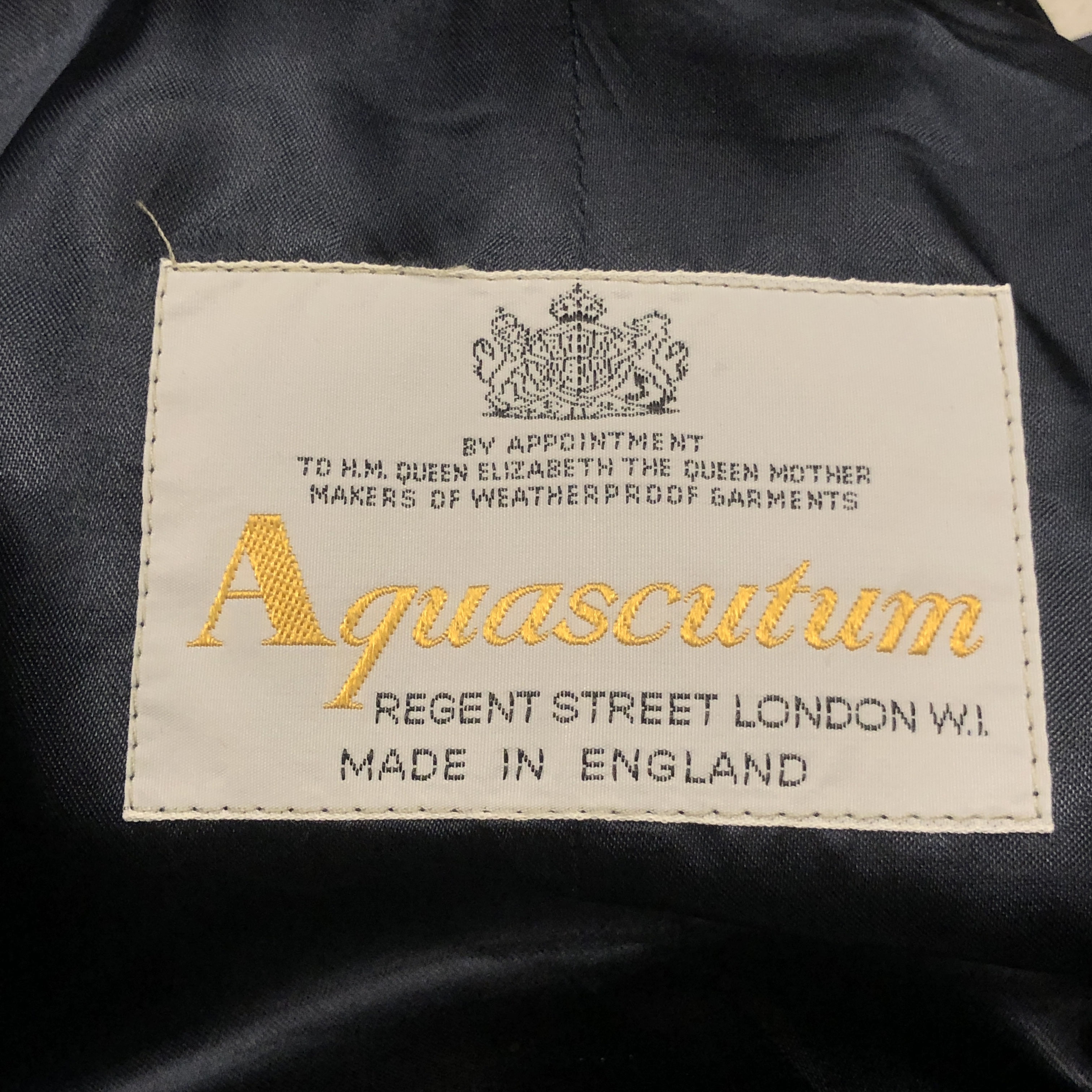 英国製ならではの端正な仕立てと、時代を超えて愛されるベーシックなバルマカーンシルエット。Aquascutumを象徴する“クラブチェック”のイメージとはまた異なる、シンプルでありながらも贅沢な存在感。タグには「Aqua 5」加工の記載があり、撥水性・防汚性を兼ね備えた実用面も見逃せません。