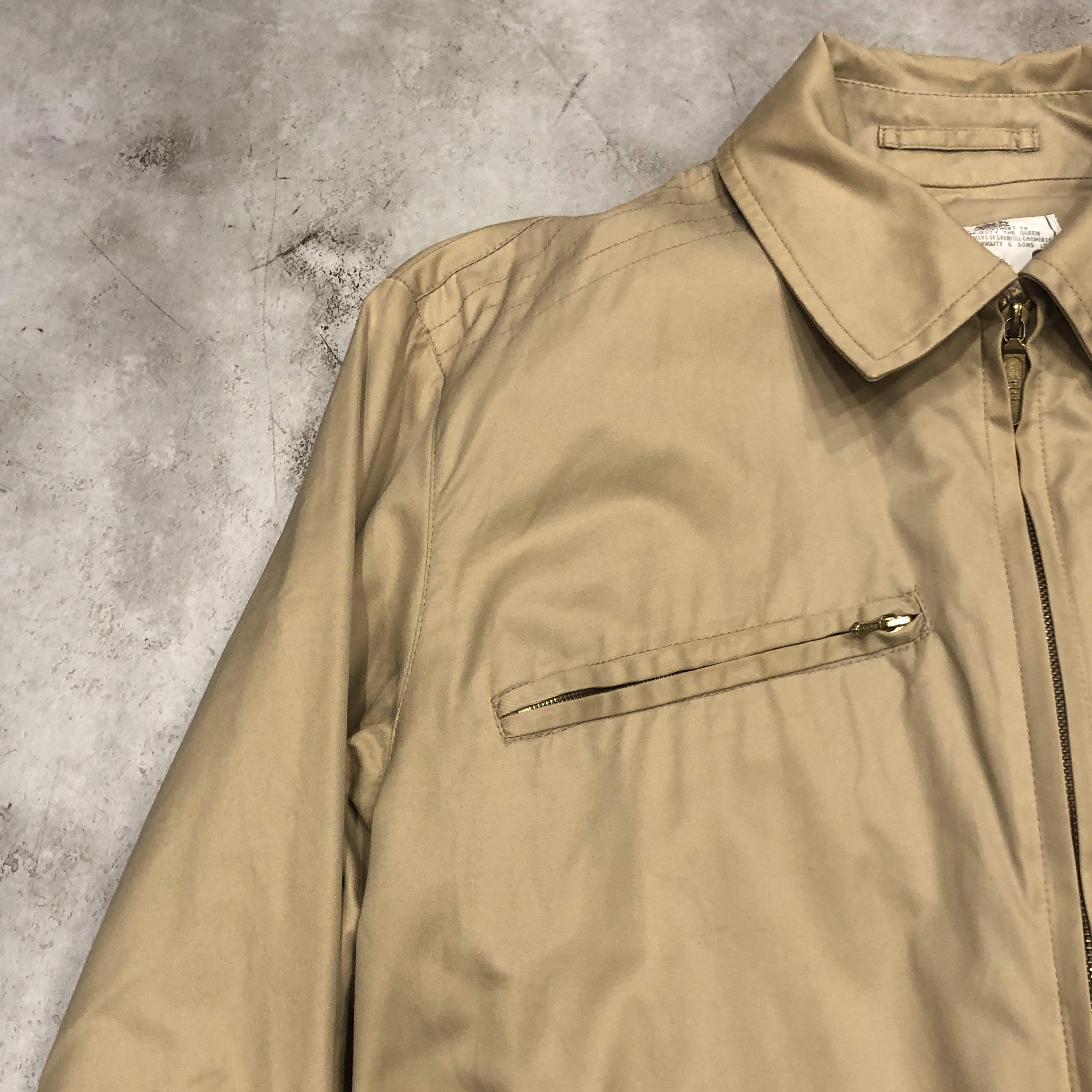 - グレンフェルクロス特有のハリと鈍い光沢がたまりません。英国製の中でも、こちらは H. HERZFELD(NYの高級メンズショップ)別注タグ が付く、ちょっと特別な一本。王室御用達タグ“BY APPOINTMENT TO HER MAJESTY THE QUEEN”入りというのも嬉しいポイントです。