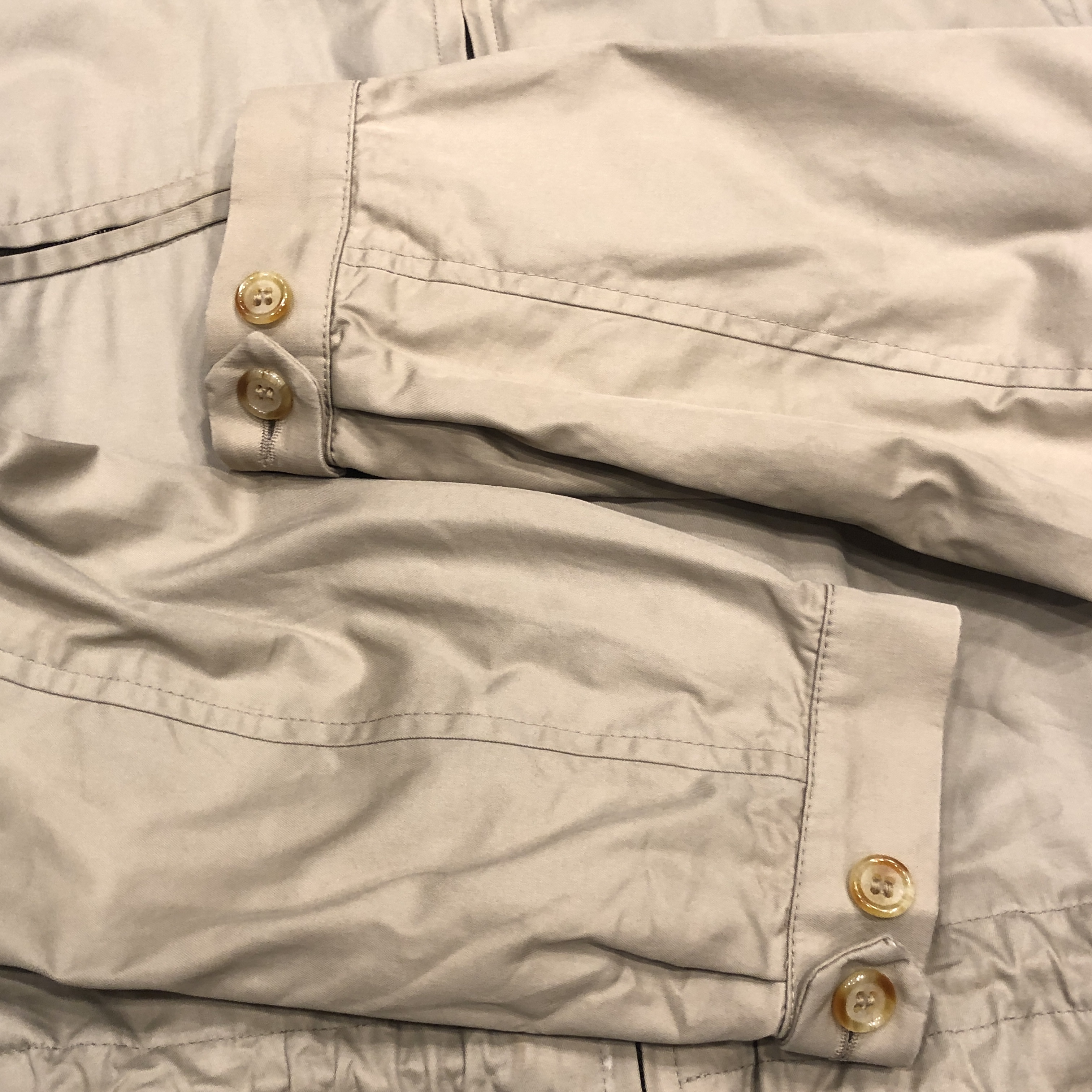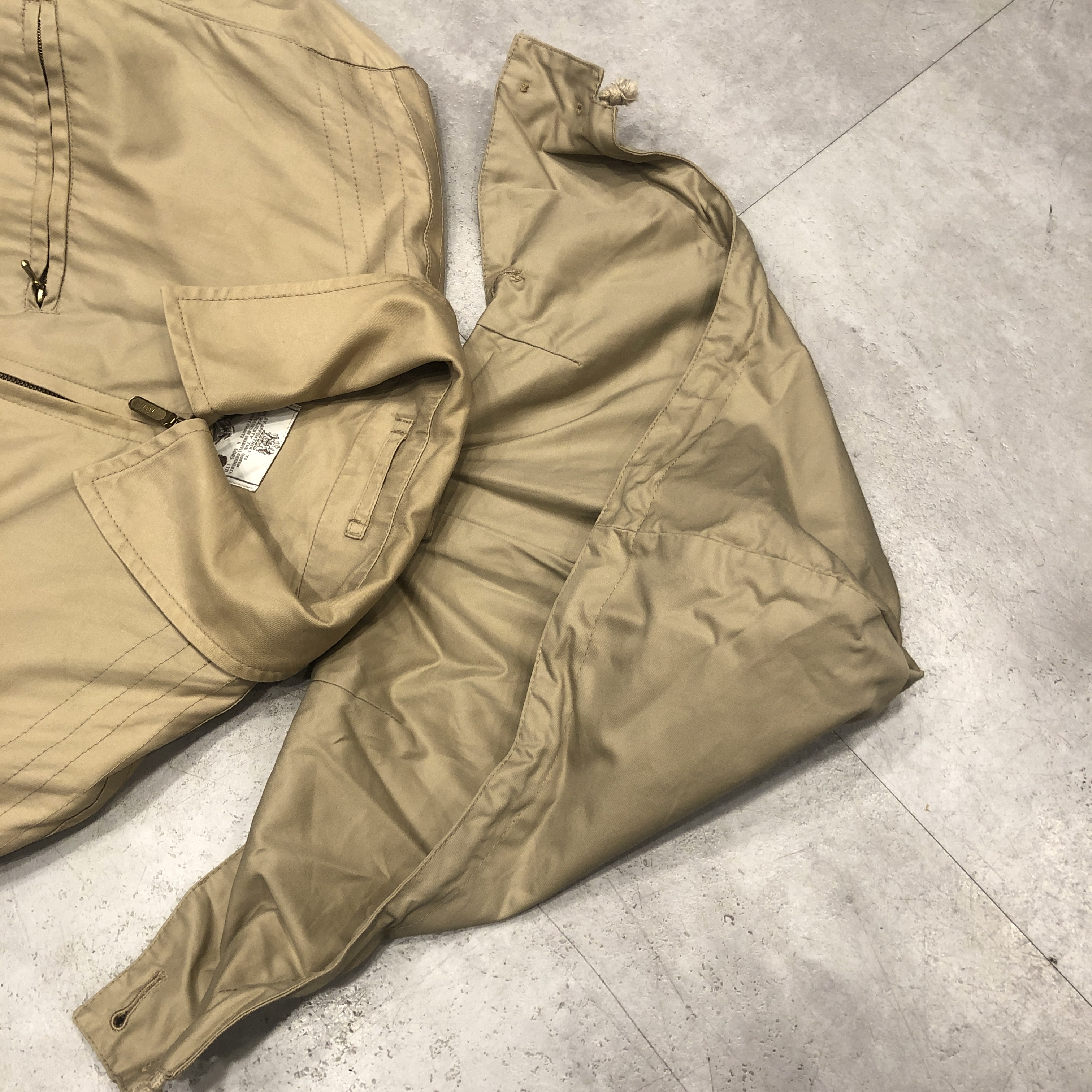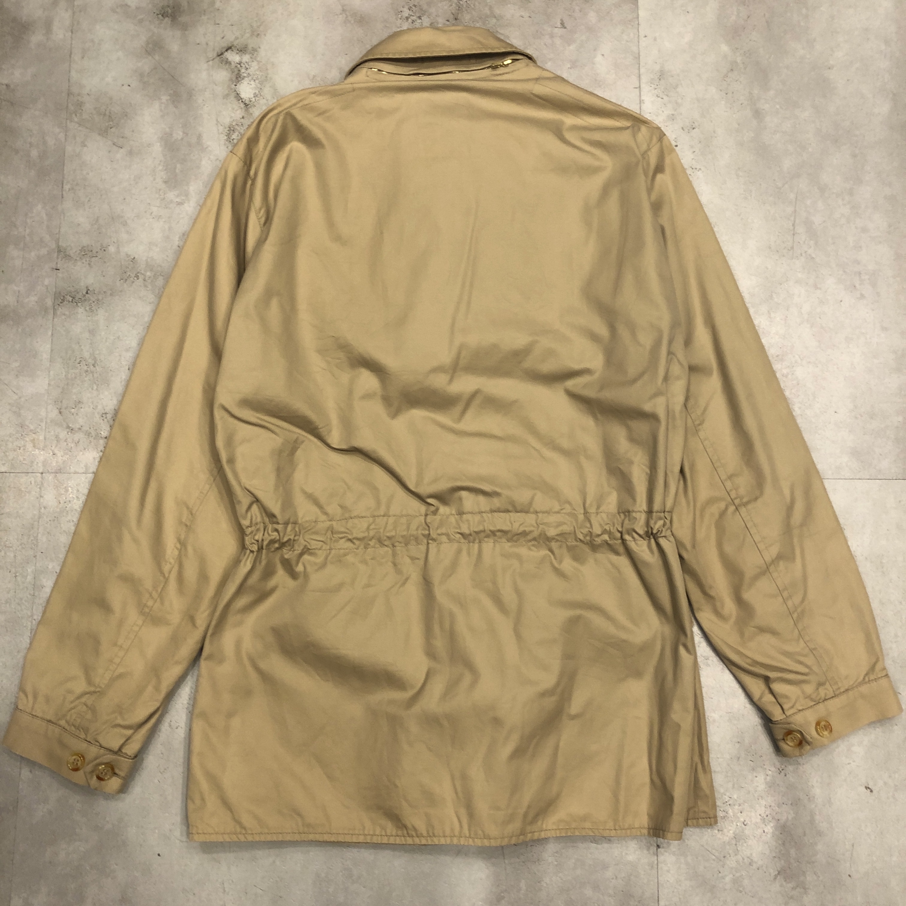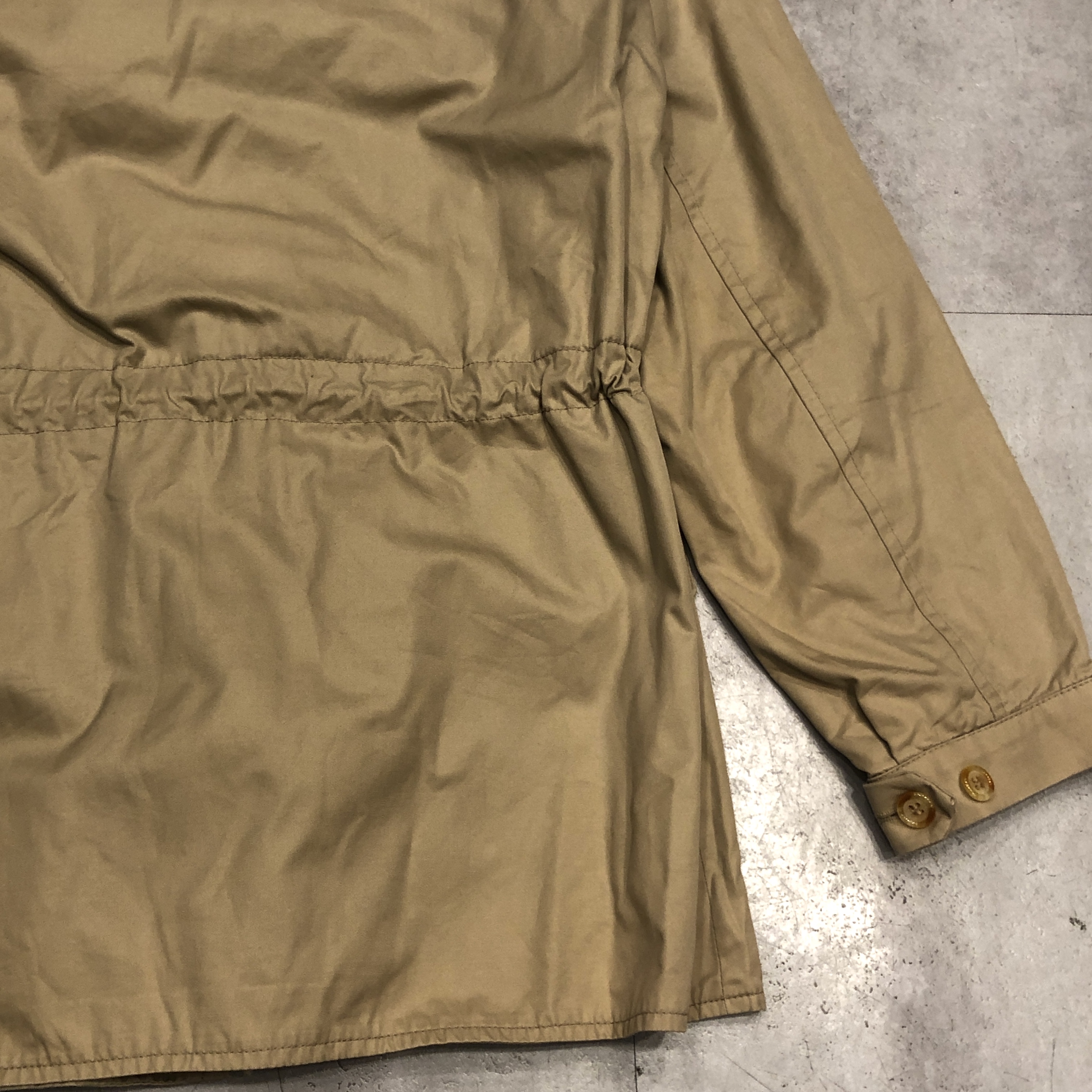 ディテールはまさにフィールドジャケットの王道。胸の斜めジップポケット、ウエストのドローコード、ゆったりとした袖付けなど、実用一辺倒の構造ながら、どこか上品にまとまってしまうのがグレンフェルの名品たる所以。