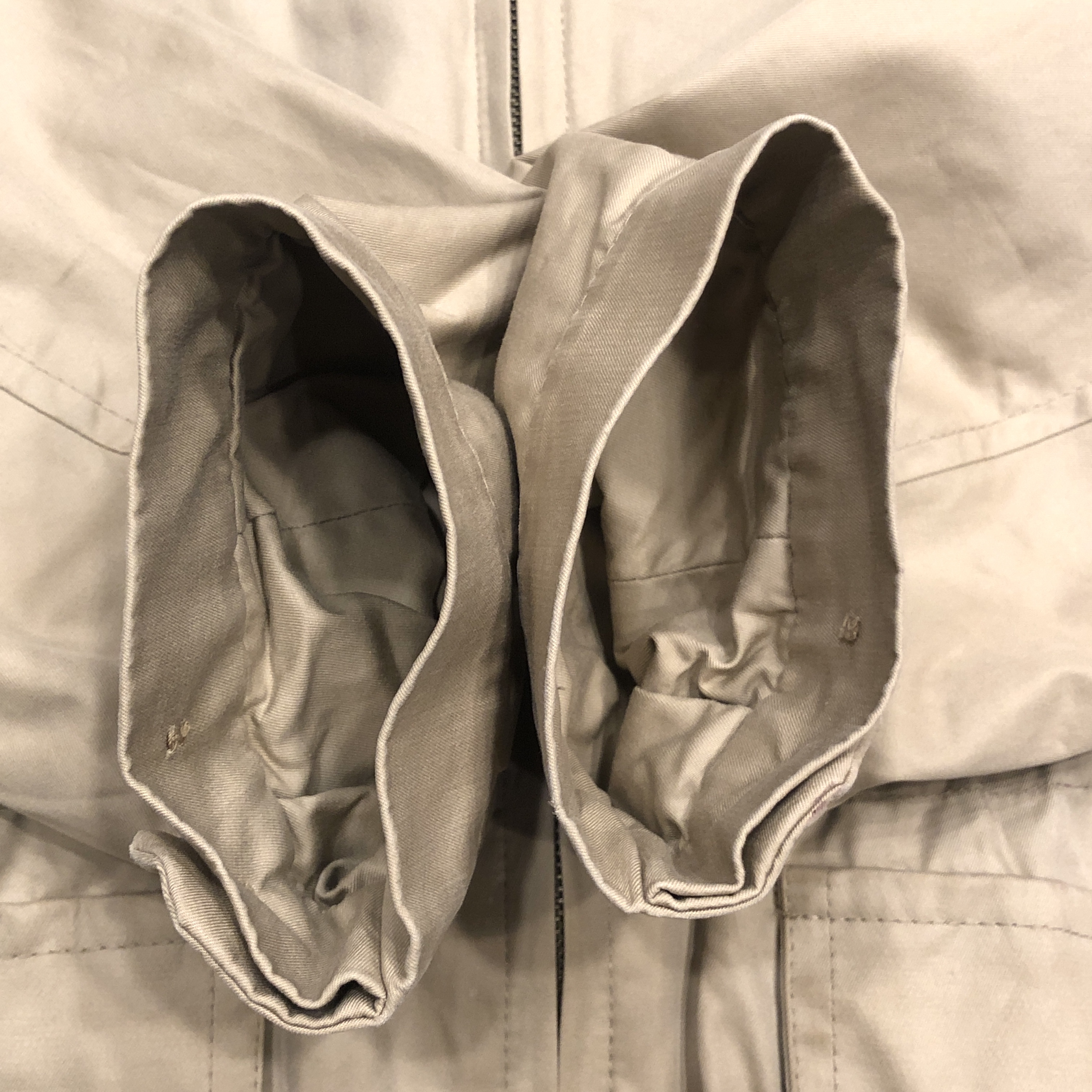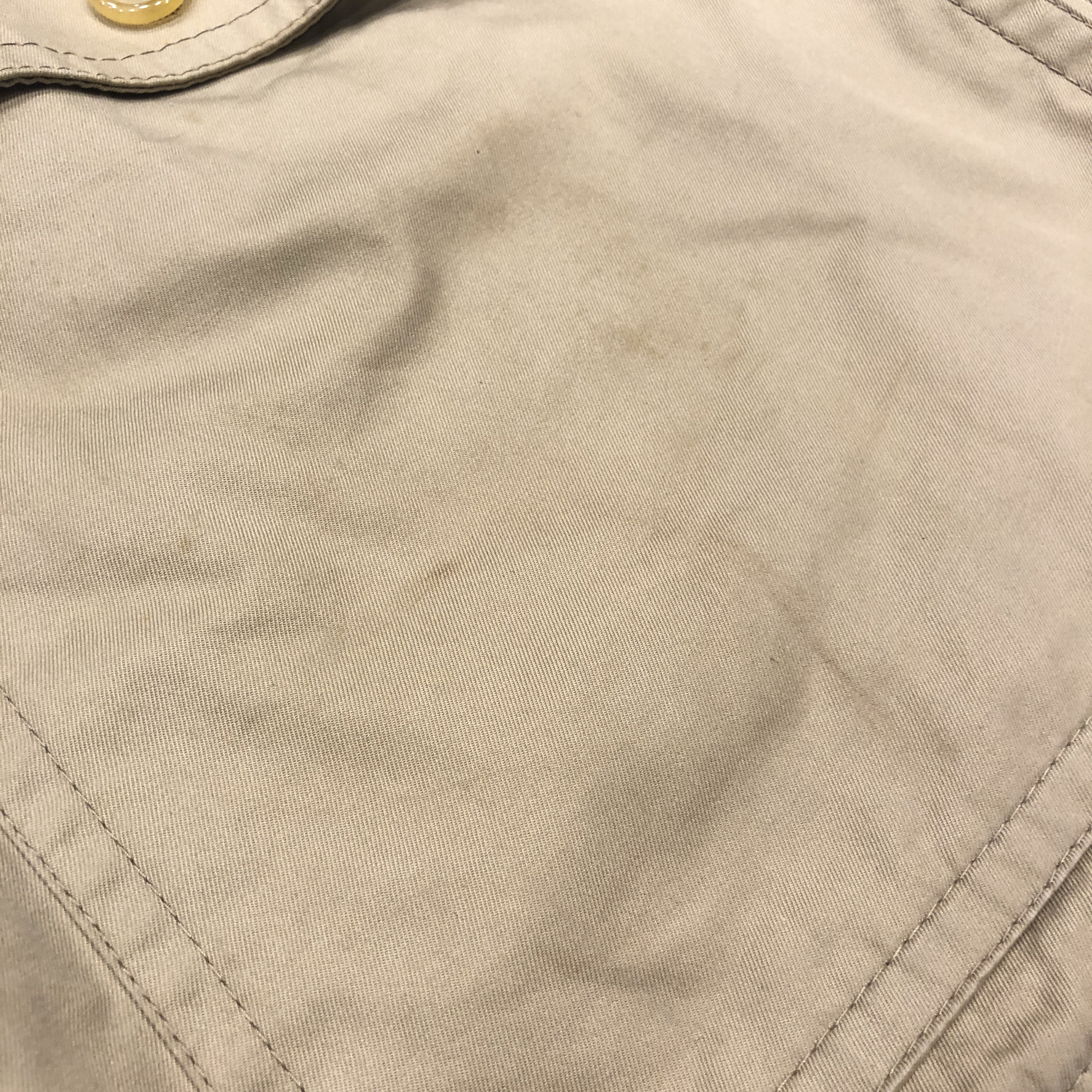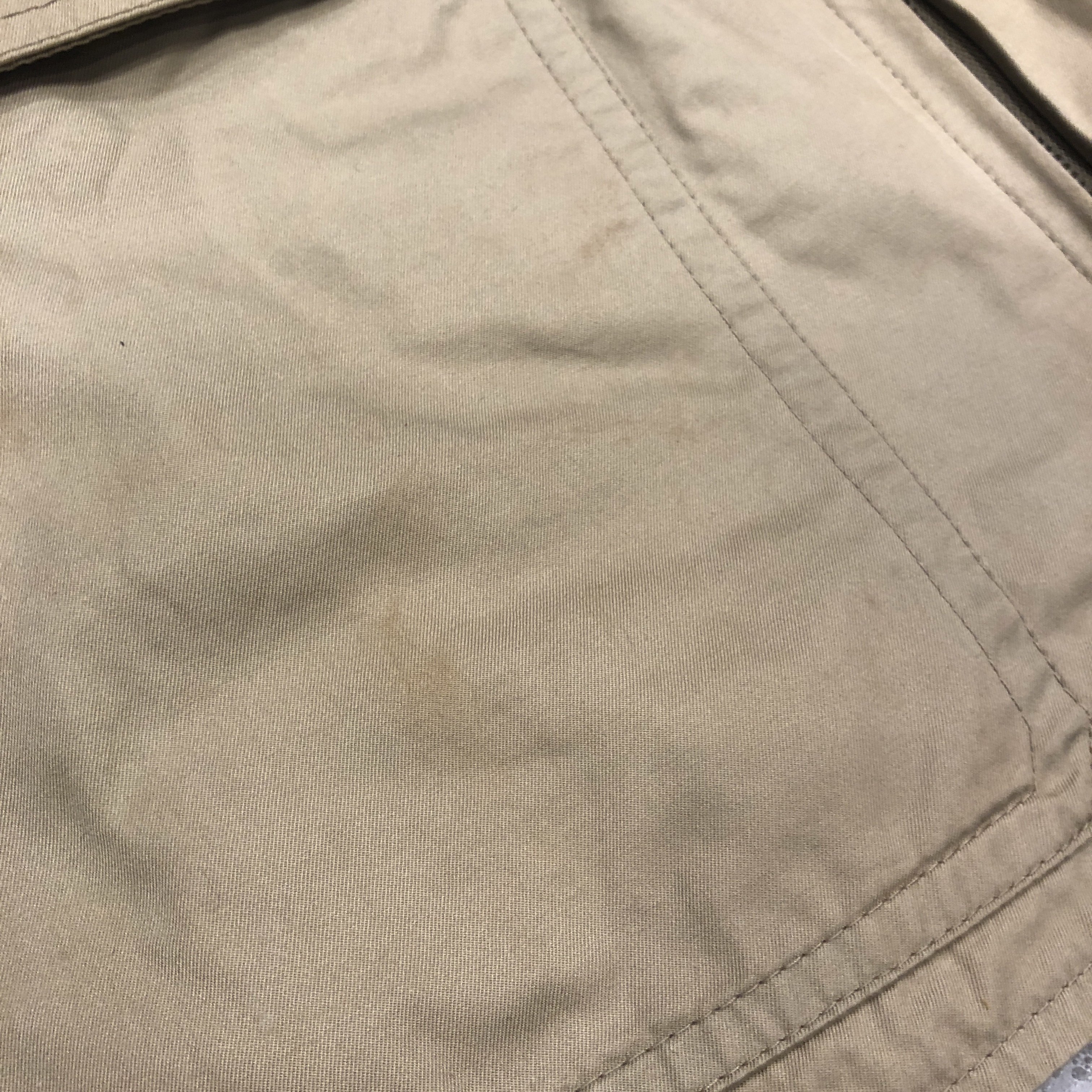 - 多少の着用感、腹部、両ポケットにそれぞれ画像の様な汚れがございますが、その他目立つような傷や汚れは見受けられません。古着慣れされている方でしたら問題なくお使いいただける範囲です。