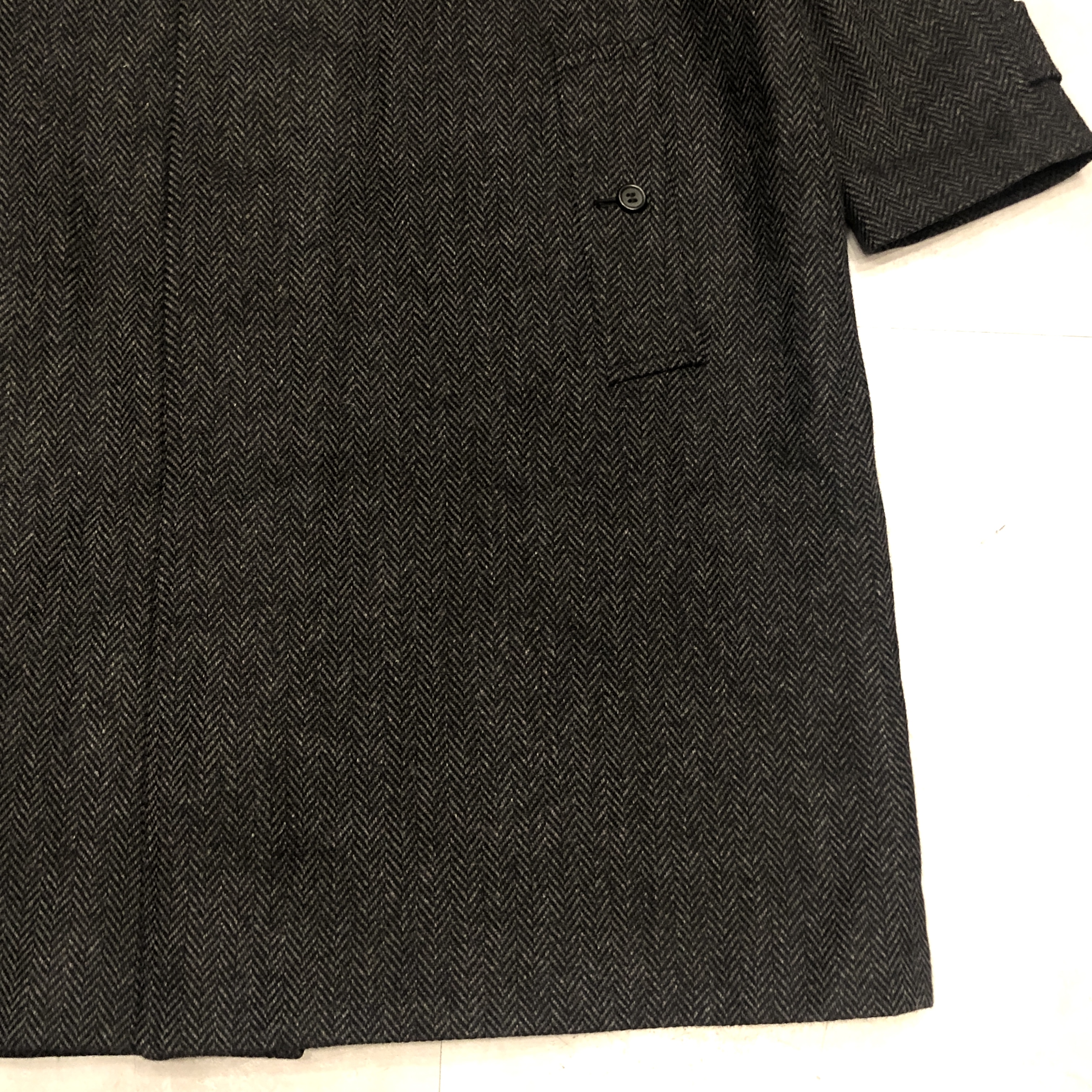 素材は重厚なウール100%のヘリンボーンツイード。鈍く光を抑えたチャコールトーンに、微細な杉綾が浮かび上がるその風合いは、まるで霧の立ち込めるロンドンの朝を思わせます。裏地はレーヨン100%。滑らかで、腕通しも申し分なし。袖を通した瞬間から、英国クラシックの世界観へと引き込まれます。