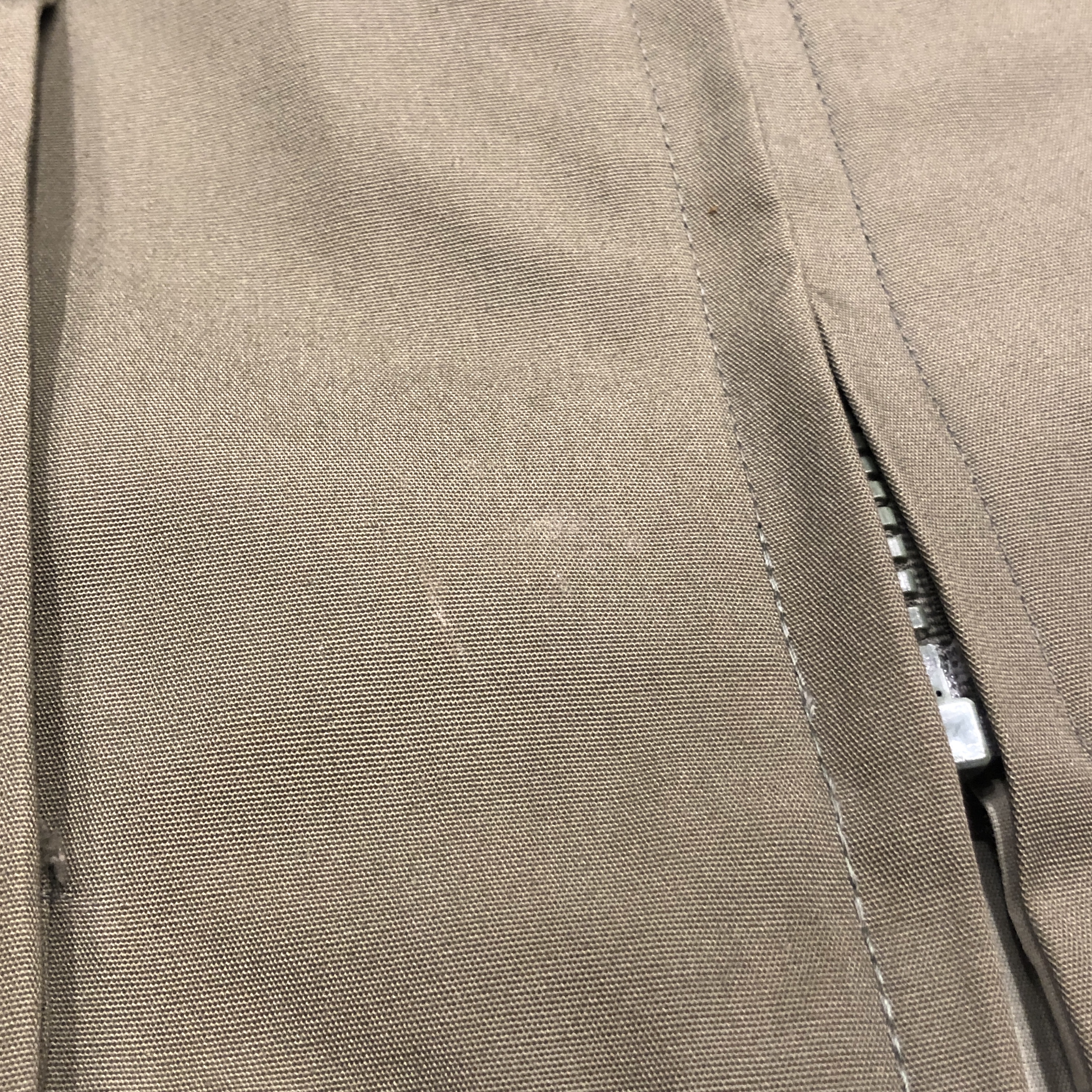年代相当の着用感、前面中央の裾付近と左腰部分に画像のような汚れがそれぞれございます。