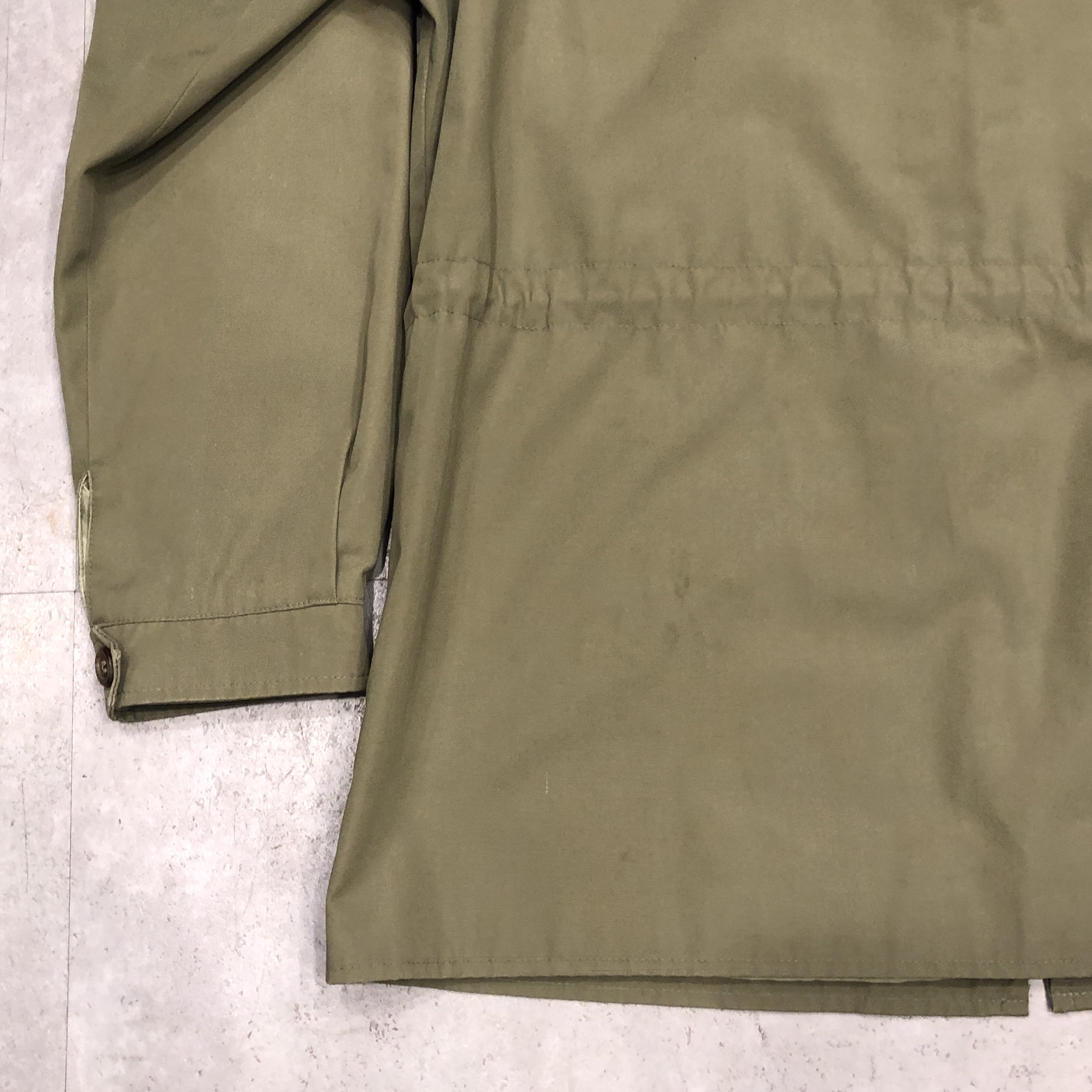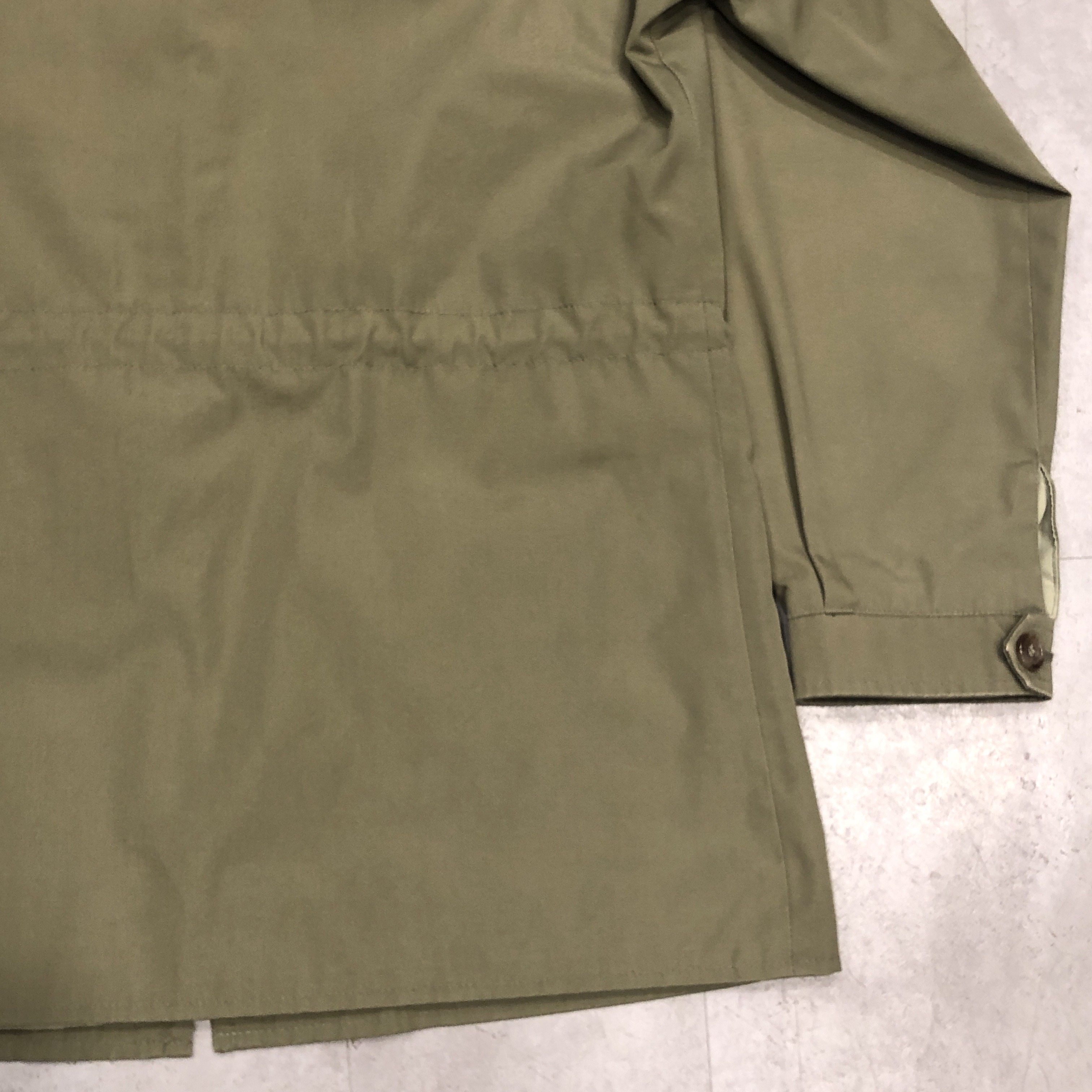 素材にポリ/コットンを用いることで、従来の厚手ギャバジンやコットン100%のフィールドジャケットと比べ、軽さと動きやすさが増しています。そのため、都会での使用や初秋等の季節の変わり目には特に適した一着と言えるでしょう。ウエストにはドローコードによる絞り仕様があり、リラックスしながらもメリハリを持たせた着こなしが可能です。
