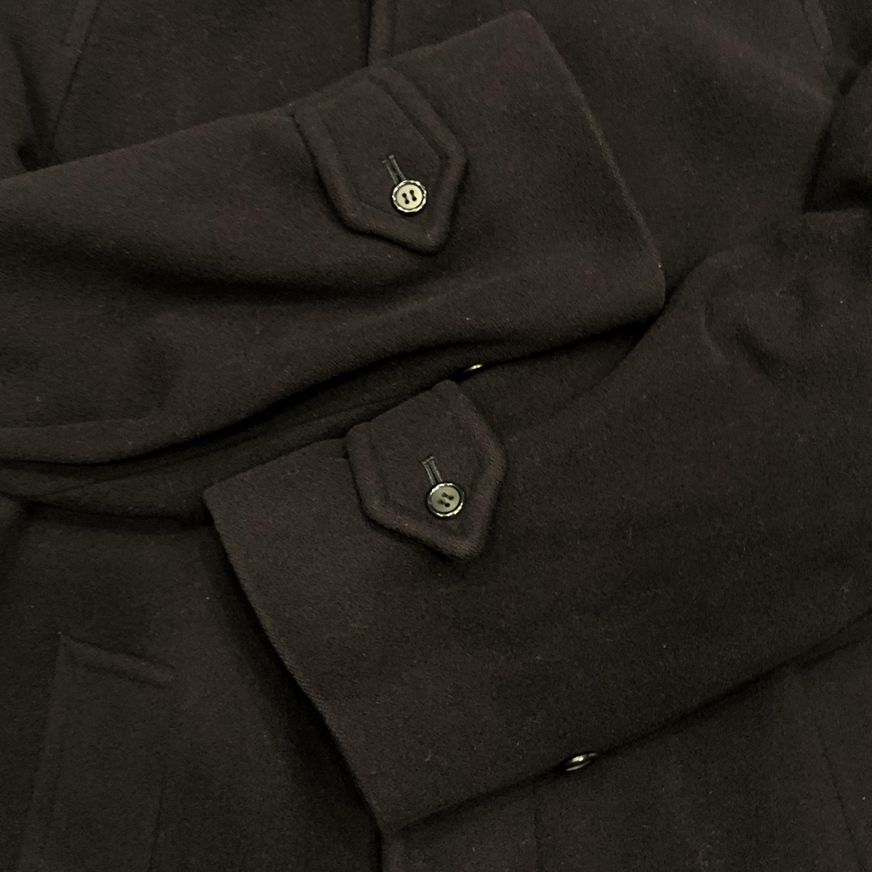 バルマカーンコート特有の比翼仕立てが、重厚な生地感の中に凛とした静けさをもたらします。