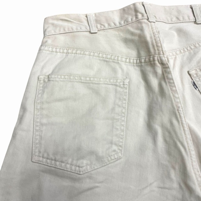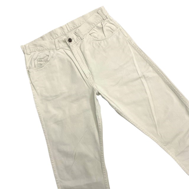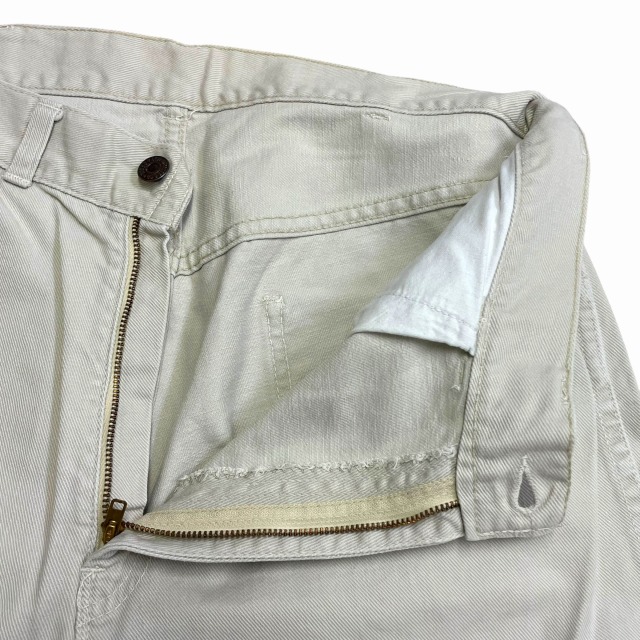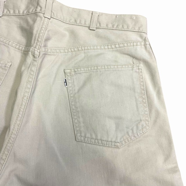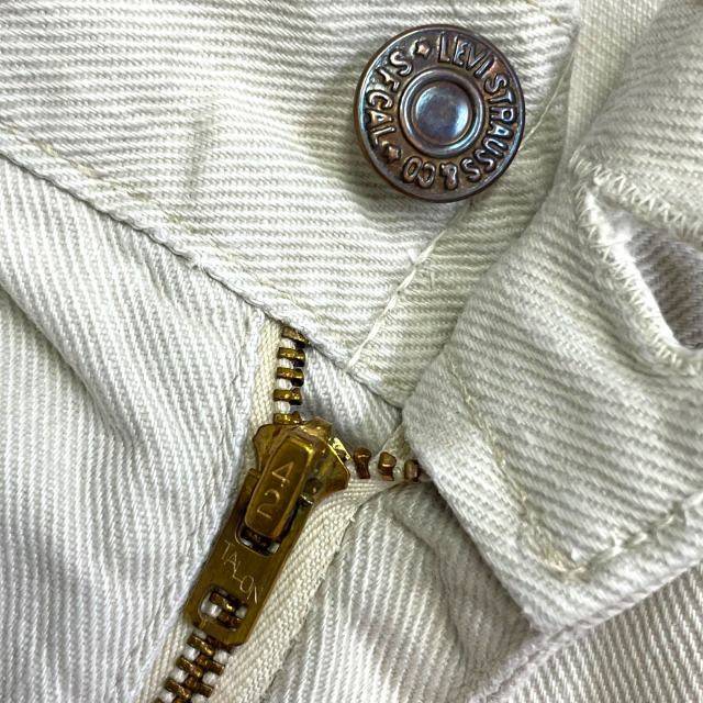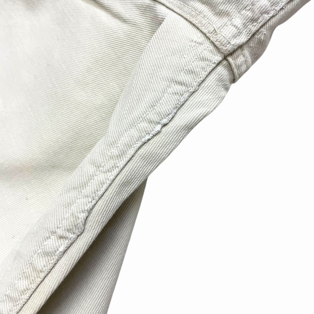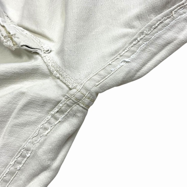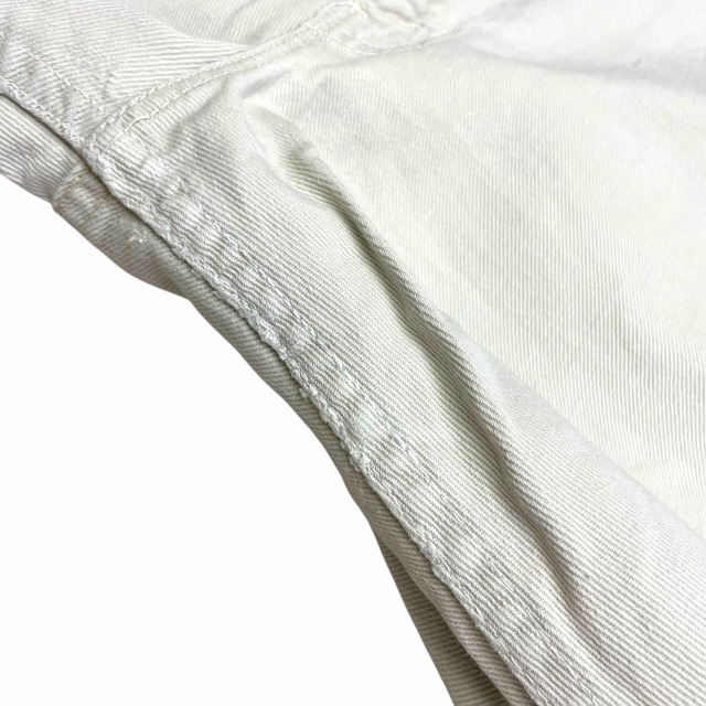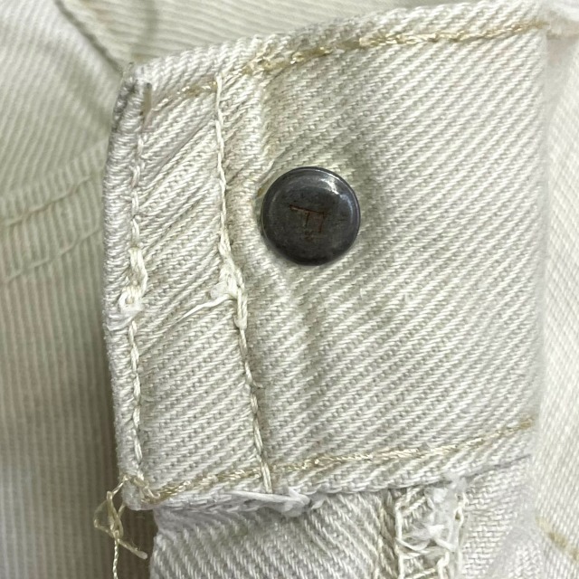 - 画像のように、股にリステッチがあり、左ヒップポケットにステッチ抜けがございます。